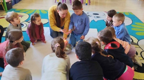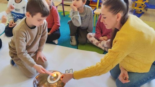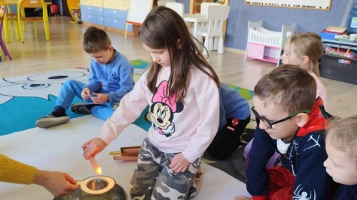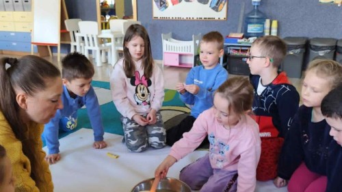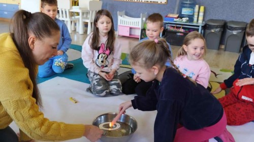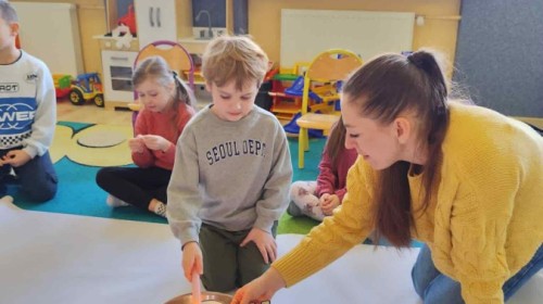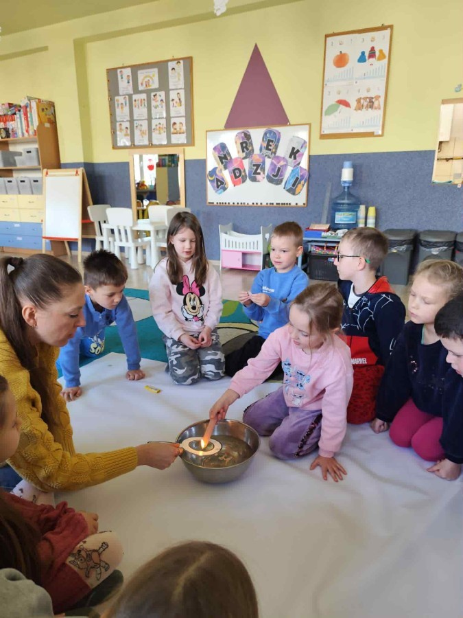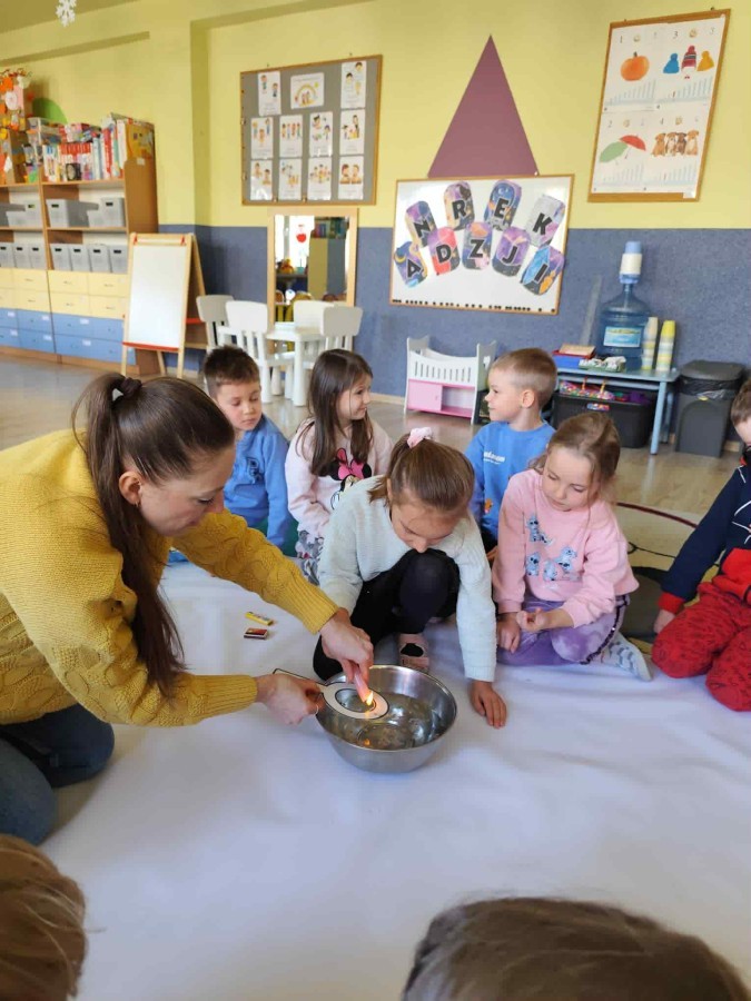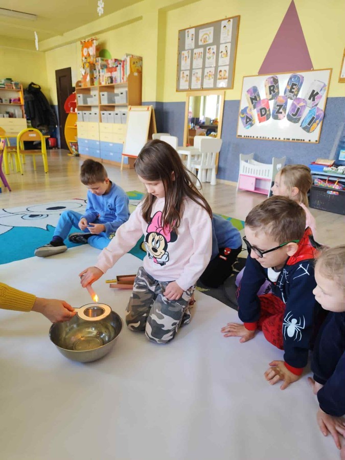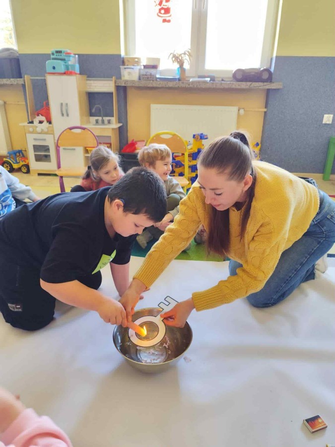 Ten wyjątkowy czas, wypełniony przepowiedniami dotyczącymi przyszłości, pozwala zanurzyć się w niezwykłej atmosferze czarów i tajemnicy, dlatego też grupa Zerówki dała pochłonąć się w tajemnicach przyszłości - wykonaliśmy magiczne eliksiry, wróżyliśmy z wosku, sprawdzaliśmy co kryje się w szklanej kuli oraz zwieńczyliśmy ten wyjątkowy dzień tańcami :)