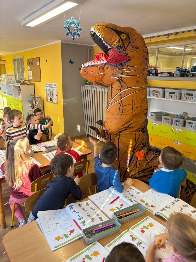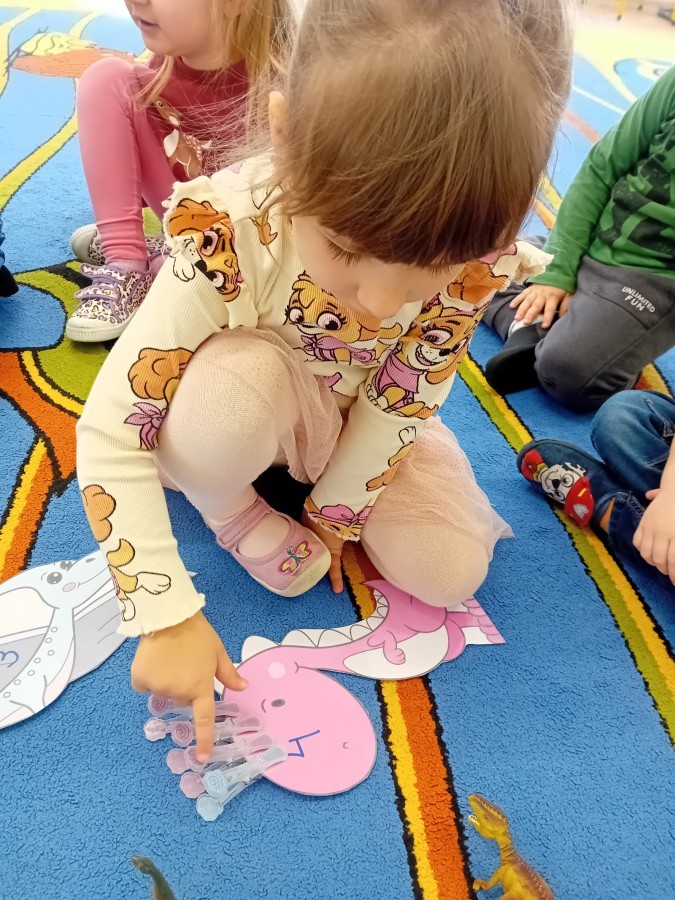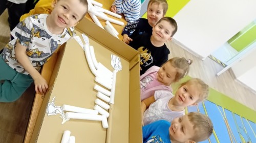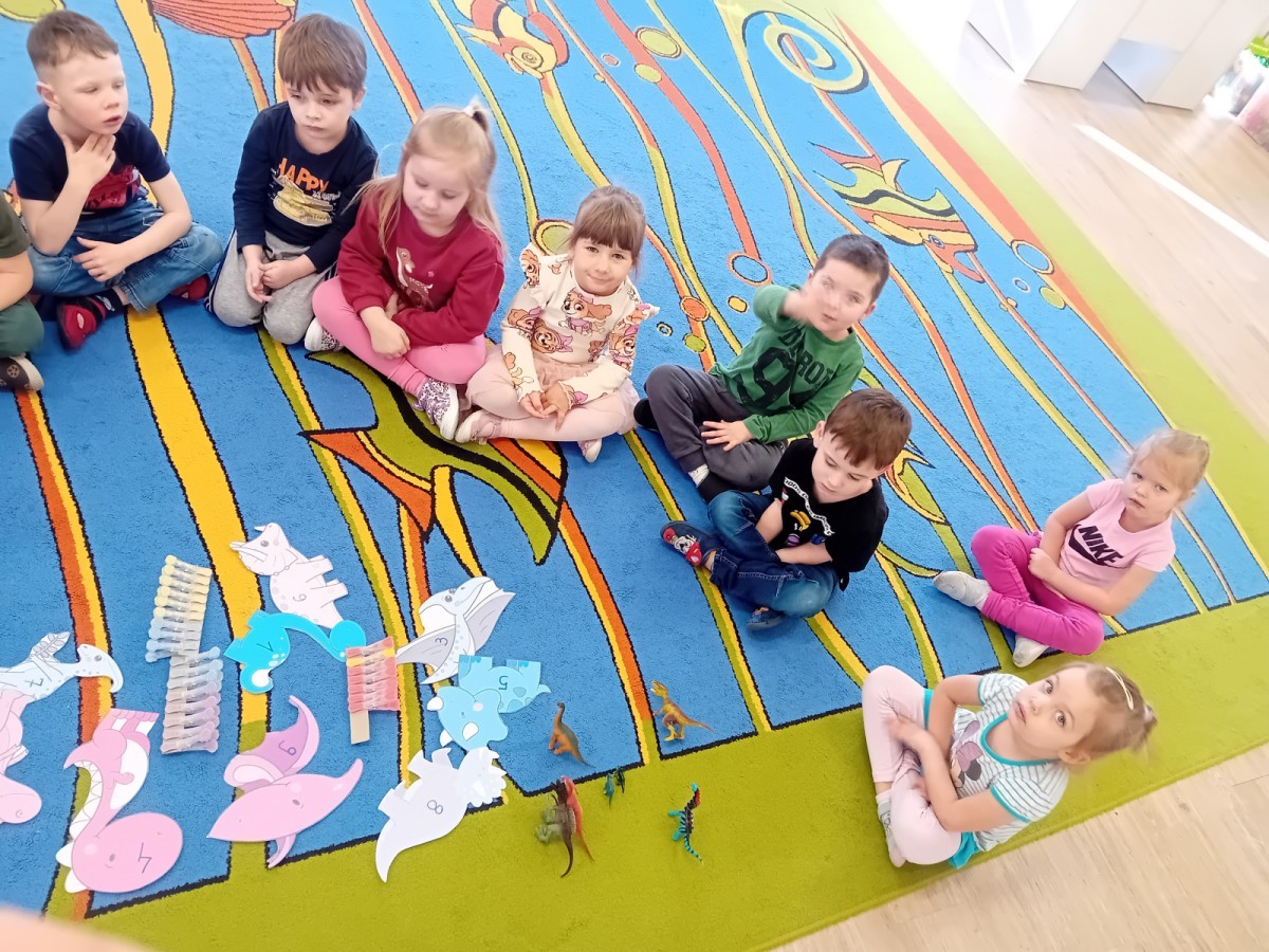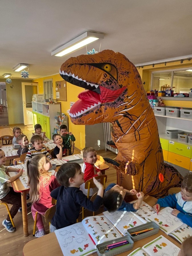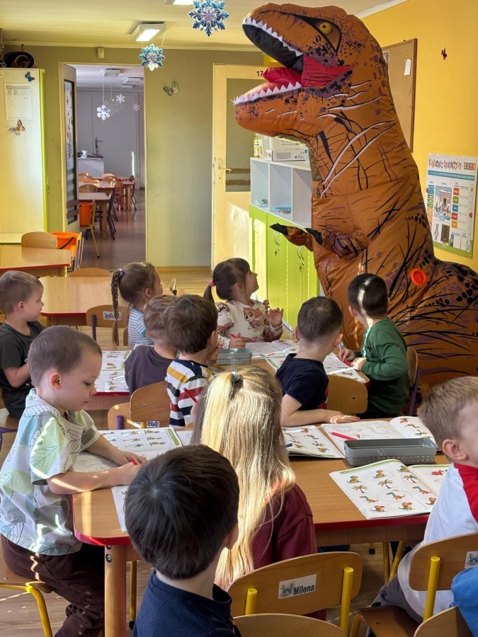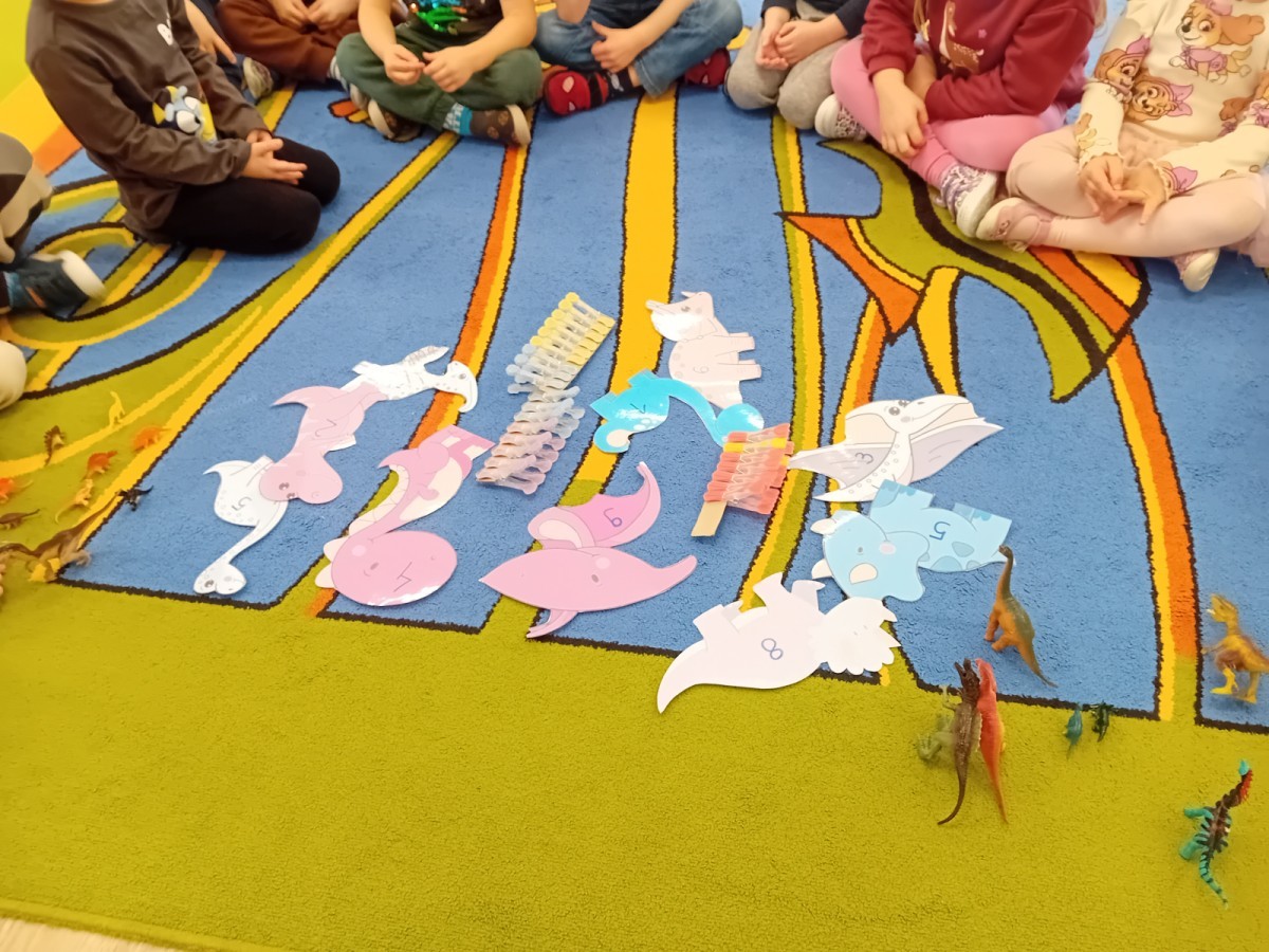 Zakończyliśmy naszą niesamowitą przygodę w świecie prehistorycznych olbrzymów. To był tydzień pełen wrażeń, ale ostatnie dni dostarczyły nam wyjątkowo dużo emocji! Nie zabrakło matematycznych zabaw Przedszkolaki dzielnie przeliczały dinozaury, a za pomocą kolorowych klamerek przypisywały odpowiednie wartości do ich sylwet, ćwicząc przy tym sprawność rączek. W piątek poczuliśmy się jak prawdziwi paleontolodzy. Wspólnymi siłami stworzyliśmy imponujący szkielet dinozaura, przy którego tworzeniu było pełno radości i uśmiechu!