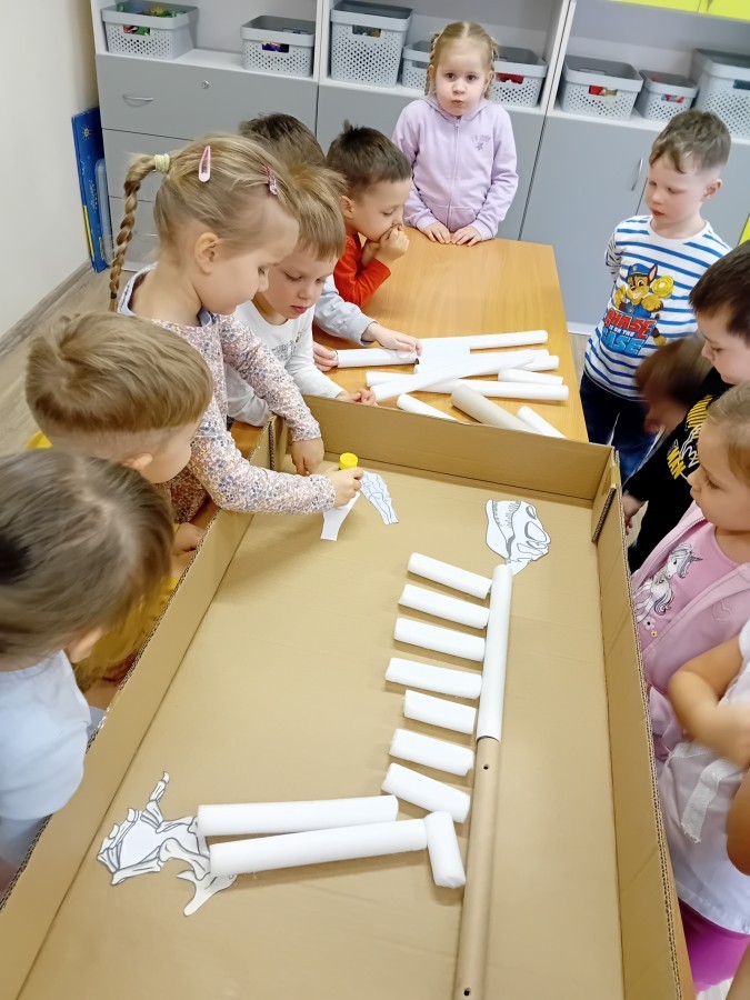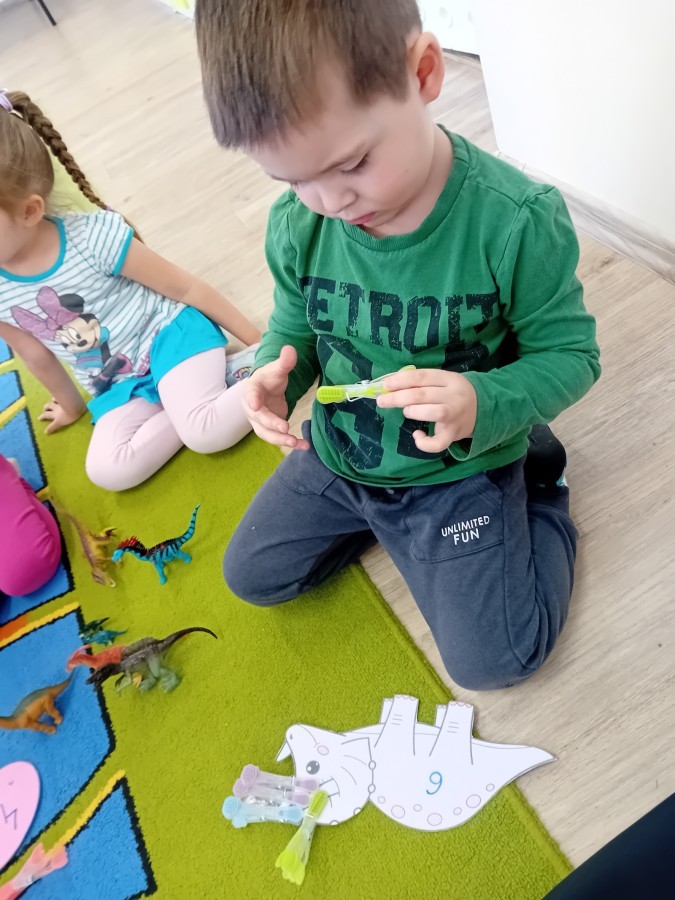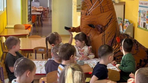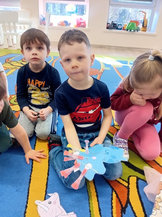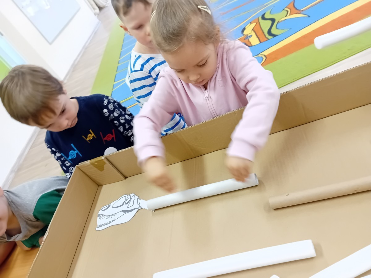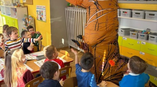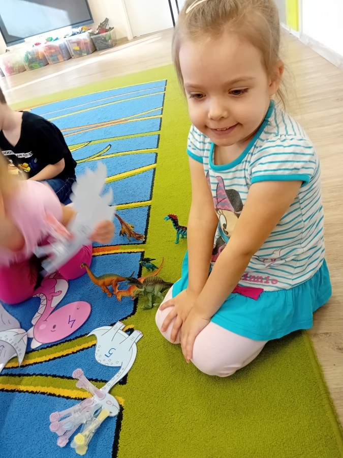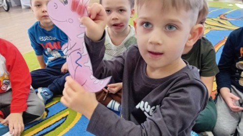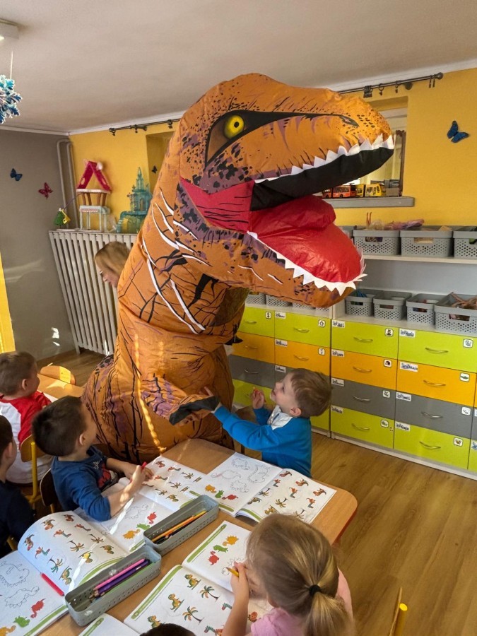 Zakończyliśmy naszą niesamowitą przygodę w świecie prehistorycznych olbrzymów. To był tydzień pełen wrażeń, ale ostatnie dni dostarczyły nam wyjątkowo dużo emocji! Nie zabrakło matematycznych zabaw Przedszkolaki dzielnie przeliczały dinozaury, a za pomocą kolorowych klamerek przypisywały odpowiednie wartości do ich sylwet, ćwicząc przy tym sprawność rączek. W piątek poczuliśmy się jak prawdziwi paleontolodzy. Wspólnymi siłami stworzyliśmy imponujący szkielet dinozaura, przy którego tworzeniu było pełno radości i uśmiechu!