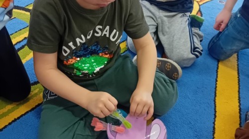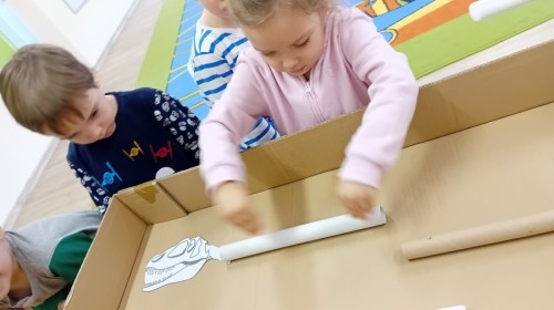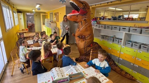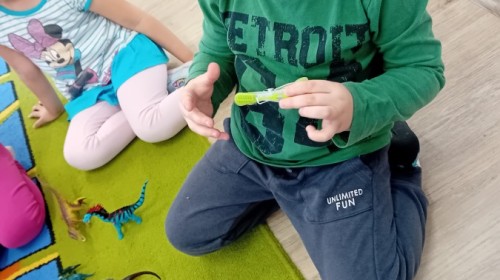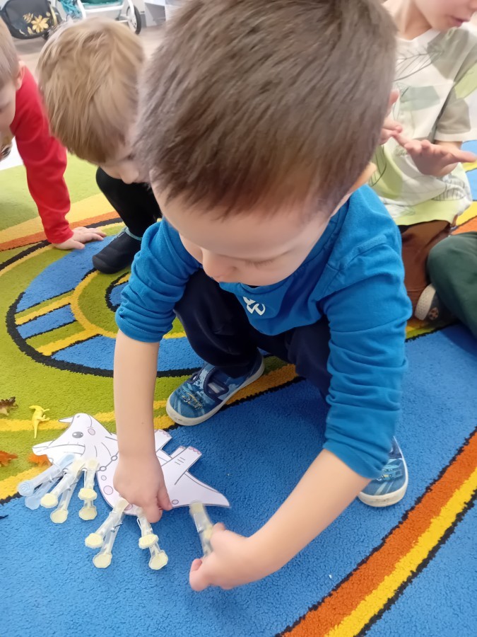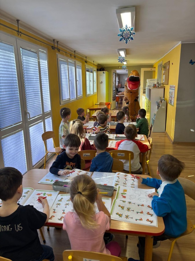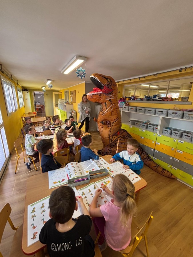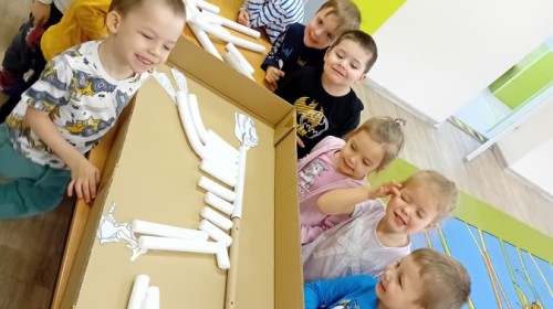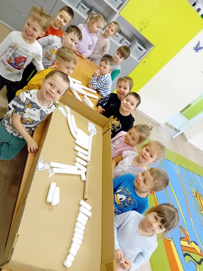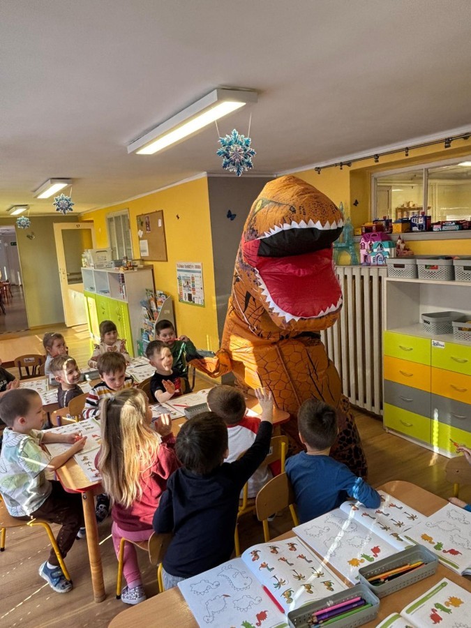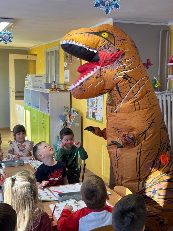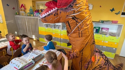 Zakończyliśmy naszą niesamowitą przygodę w świecie prehistorycznych olbrzymów. To był tydzień pełen wrażeń, ale ostatnie dni dostarczyły nam wyjątkowo dużo emocji! Nie zabrakło matematycznych zabaw Przedszkolaki dzielnie przeliczały dinozaury, a za pomocą kolorowych klamerek przypisywały odpowiednie wartości do ich sylwet, ćwicząc przy tym sprawność rączek. W piątek poczuliśmy się jak prawdziwi paleontolodzy. Wspólnymi siłami stworzyliśmy imponujący szkielet dinozaura, przy którego tworzeniu było pełno radości i uśmiechu!