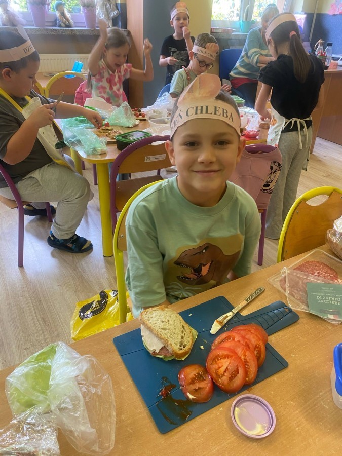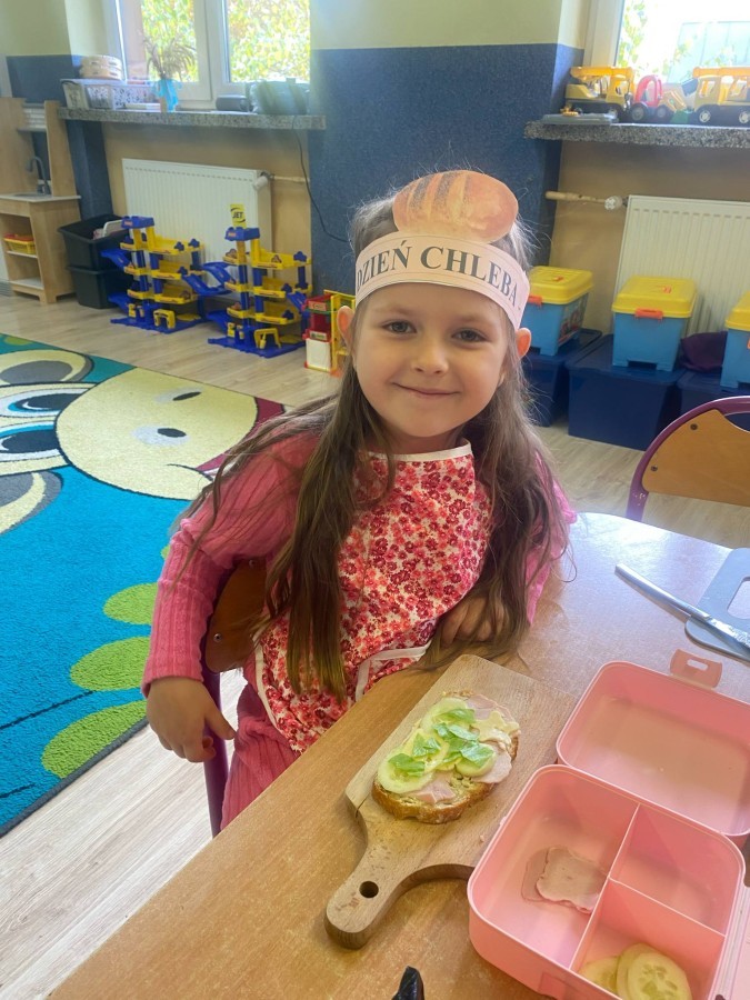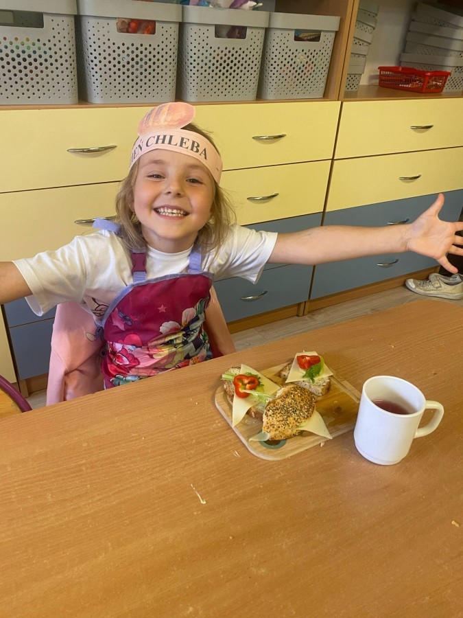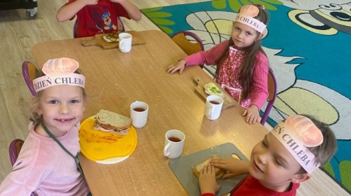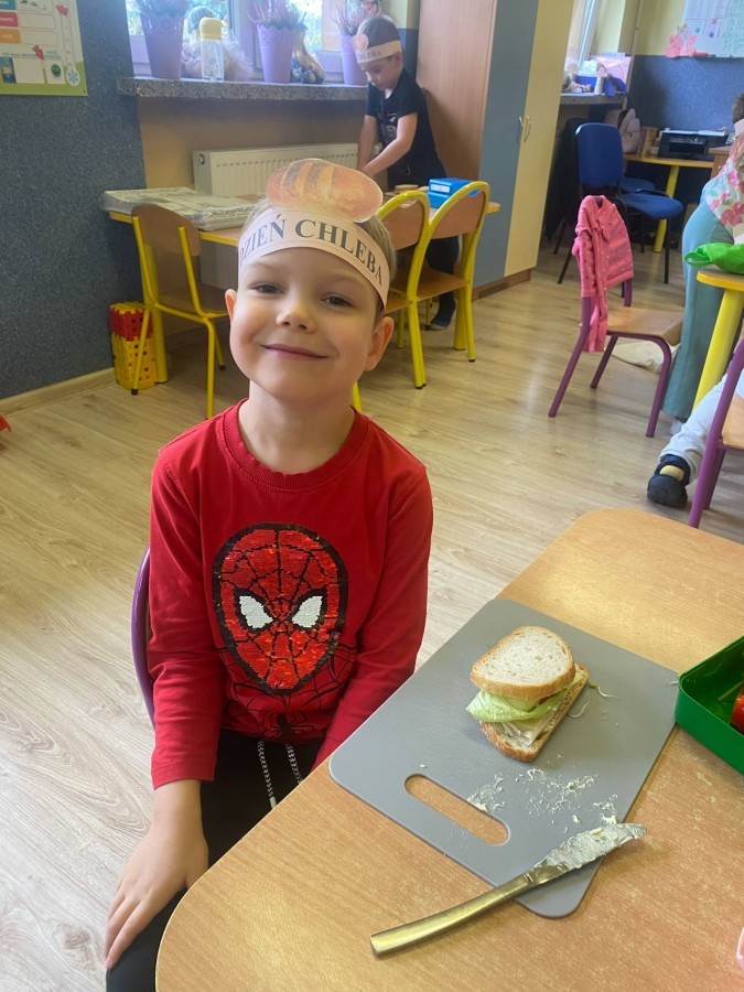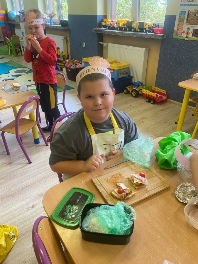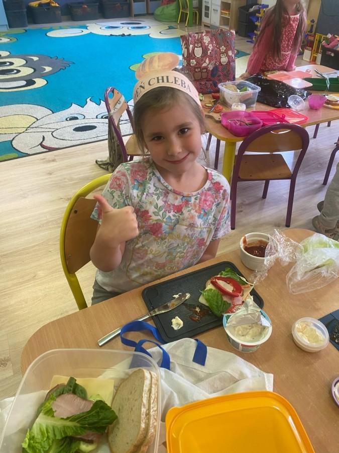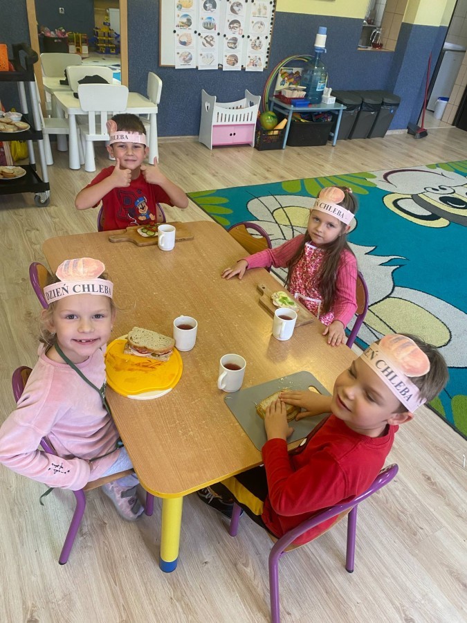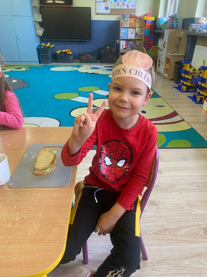 16 października przedszkolaki obchodziły Światowy Dzień Chleba. Dzieci podczas zajęć dowiedziały się w jaki sposób powstaje chleb. Poznały etapy produkcji chleba oglądając film edukacyjny oraz uświadomiły sobie, że chleb jest wynikiem ciężkiej pracy wielu ludzi. Na koniec przedszkolaki własnoręcznie przygotowały kanapki z ulubionego chleba. Podczas zajęć powstała również praca plastyczna związana z tematyką dnia.