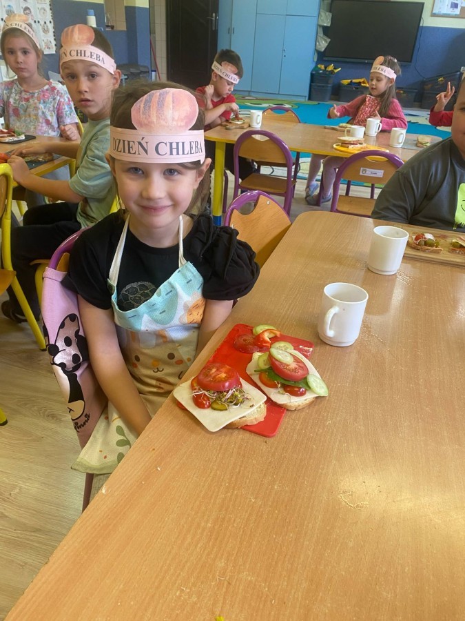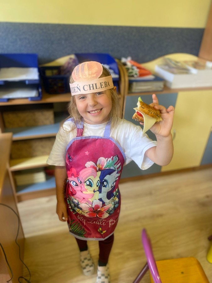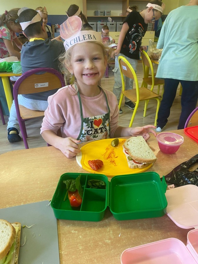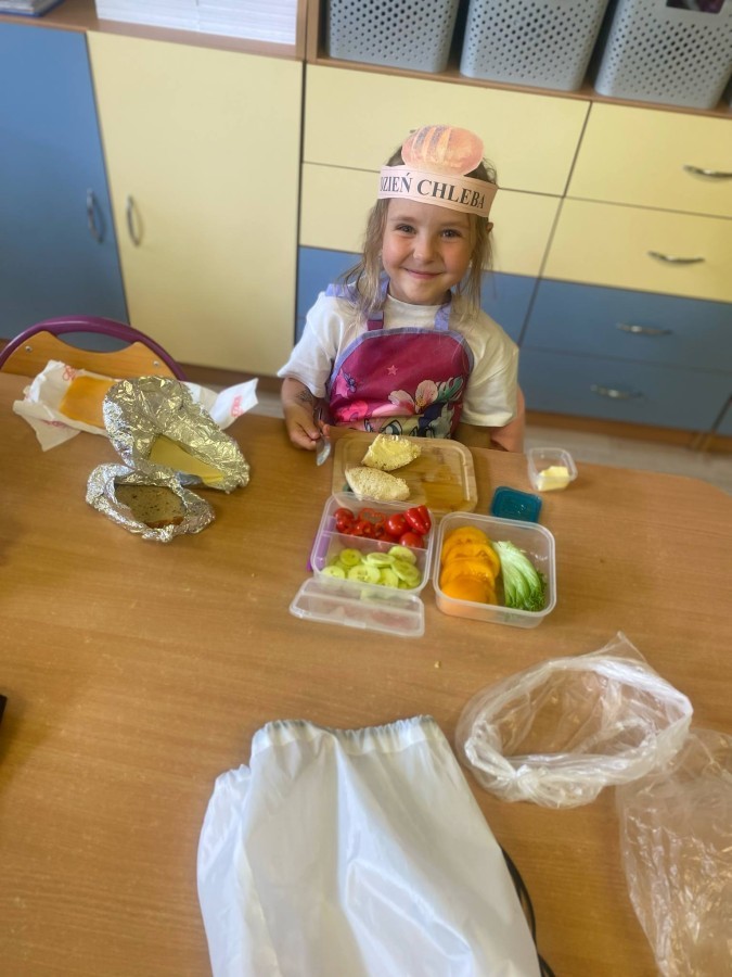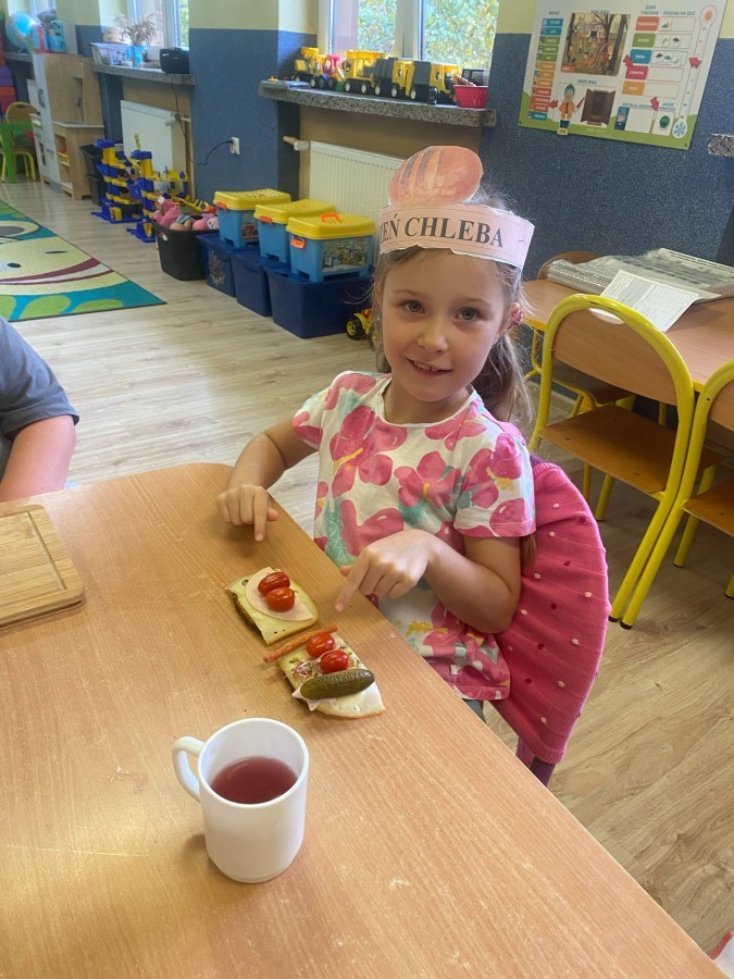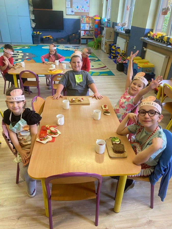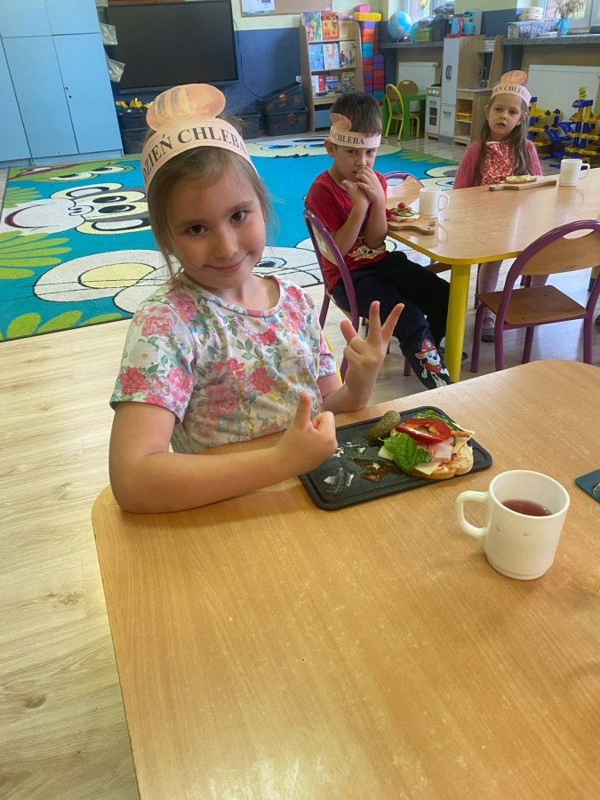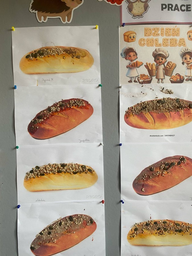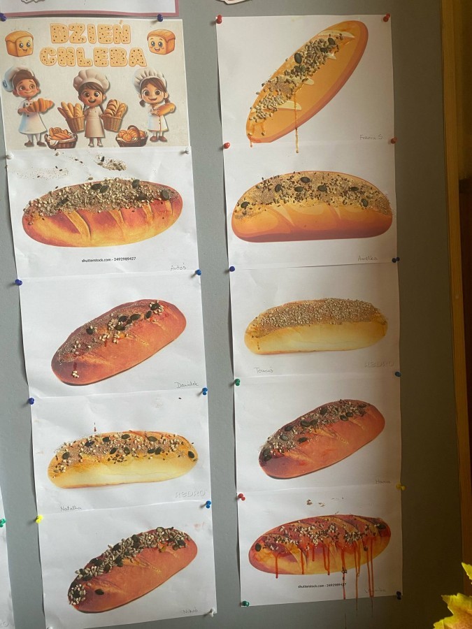 16 października przedszkolaki obchodziły Światowy Dzień Chleba. Dzieci podczas zajęć dowiedziały się w jaki sposób powstaje chleb. Poznały etapy produkcji chleba oglądając film edukacyjny oraz uświadomiły sobie, że chleb jest wynikiem ciężkiej pracy wielu ludzi. Na koniec przedszkolaki własnoręcznie przygotowały kanapki z ulubionego chleba. Podczas zajęć powstała również praca plastyczna związana z tematyką dnia.