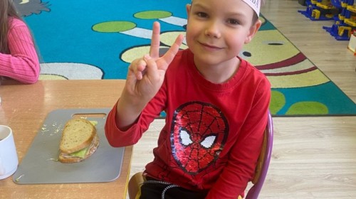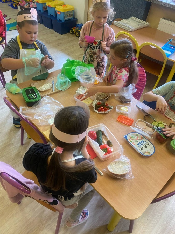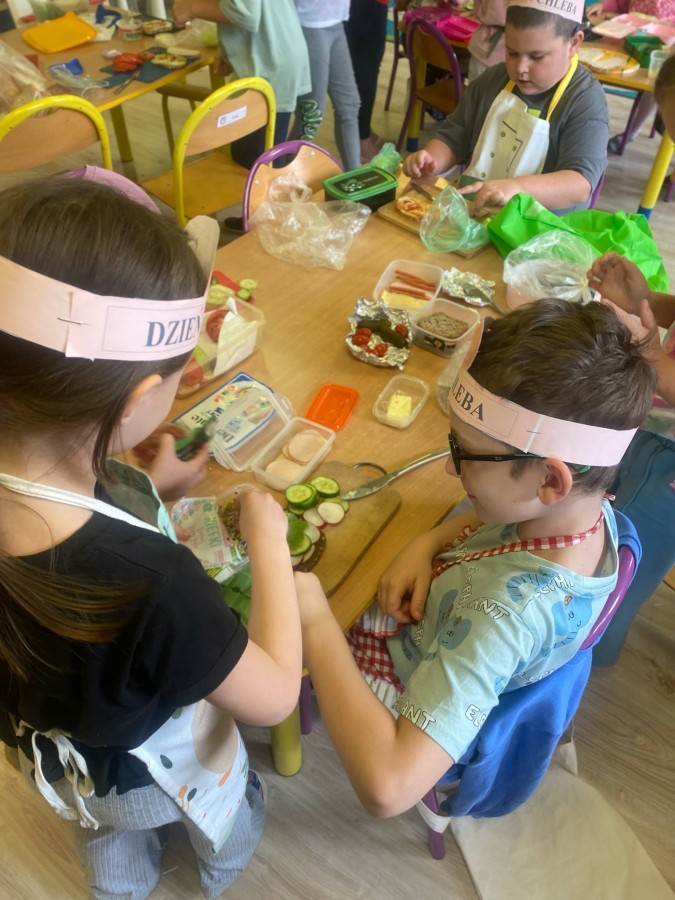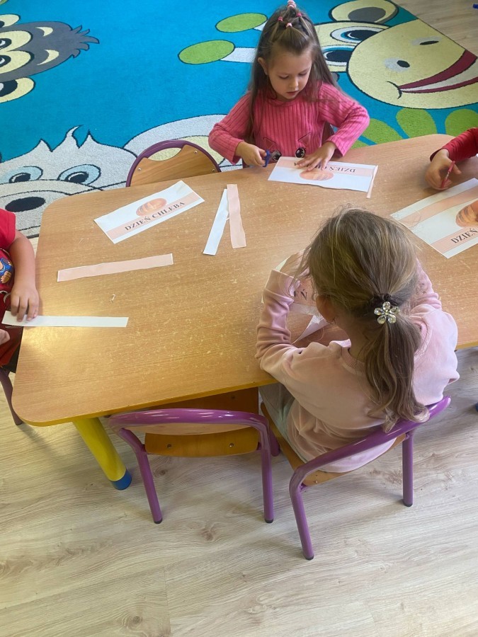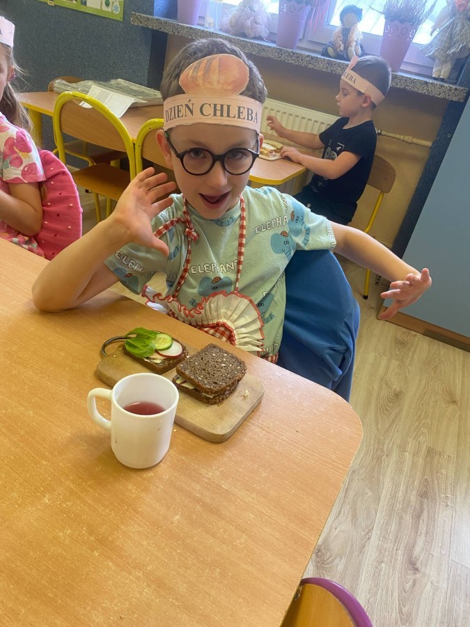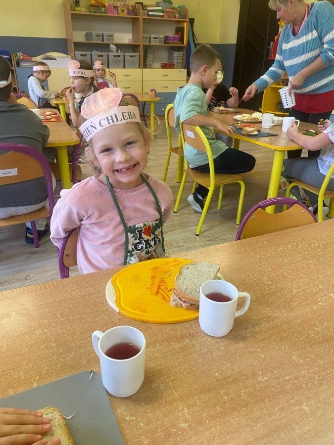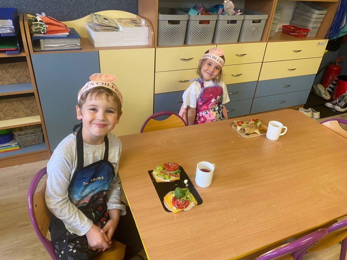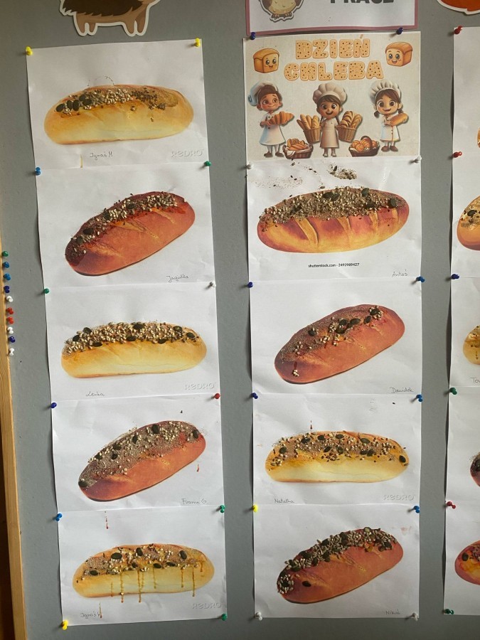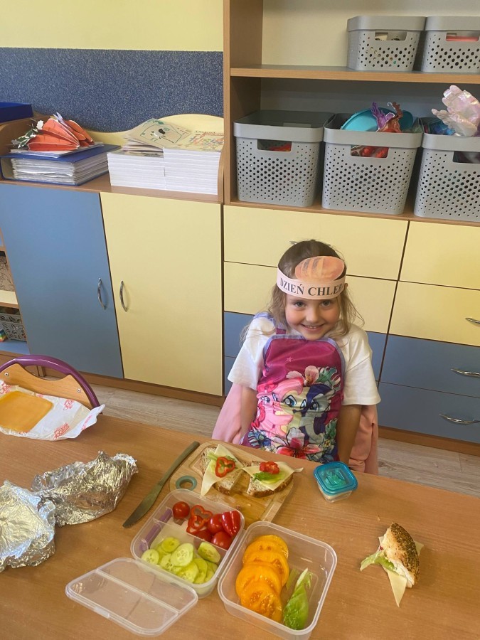 16 października przedszkolaki obchodziły Światowy Dzień Chleba. Dzieci podczas zajęć dowiedziały się w jaki sposób powstaje chleb. Poznały etapy produkcji chleba oglądając film edukacyjny oraz uświadomiły sobie, że chleb jest wynikiem ciężkiej pracy wielu ludzi. Na koniec przedszkolaki własnoręcznie przygotowały kanapki z ulubionego chleba. Podczas zajęć powstała również praca plastyczna związana z tematyką dnia.