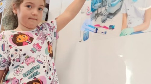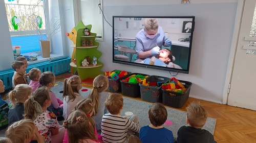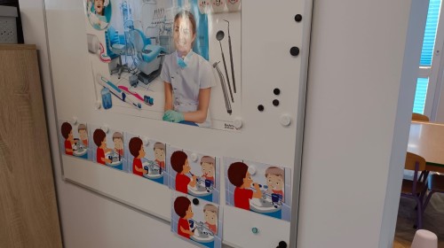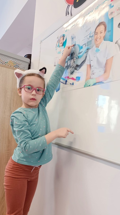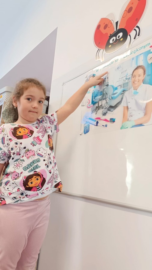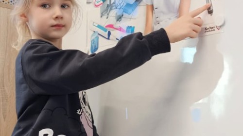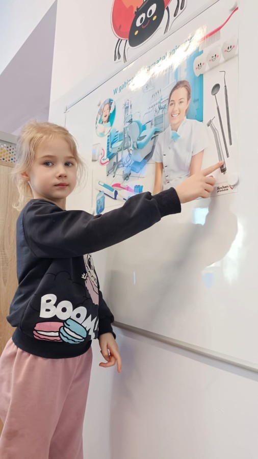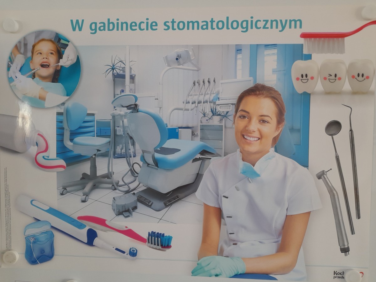 Podczas zajęć dzieci poznały specyfikę pracy stomatologa oraz dowiedziały się, jak prawidłowo dbać o higienę jamy ustnej, aby ich zęby były zdrowe a uśmiech zawsze lśnił czystością. Zapoznałeś się z właściwą techniką szczotkowania zębów oraz uświadomiły sobie jak ważne są regularne wizyty u dentysty.