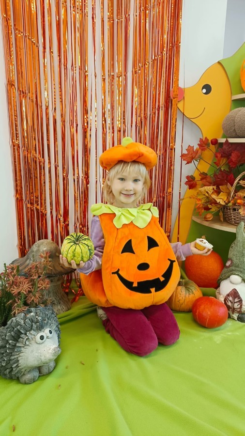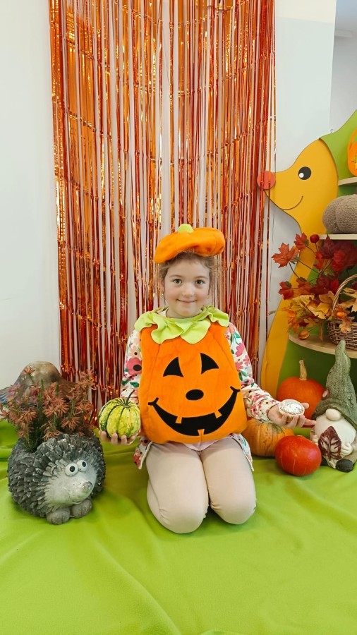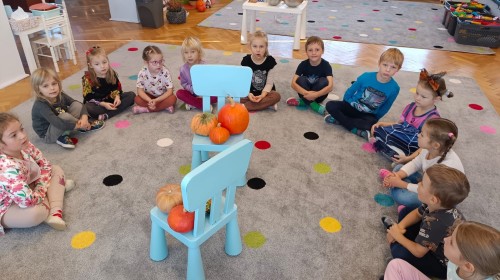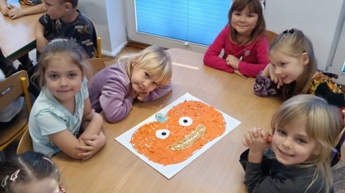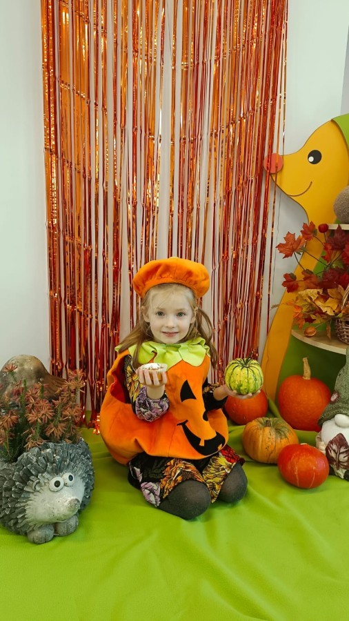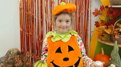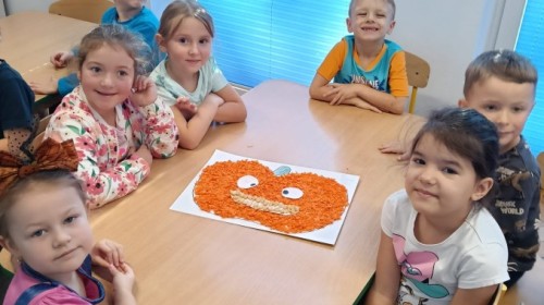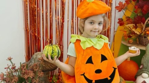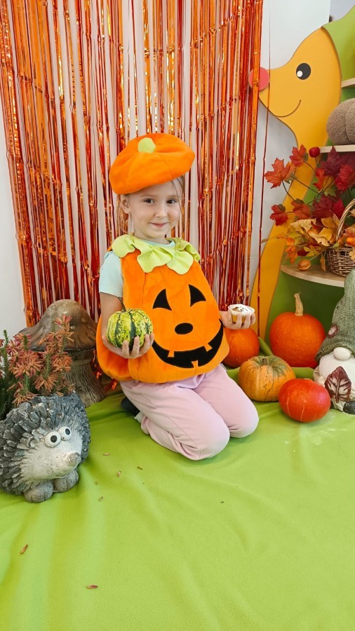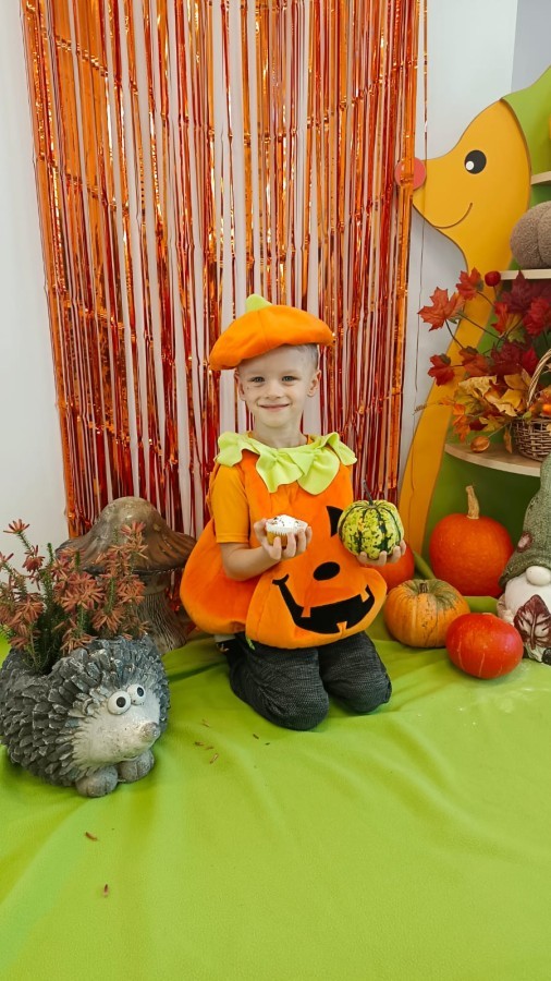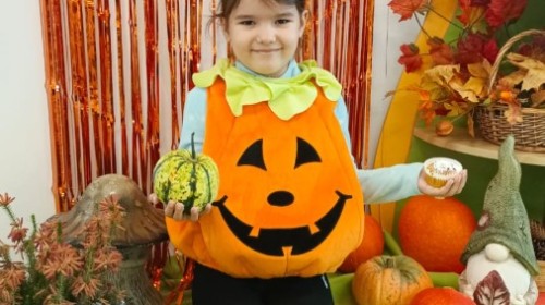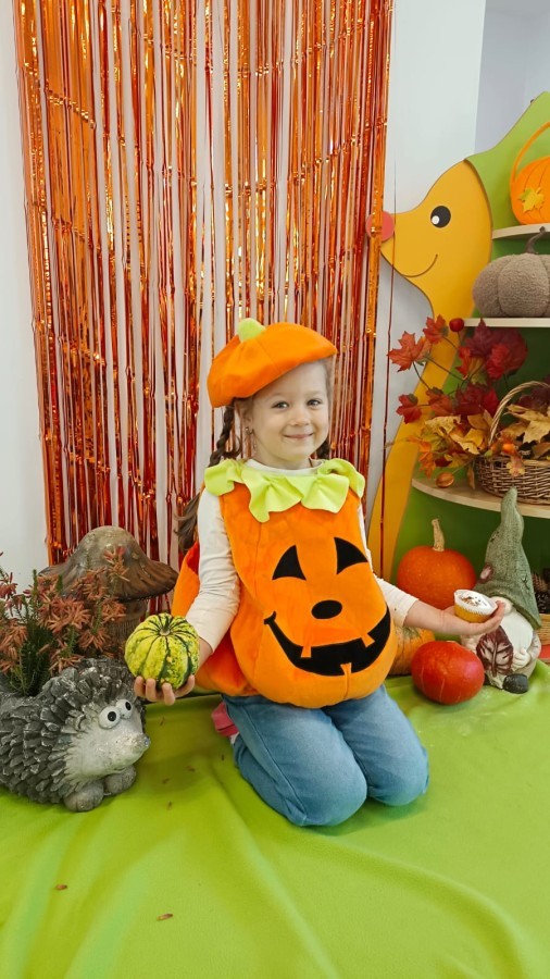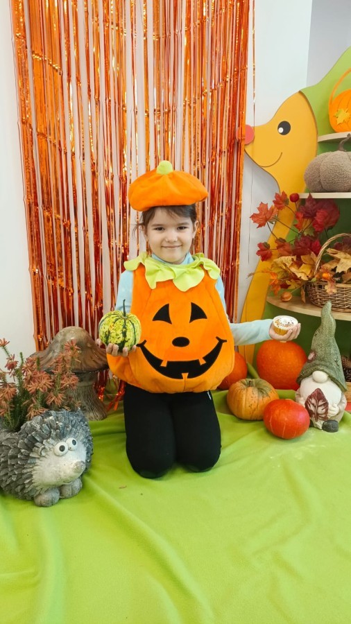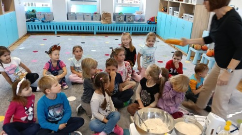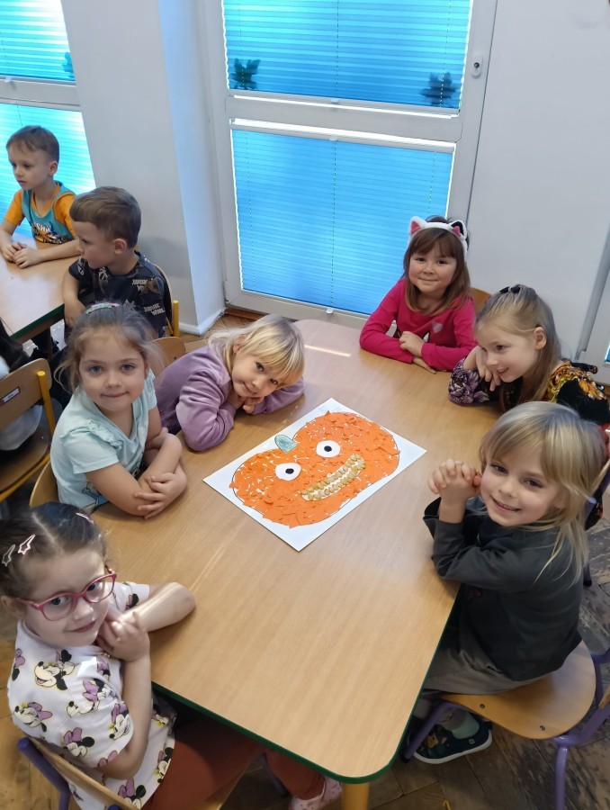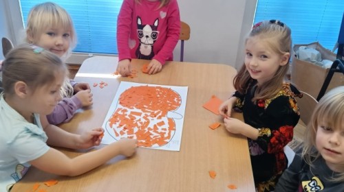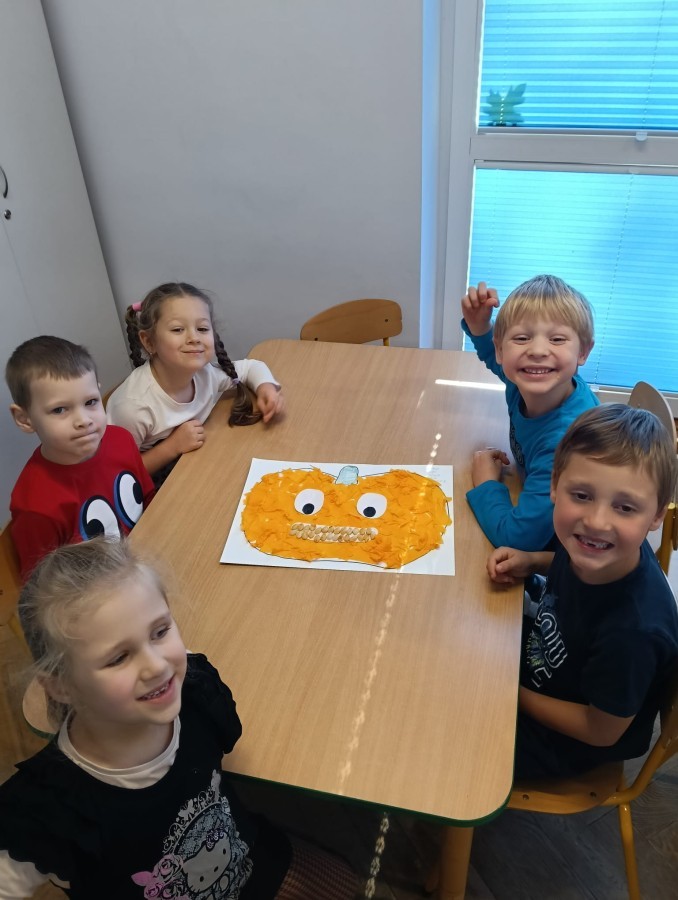 W dniu dzisiejszym obchodziliśmy w naszym przedszkolu Święto Dyni. Był to kolejny kolorowy, wesoły, jak również zdrowy dzień. Od samego rana towarzyszyła nam dynia w zabawach, piosenkach i pracy plastycznej. Dynia była również w przepisie, z którego upiekliśmy pyszne "Dyniowe babeczki". Na koniec dnia mieliśmy kolejną atrakcję: foto-ściankę, na której pozowaliśmy w pięknym pomarańczowym stroju dyni.