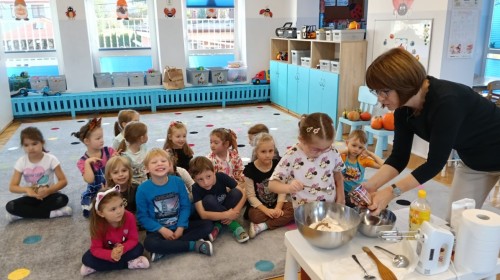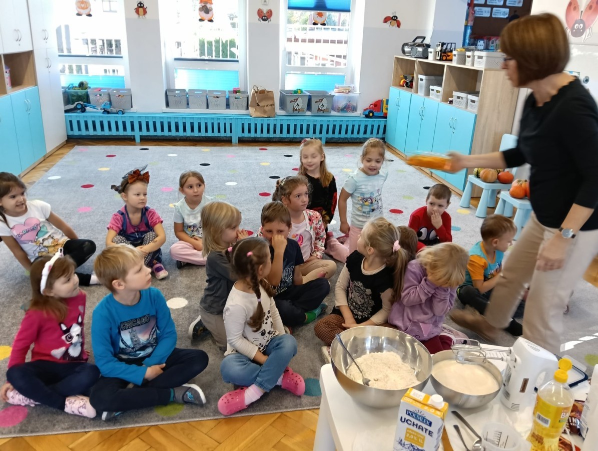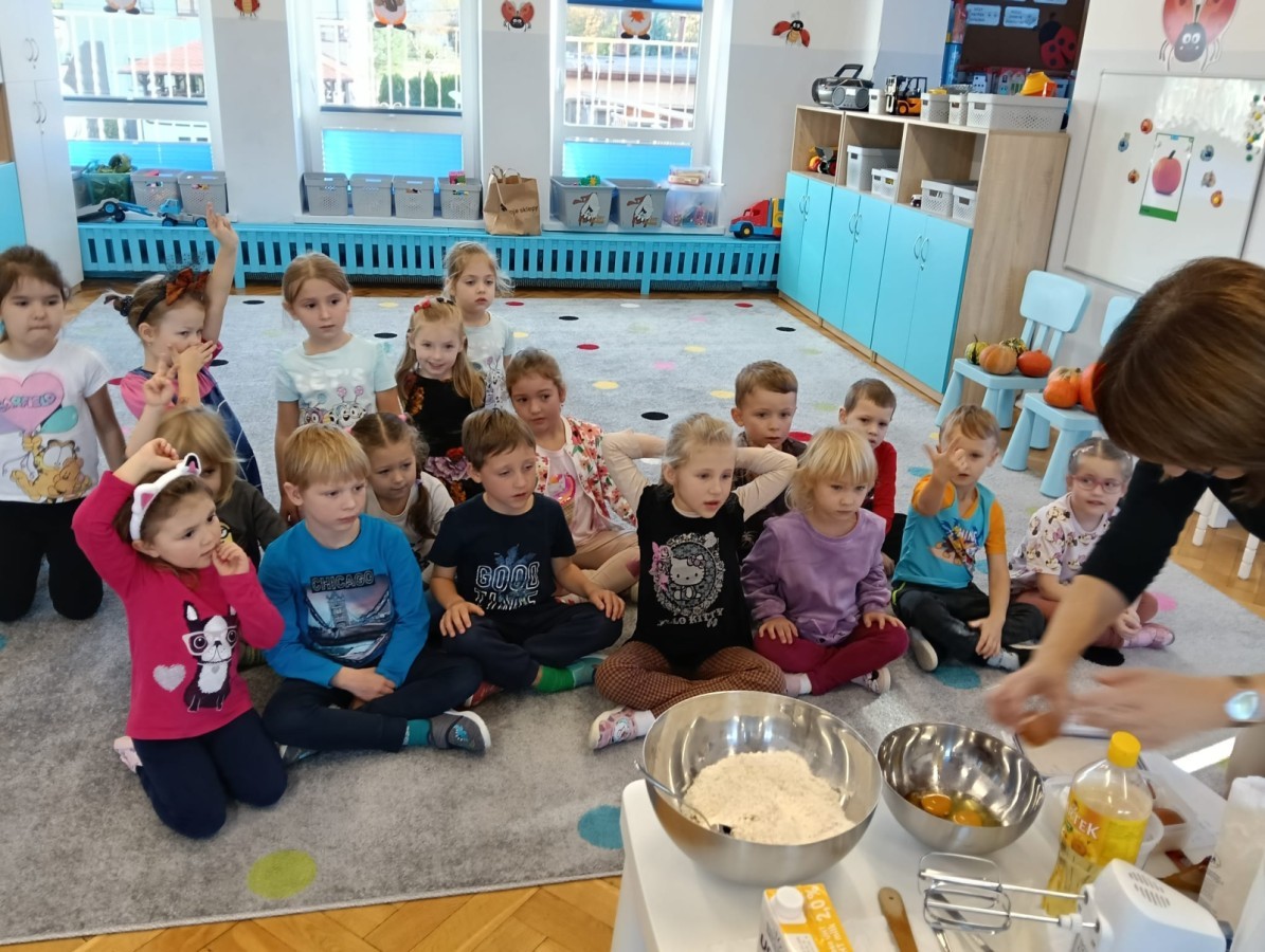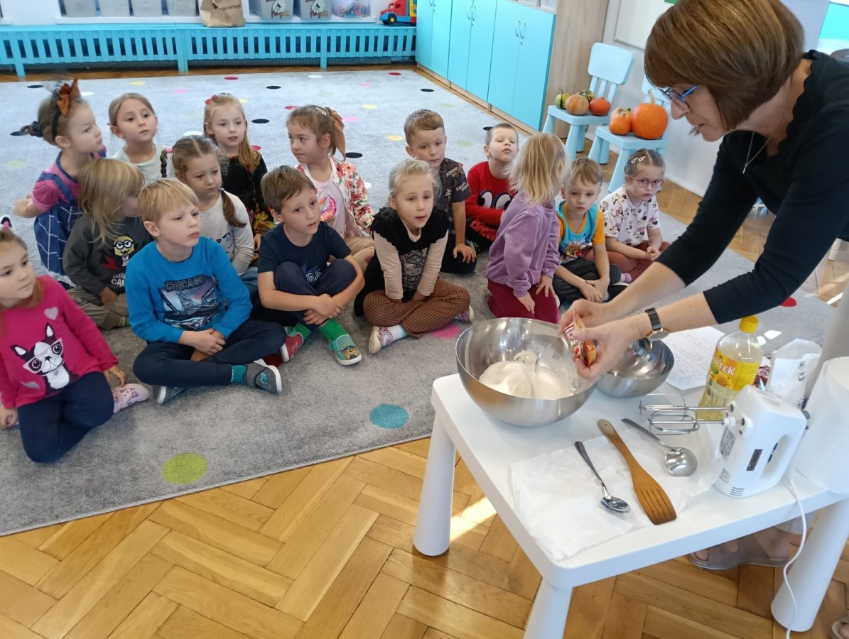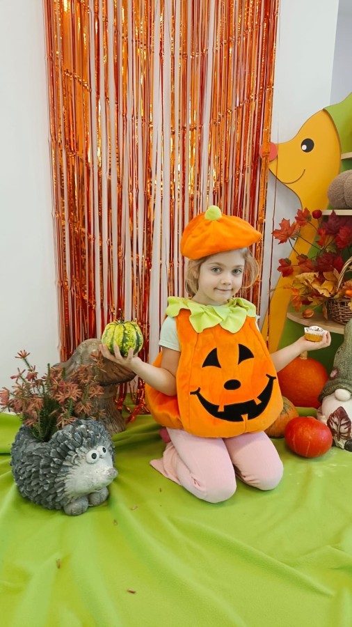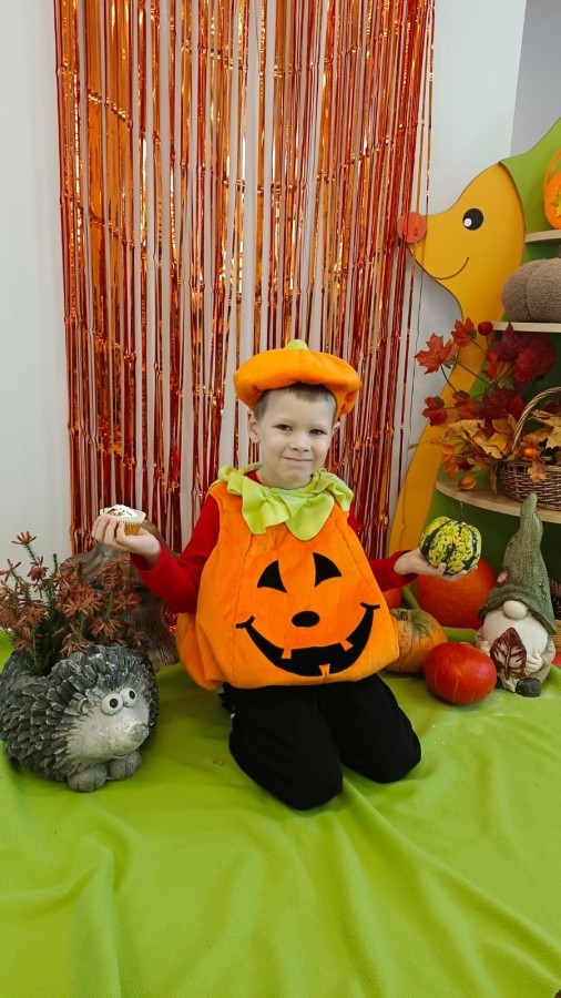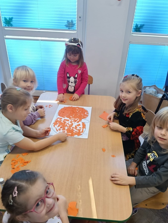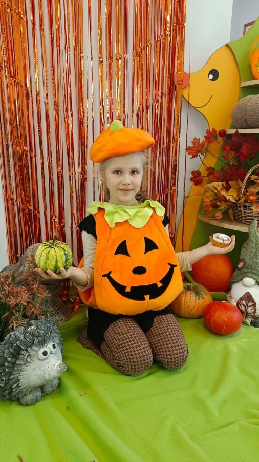 W dniu dzisiejszym obchodziliśmy w naszym przedszkolu Święto Dyni. Był to kolejny kolorowy, wesoły, jak również zdrowy dzień. Od samego rana towarzyszyła nam dynia w zabawach, piosenkach i pracy plastycznej. Dynia była również w przepisie, z którego upiekliśmy pyszne "Dyniowe babeczki". Na koniec dnia mieliśmy kolejną atrakcję: foto-ściankę, na której pozowaliśmy w pięknym pomarańczowym stroju dyni.