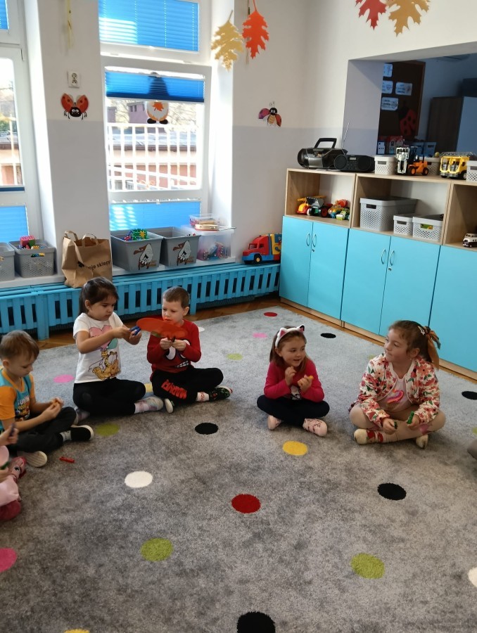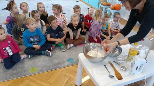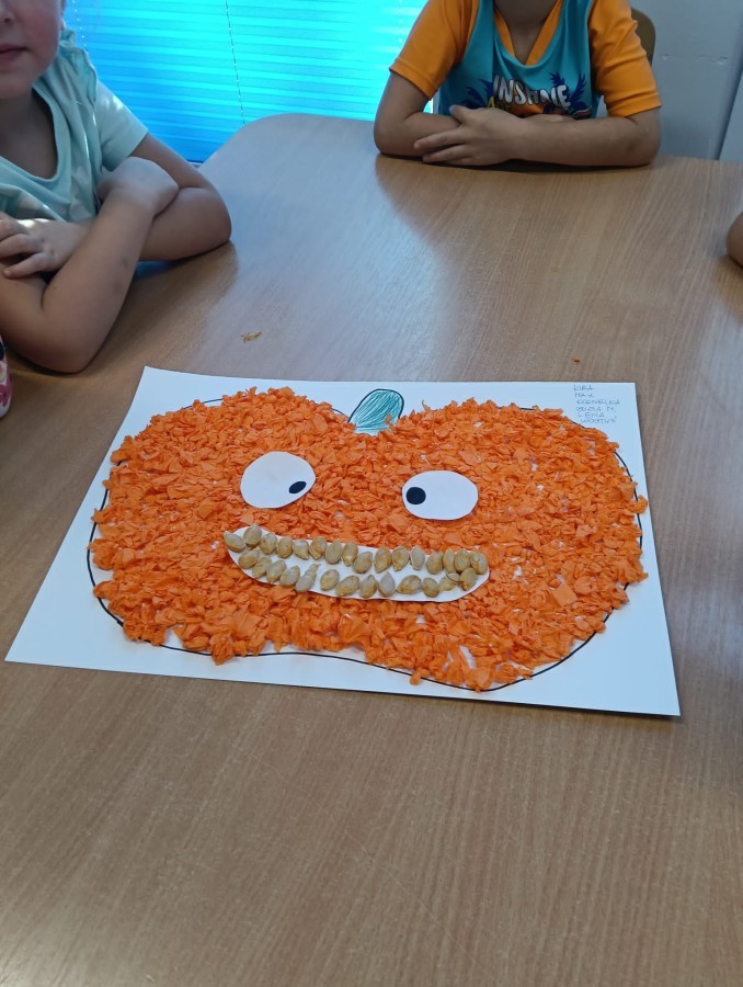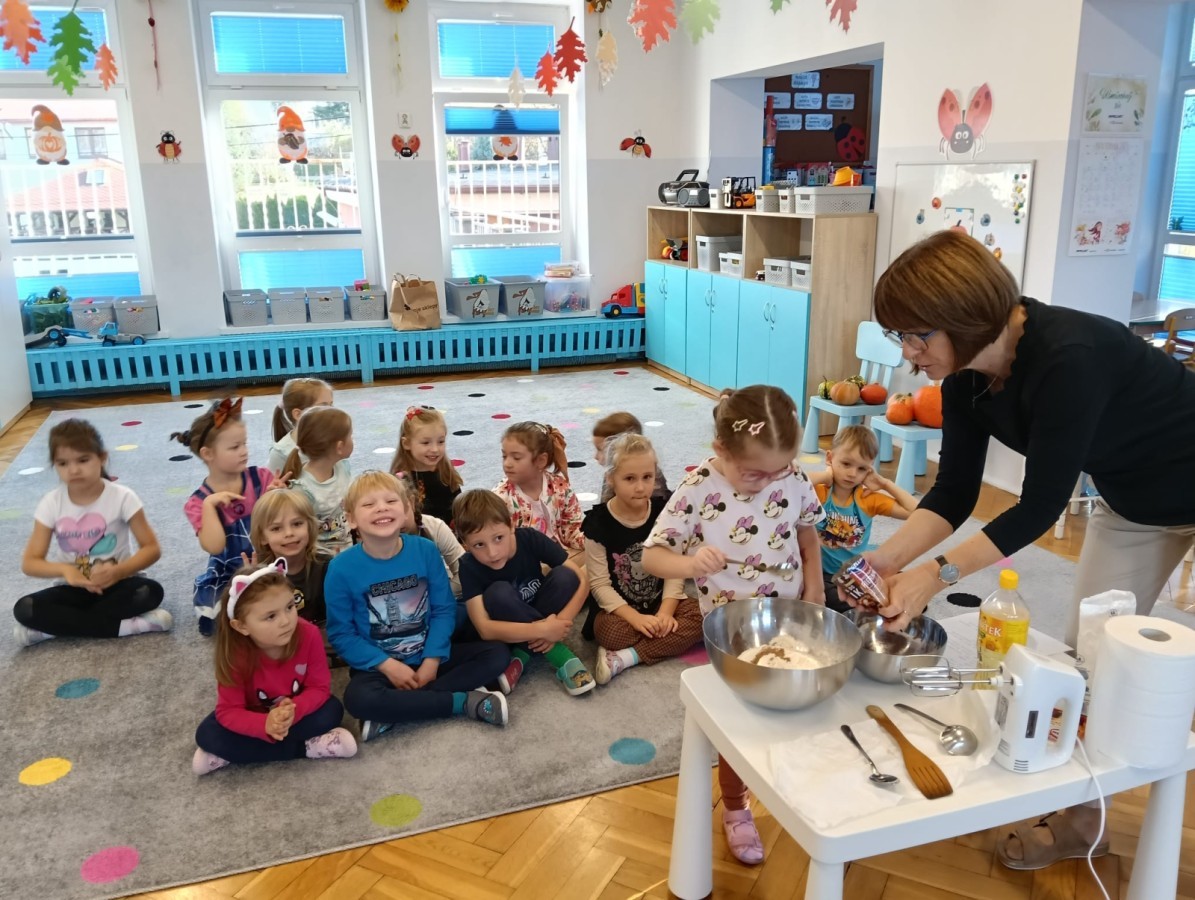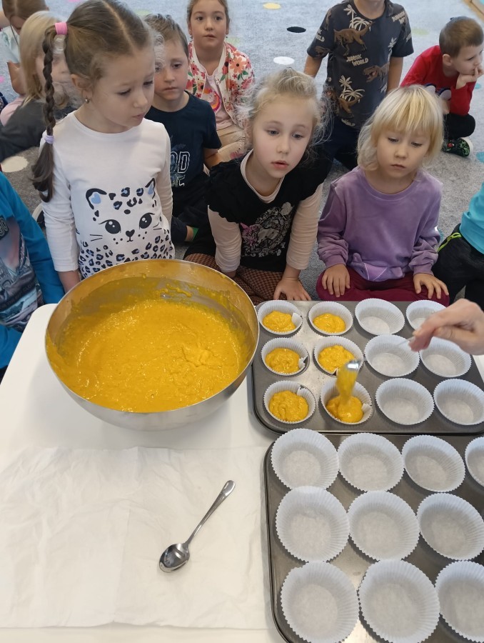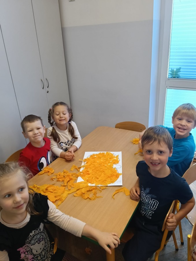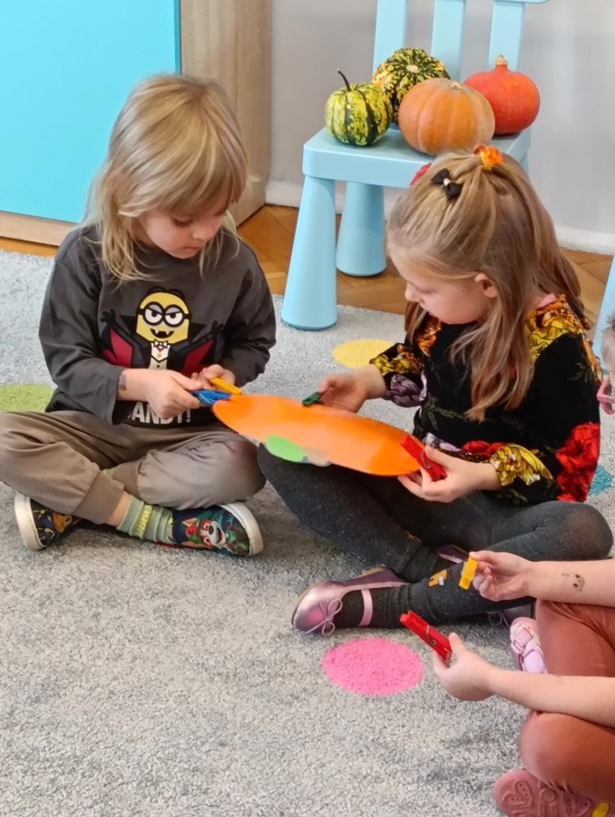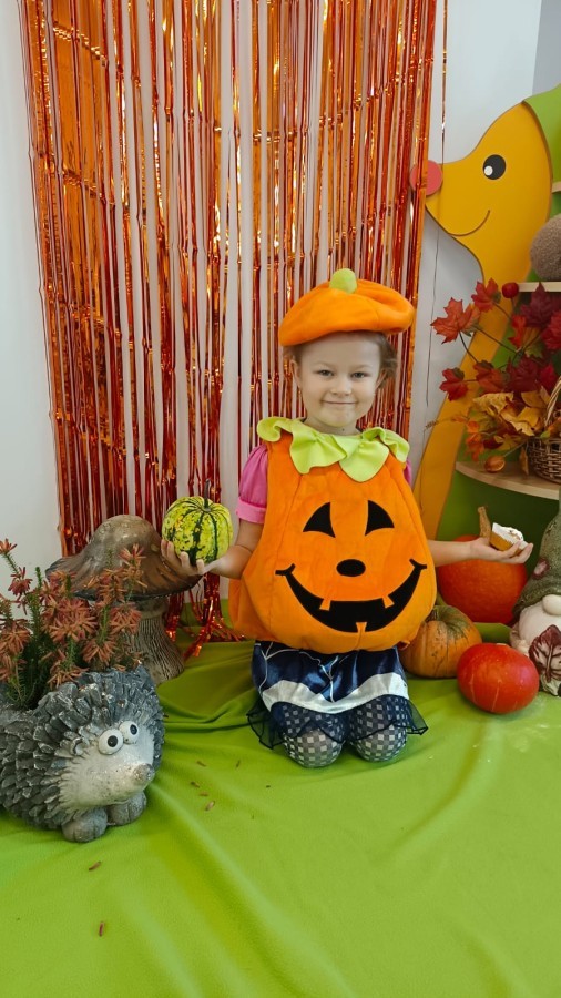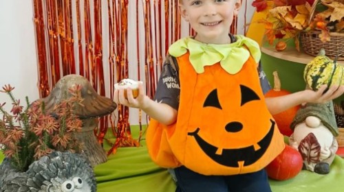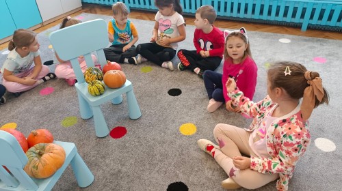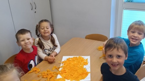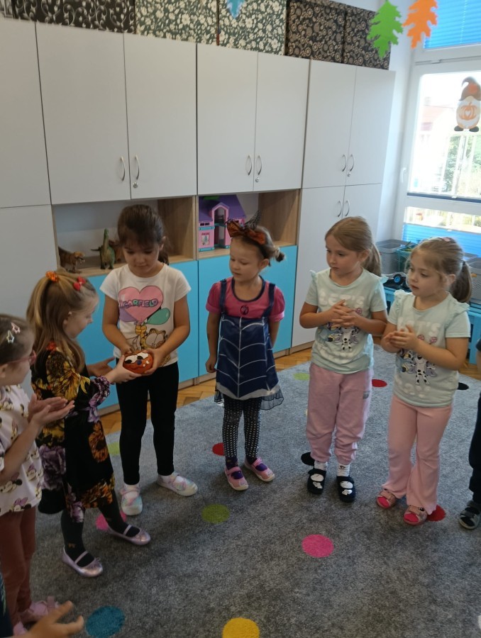 W dniu dzisiejszym obchodziliśmy w naszym przedszkolu Święto Dyni. Był to kolejny kolorowy, wesoły, jak również zdrowy dzień. Od samego rana towarzyszyła nam dynia w zabawach, piosenkach i pracy plastycznej. Dynia była również w przepisie, z którego upiekliśmy pyszne "Dyniowe babeczki". Na koniec dnia mieliśmy kolejną atrakcję: foto-ściankę, na której pozowaliśmy w pięknym pomarańczowym stroju dyni.