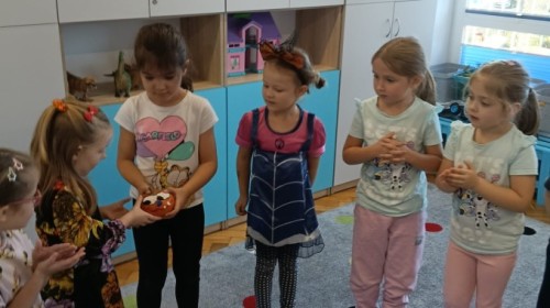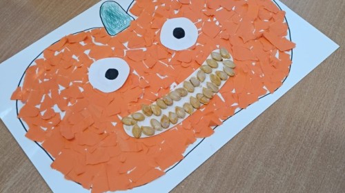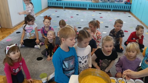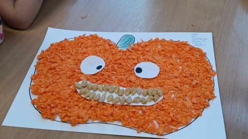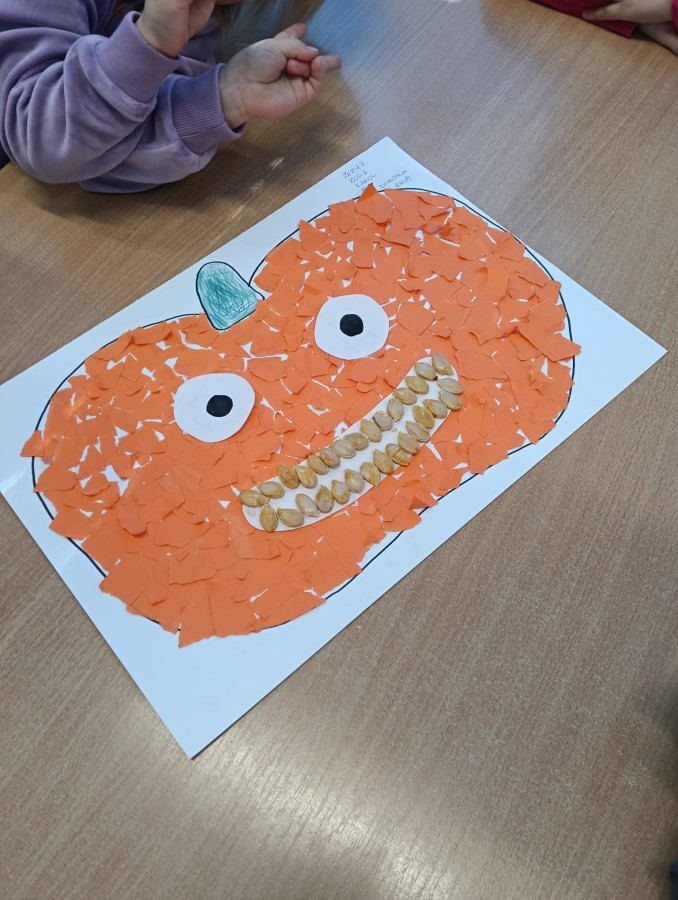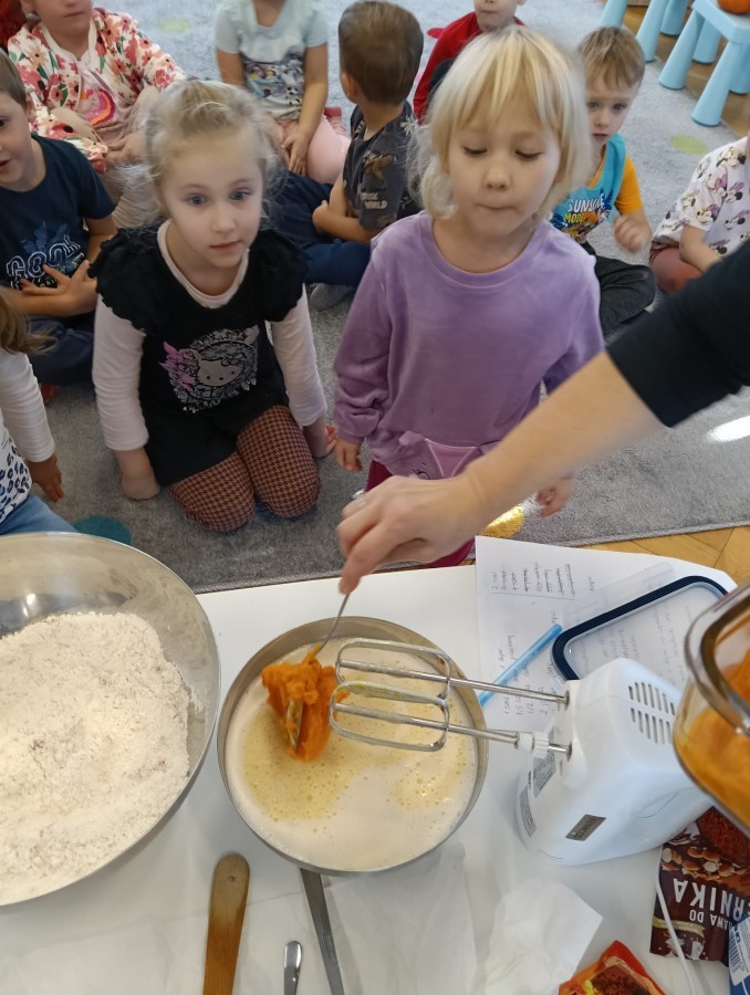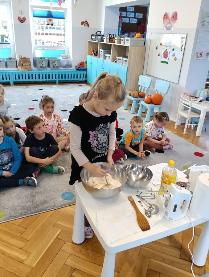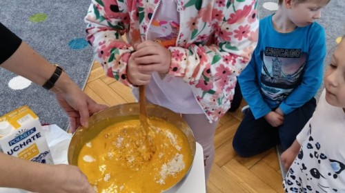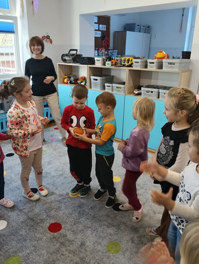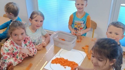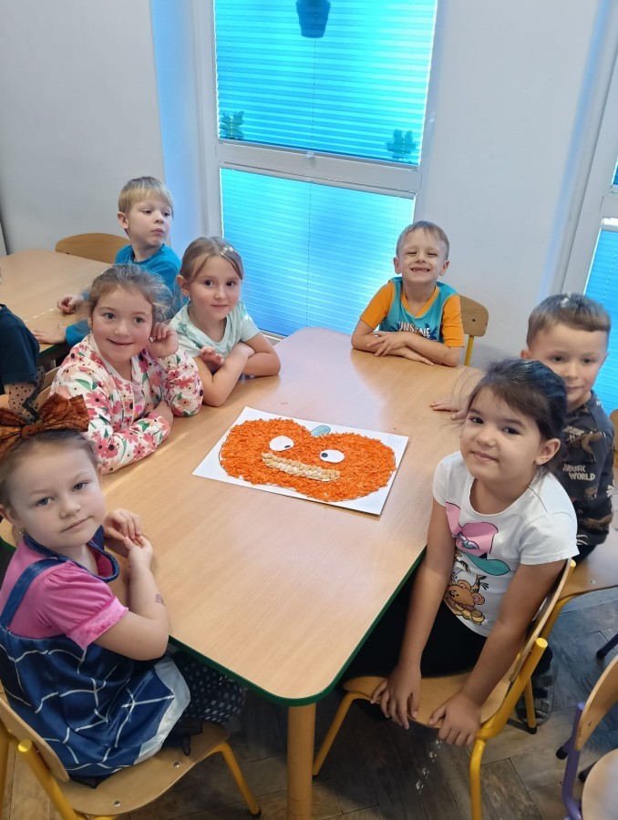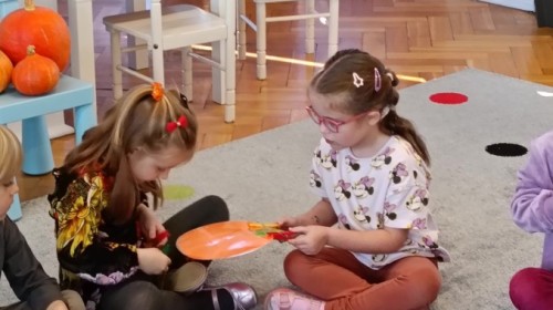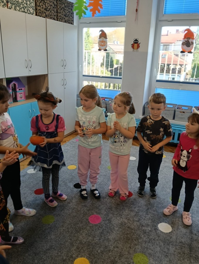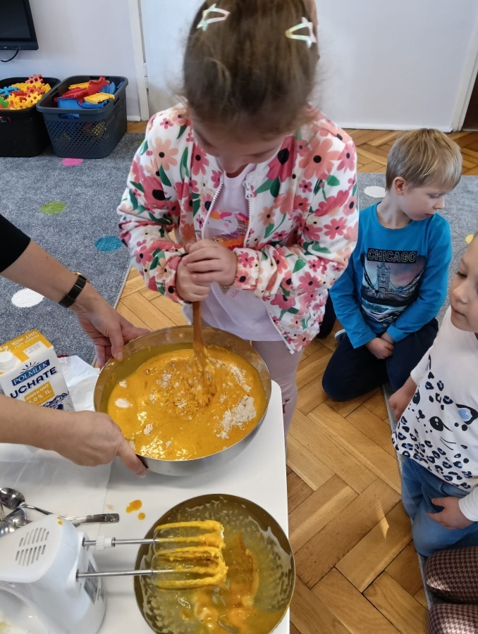 W dniu dzisiejszym obchodziliśmy w naszym przedszkolu Święto Dyni. Był to kolejny kolorowy, wesoły, jak również zdrowy dzień. Od samego rana towarzyszyła nam dynia w zabawach, piosenkach i pracy plastycznej. Dynia była również w przepisie, z którego upiekliśmy pyszne "Dyniowe babeczki". Na koniec dnia mieliśmy kolejną atrakcję: foto-ściankę, na której pozowaliśmy w pięknym pomarańczowym stroju dyni.