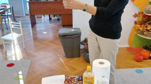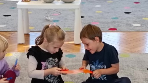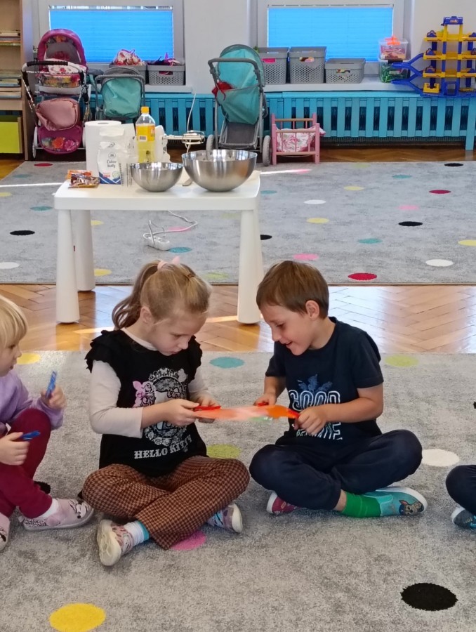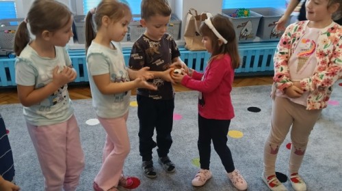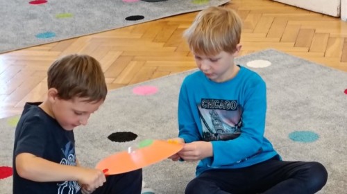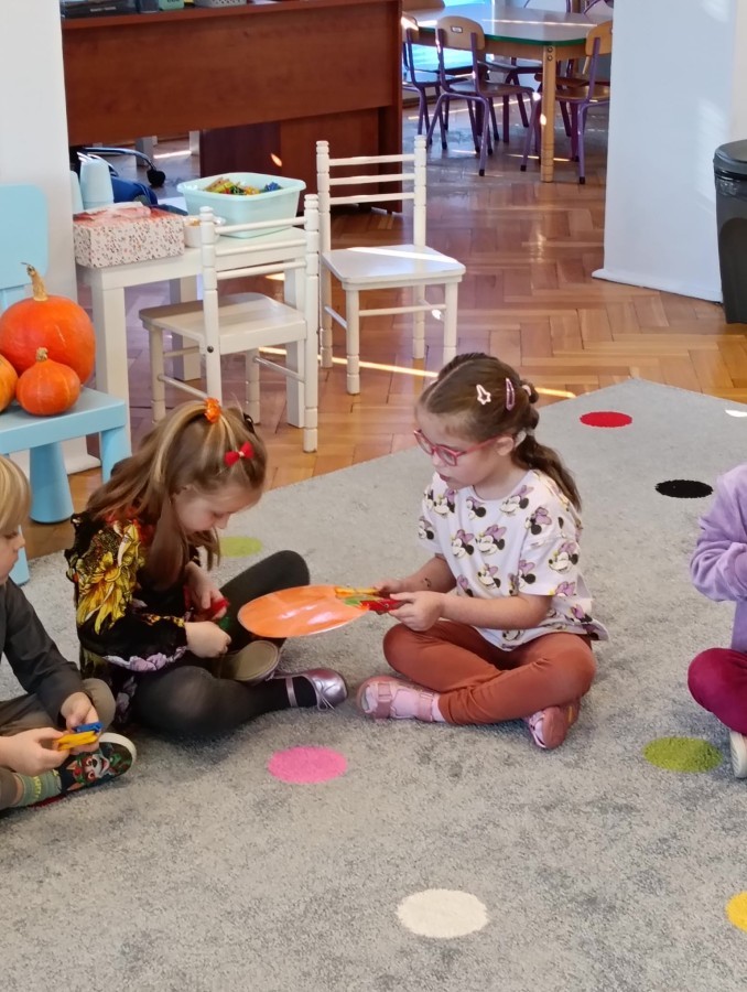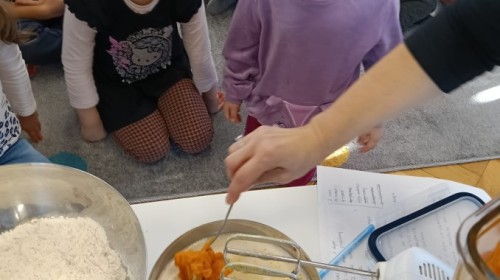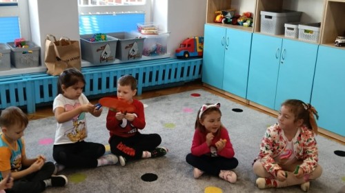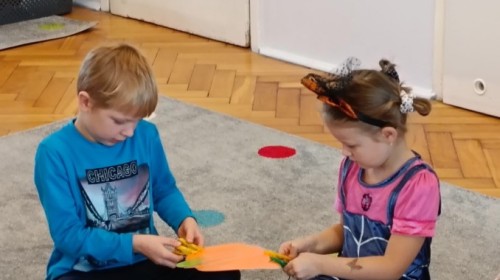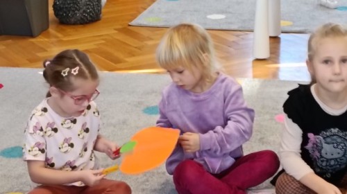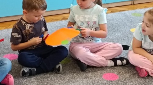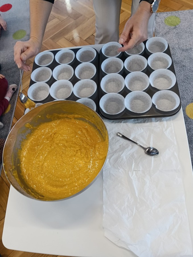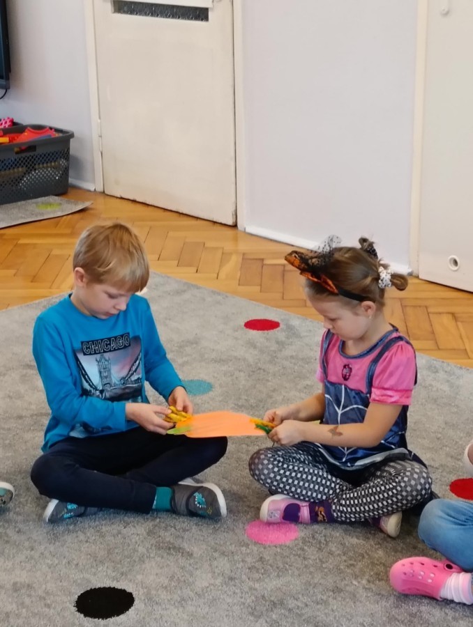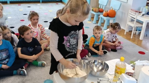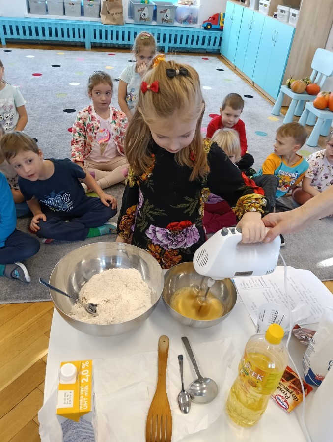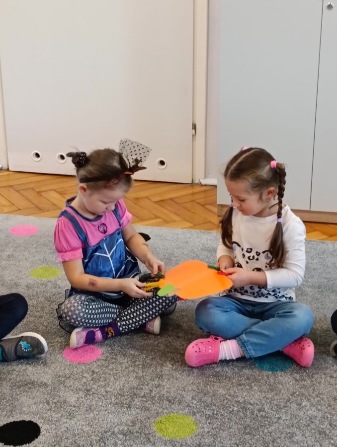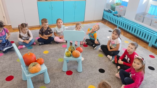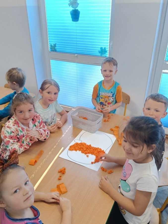 W dniu dzisiejszym obchodziliśmy w naszym przedszkolu Święto Dyni. Był to kolejny kolorowy, wesoły, jak również zdrowy dzień. Od samego rana towarzyszyła nam dynia w zabawach, piosenkach i pracy plastycznej. Dynia była również w przepisie, z którego upiekliśmy pyszne "Dyniowe babeczki". Na koniec dnia mieliśmy kolejną atrakcję: foto-ściankę, na której pozowaliśmy w pięknym pomarańczowym stroju dyni.
