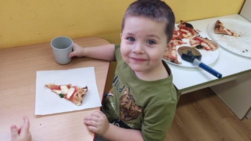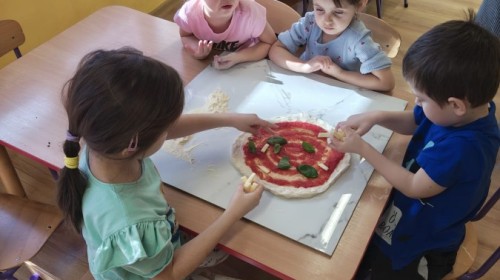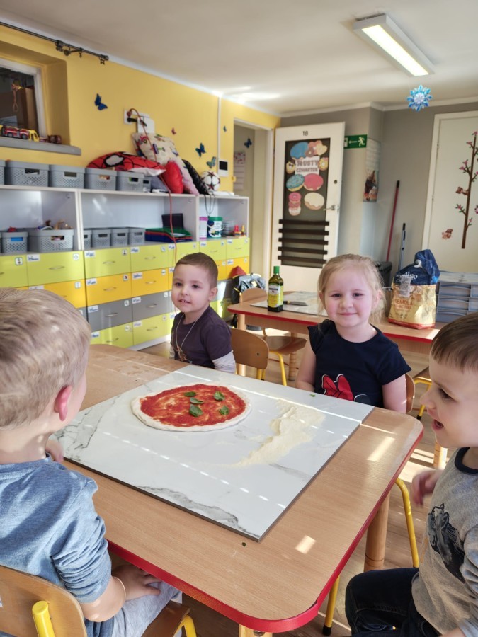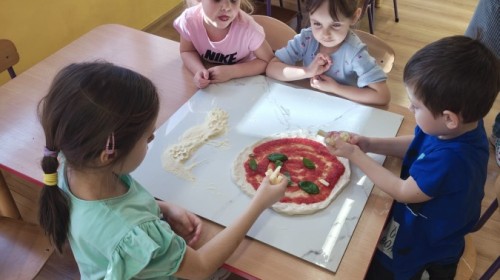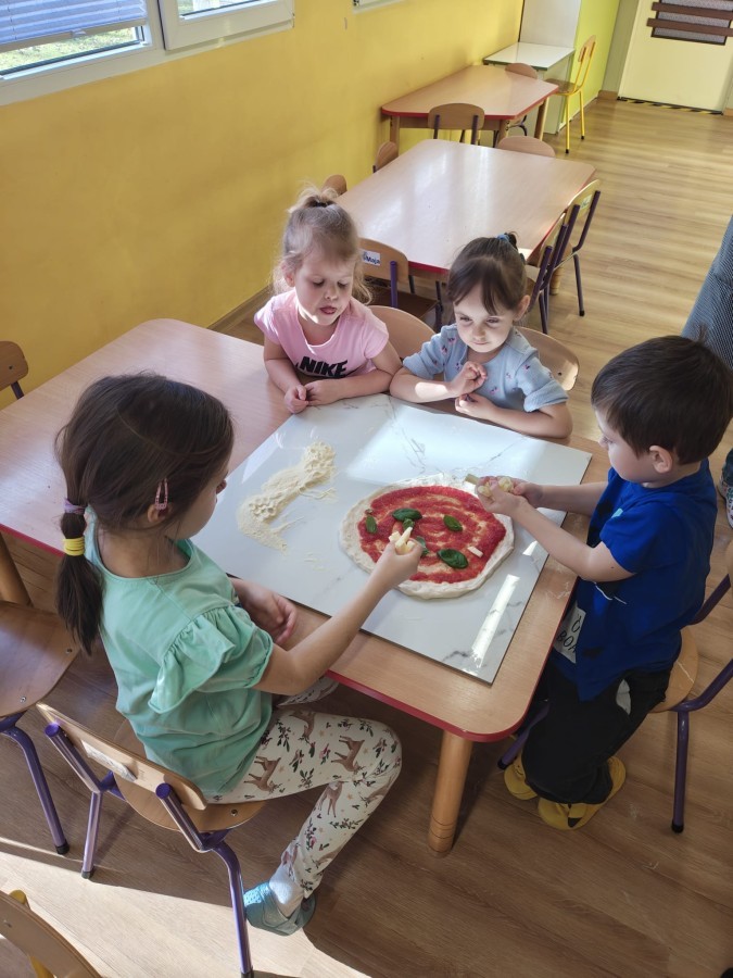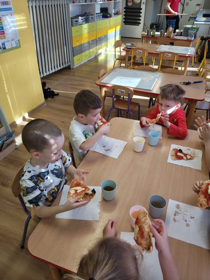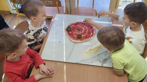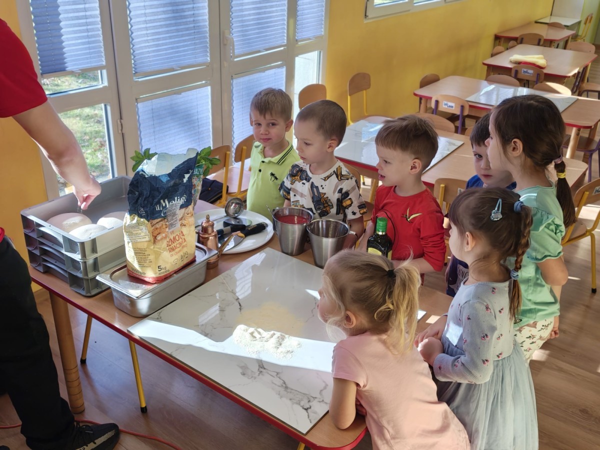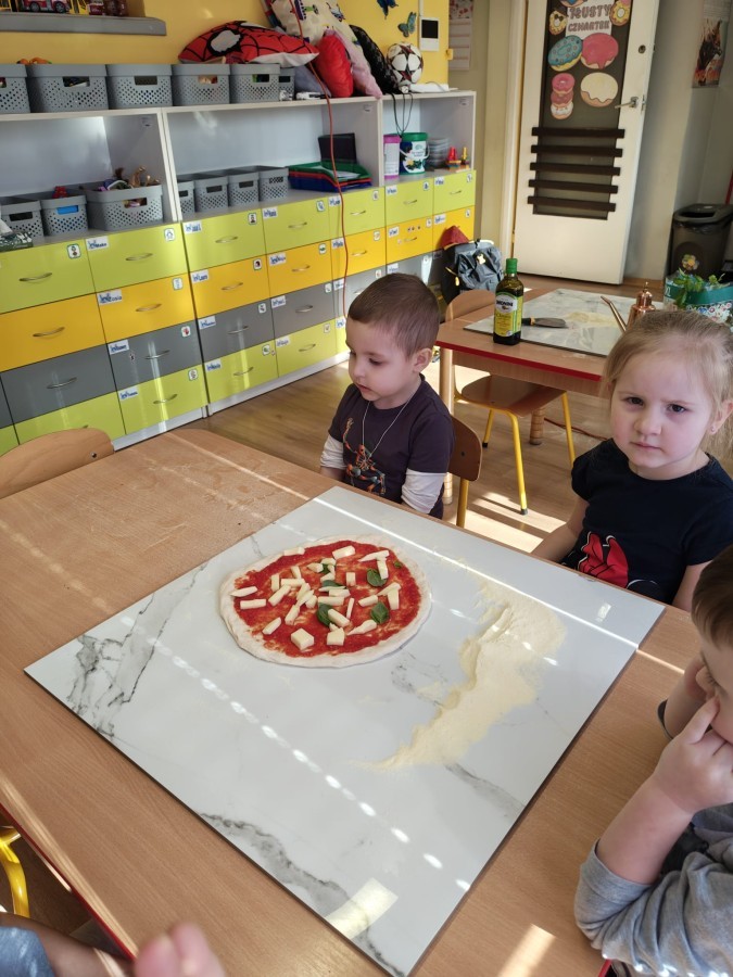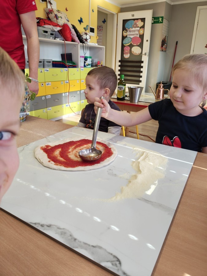W tym tygodniu w naszym przedszkolu zapachniało słoneczną Italią! Zamiast zwykłych zajęć, dzieci wcieliły się w role małych kucharzy. Dowiedziały się, skąd pochodzi pizza i jakie składniki są niezbędne do jej przygotowania. Największą radość sprawiło jednak samodzielne tworzenie własnej pizzy! Na koniec przedszkolaki z wielkim apetytem zajadały się swoimi wypiekami, zgodnie uznając, że własnoręcznie zrobiona pizza smakuje najlepiej na świecie!