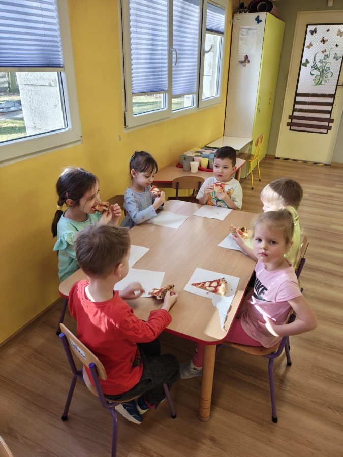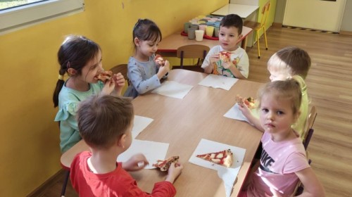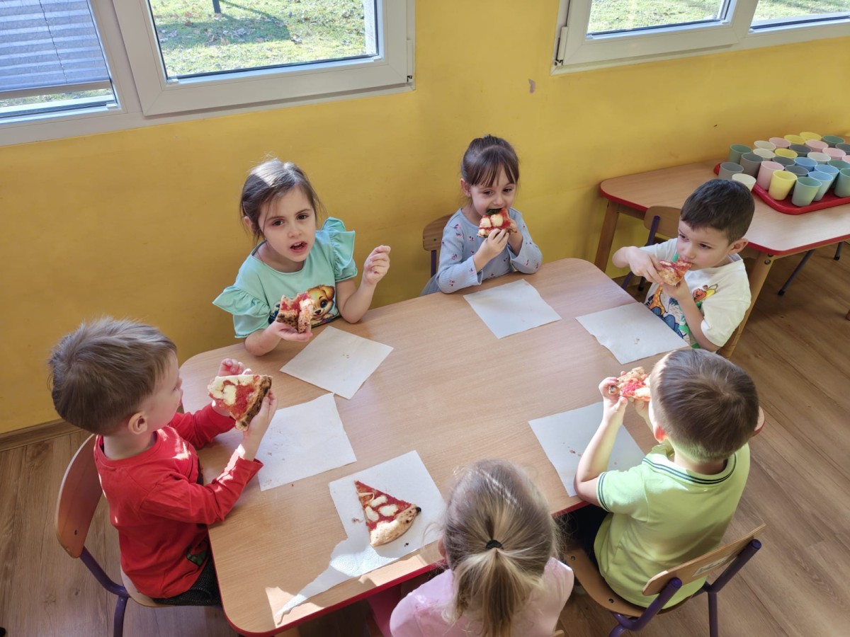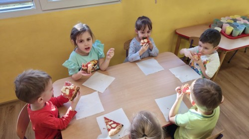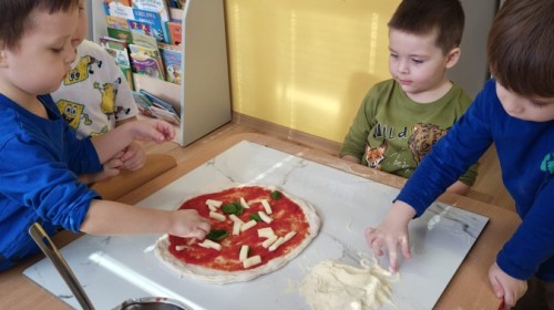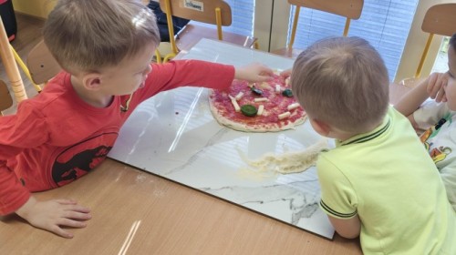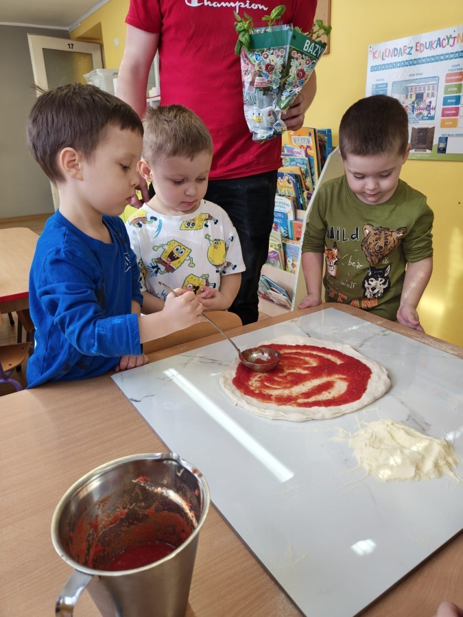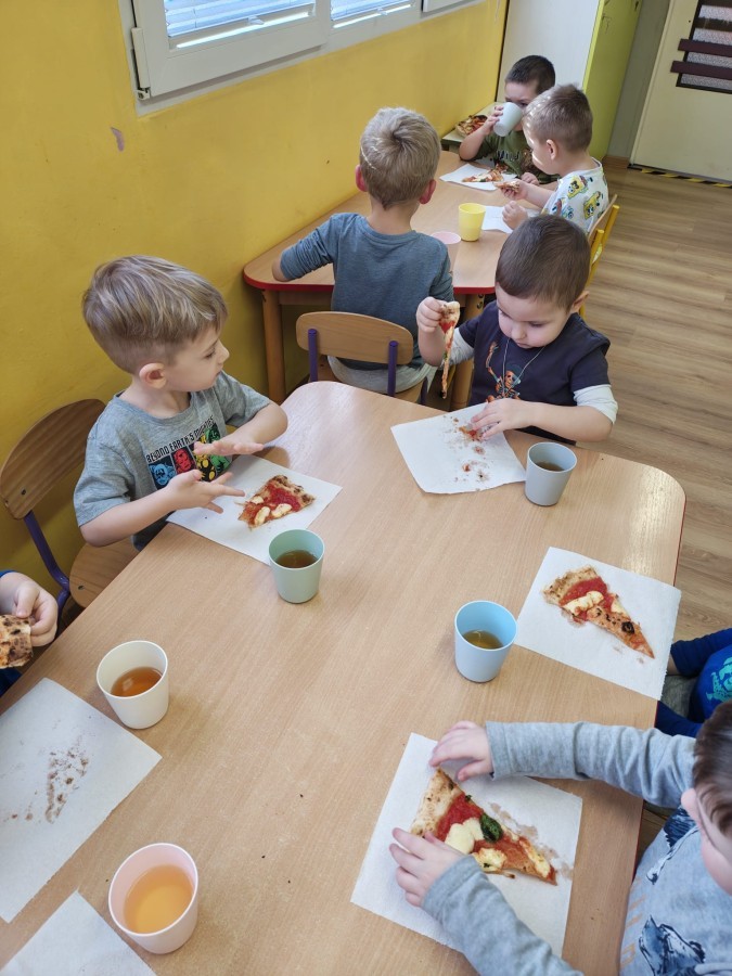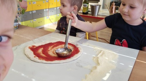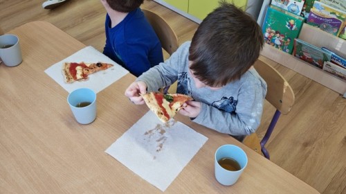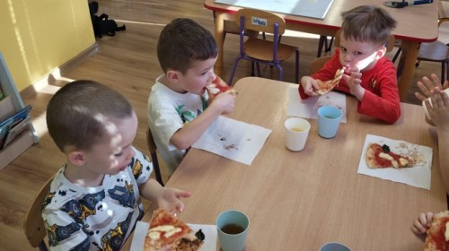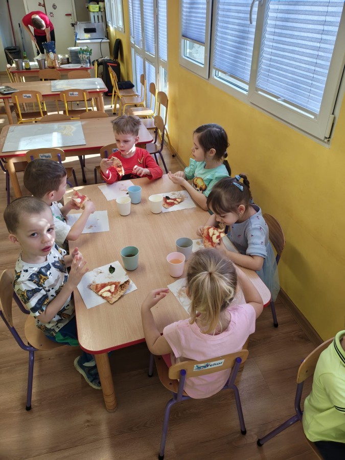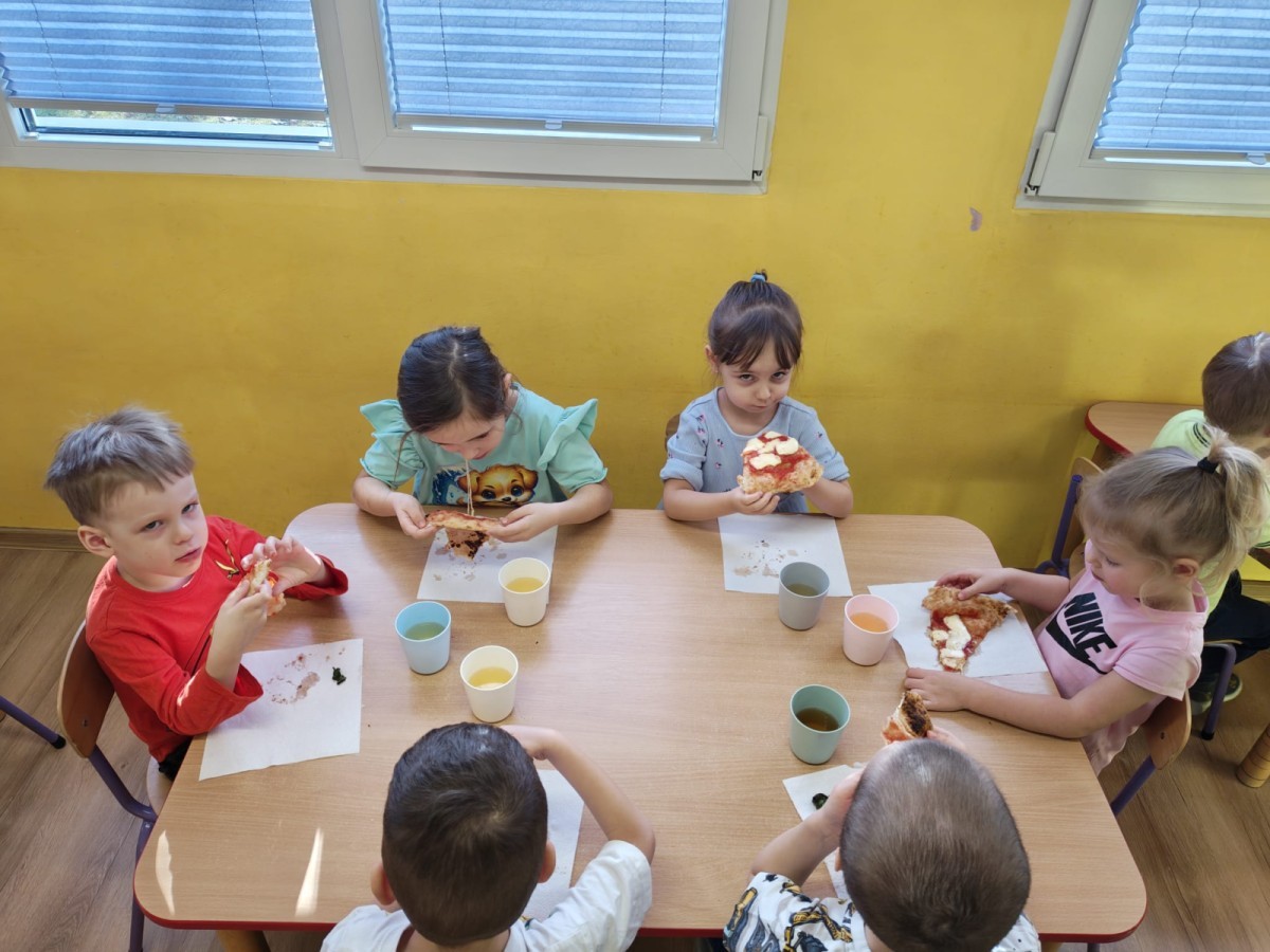 W tym tygodniu w naszym przedszkolu zapachniało słoneczną Italią! Zamiast zwykłych zajęć, dzieci wcieliły się w role małych kucharzy. Dowiedziały się, skąd pochodzi pizza i jakie składniki są niezbędne do jej przygotowania. Największą radość sprawiło jednak samodzielne tworzenie własnej pizzy! Na koniec przedszkolaki z wielkim apetytem zajadały się swoimi wypiekami, zgodnie uznając, że własnoręcznie zrobiona pizza smakuje najlepiej na świecie!
