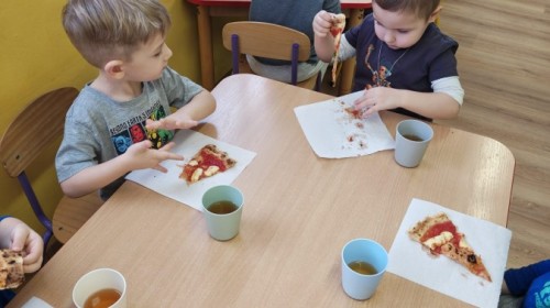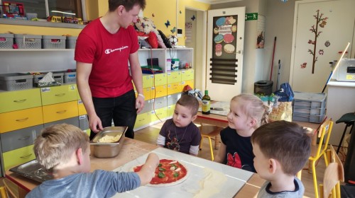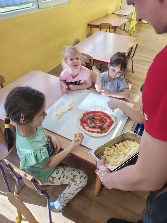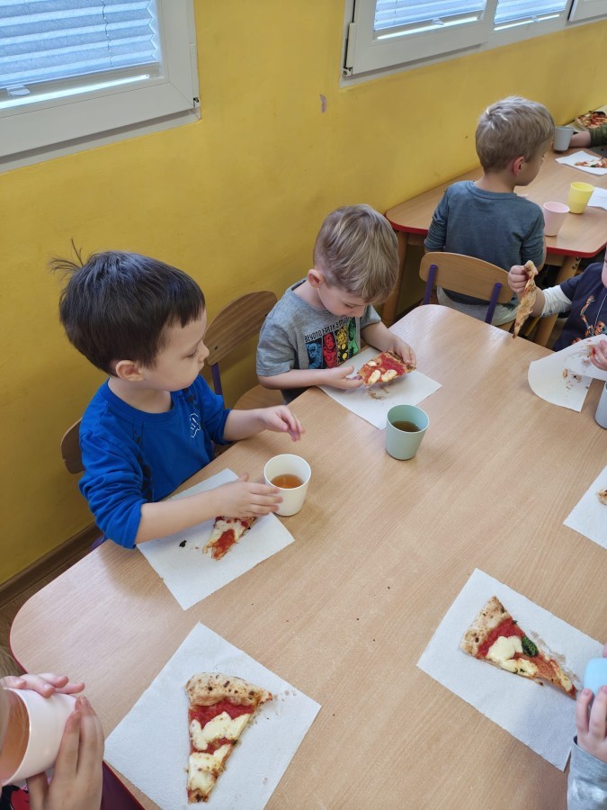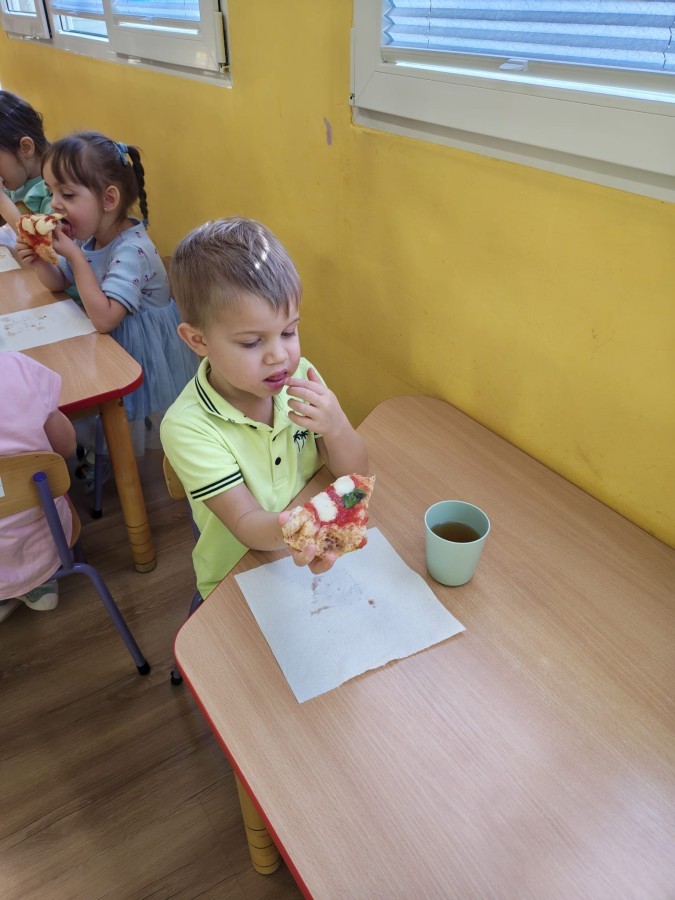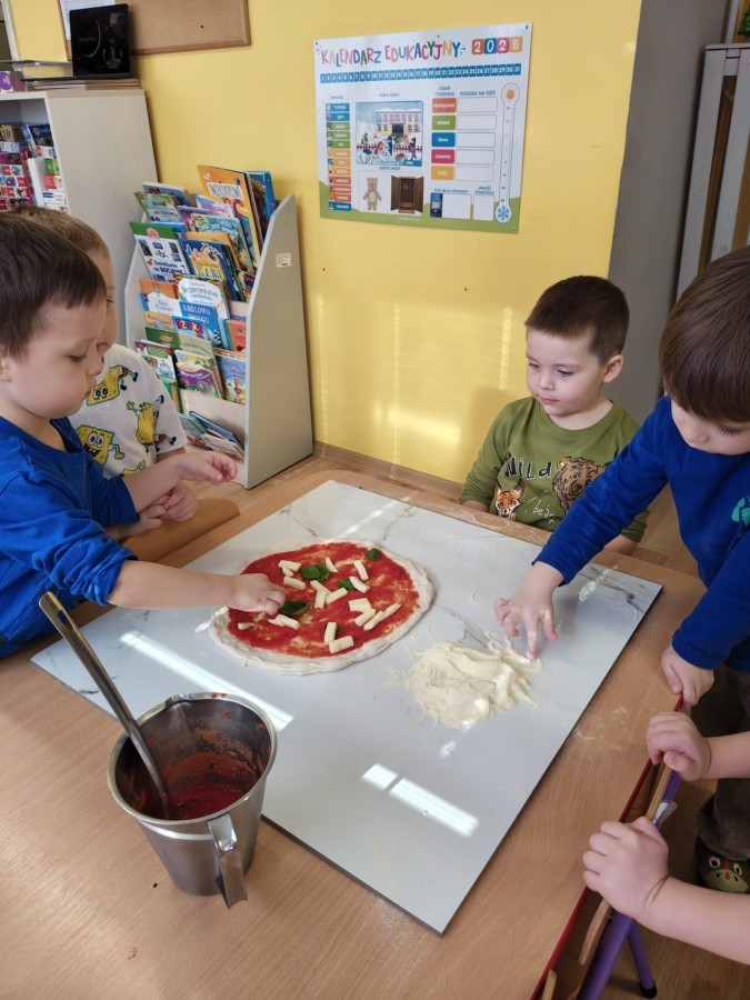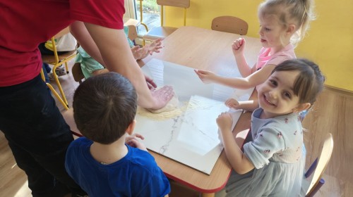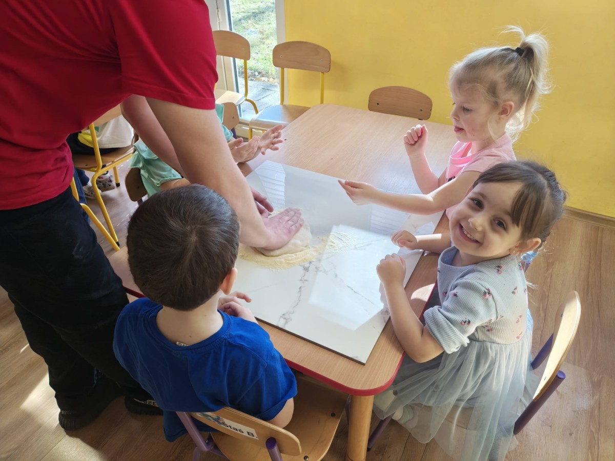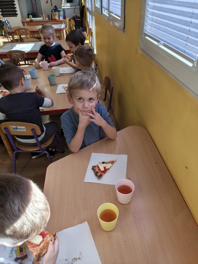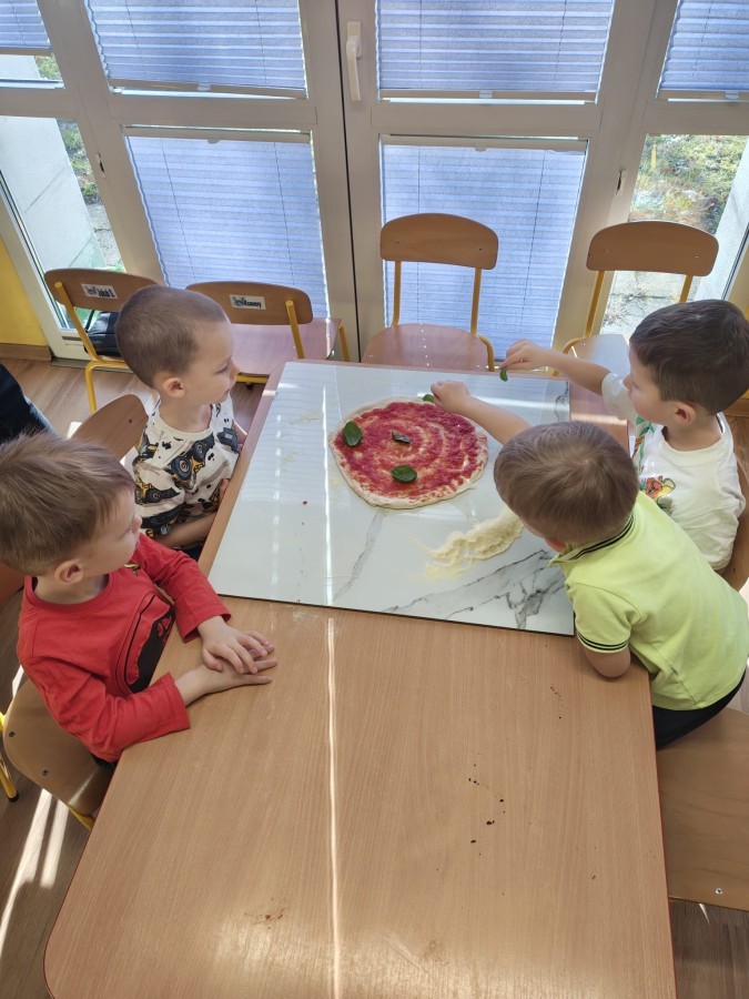 W tym tygodniu w naszym przedszkolu zapachniało słoneczną Italią! Zamiast zwykłych zajęć, dzieci wcieliły się w role małych kucharzy. Dowiedziały się, skąd pochodzi pizza i jakie składniki są niezbędne do jej przygotowania. Największą radość sprawiło jednak samodzielne tworzenie własnej pizzy! Na koniec przedszkolaki z wielkim apetytem zajadały się swoimi wypiekami, zgodnie uznając, że własnoręcznie zrobiona pizza smakuje najlepiej na świecie!