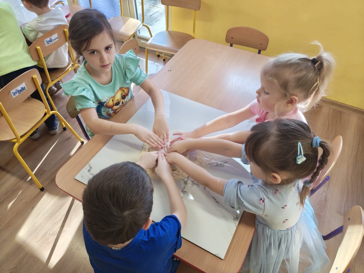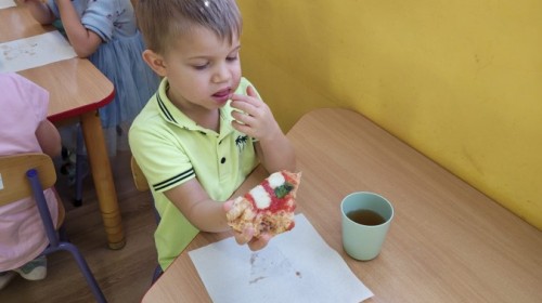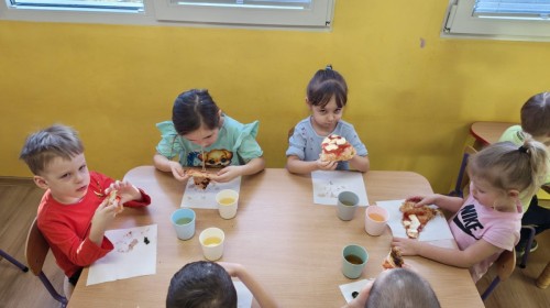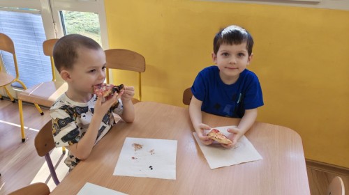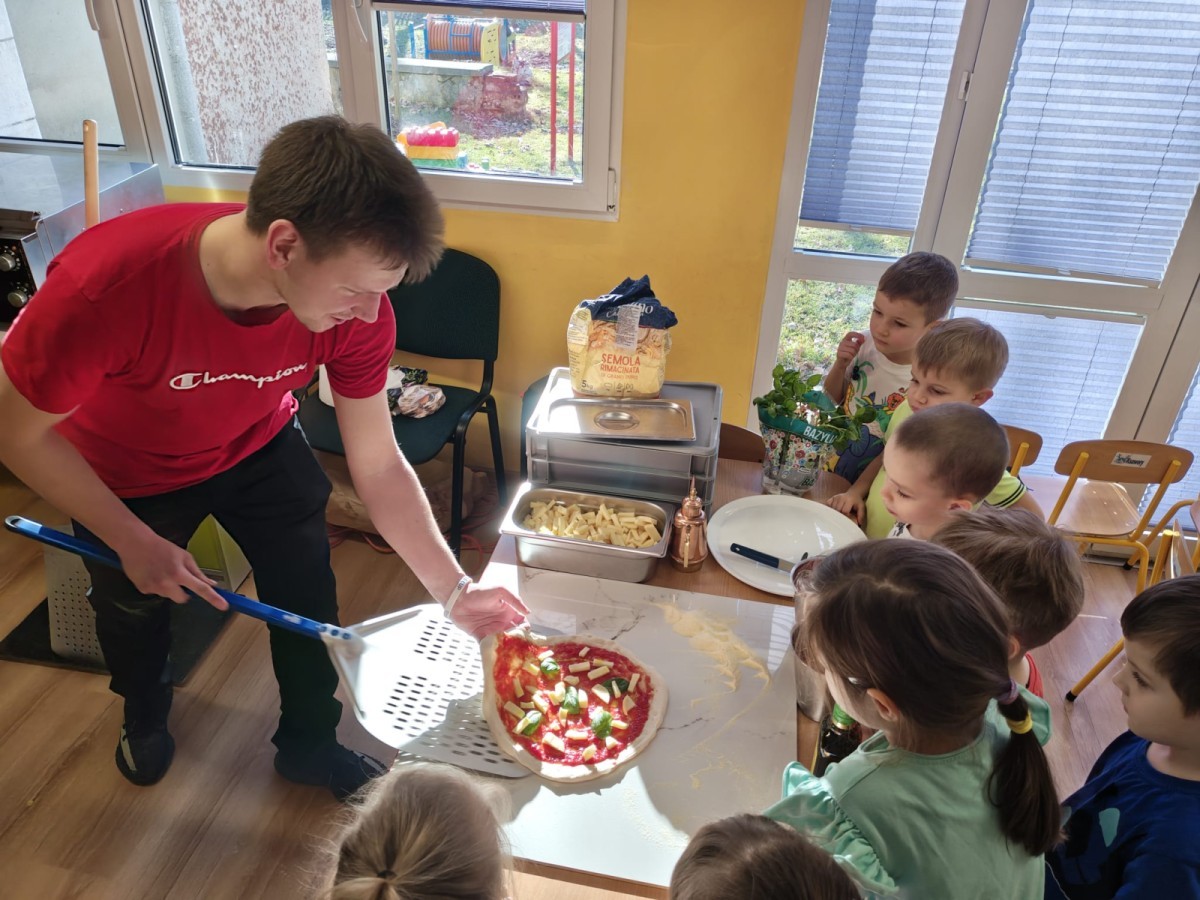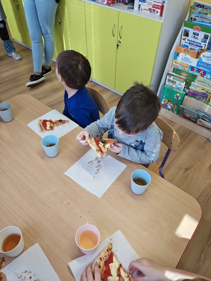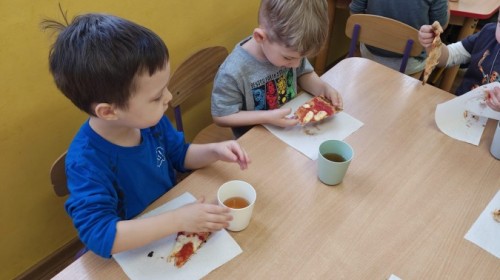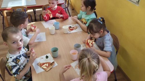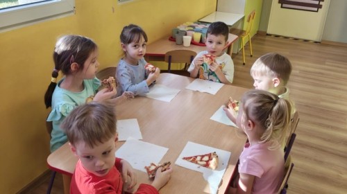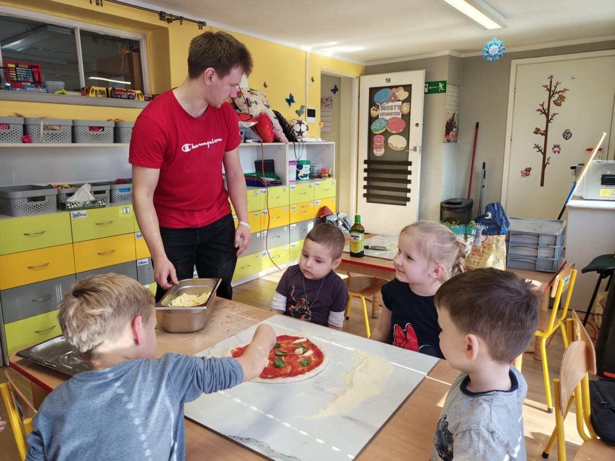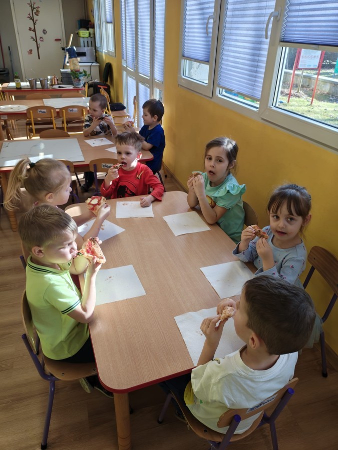W tym tygodniu w naszym przedszkolu zapachniało słoneczną Italią! Zamiast zwykłych zajęć, dzieci wcieliły się w role małych kucharzy. Dowiedziały się, skąd pochodzi pizza i jakie składniki są niezbędne do jej przygotowania. Największą radość sprawiło jednak samodzielne tworzenie własnej pizzy! Na koniec przedszkolaki z wielkim apetytem zajadały się swoimi wypiekami, zgodnie uznając, że własnoręcznie zrobiona pizza smakuje najlepiej na świecie!