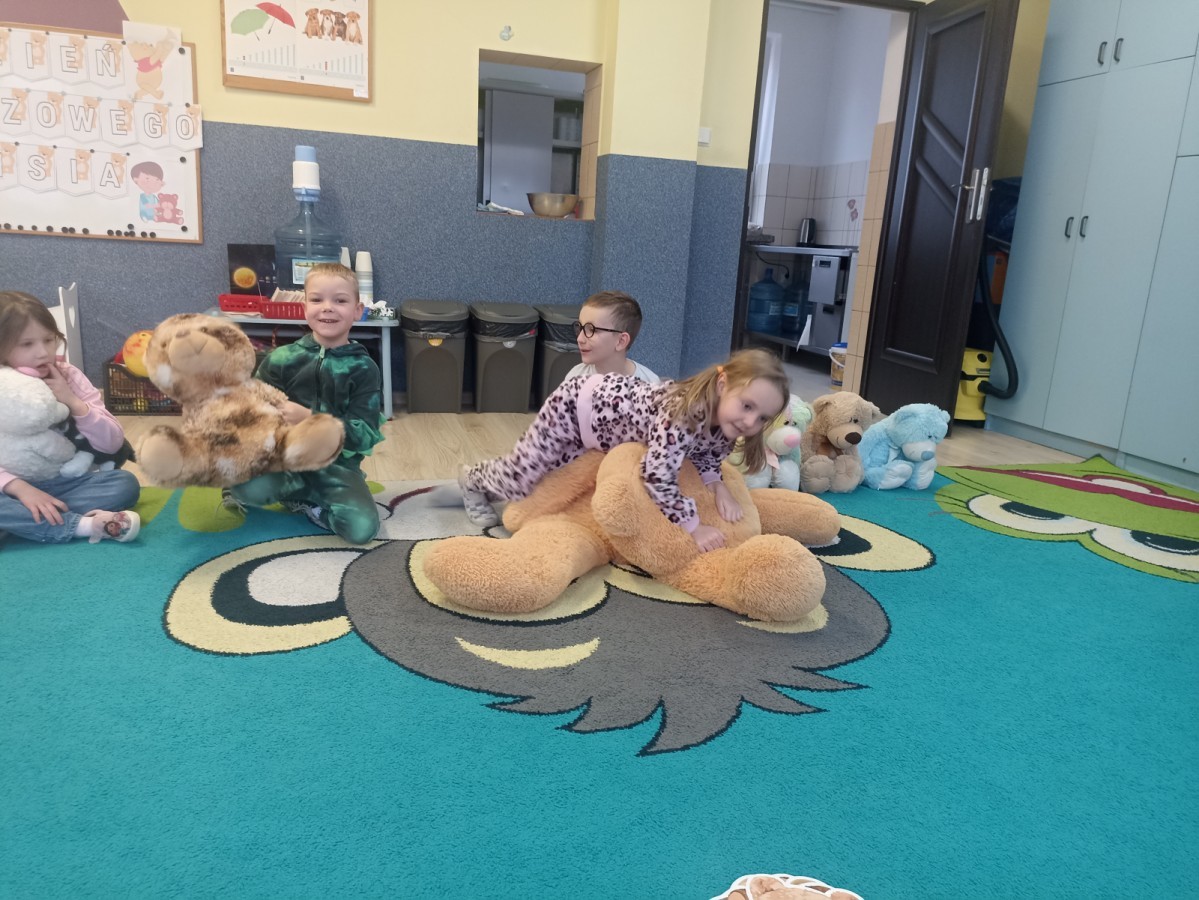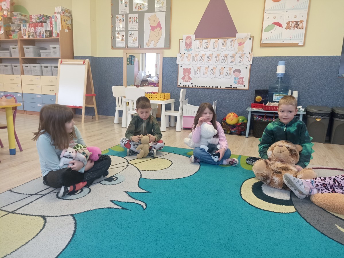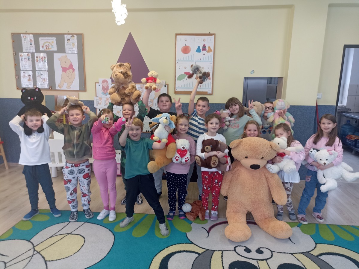 Nasza grupa uczestniczyła w obchodach Światowego Dnia Pluszowego Misia. Dzieci przyniosły do przedszkola swoich pluszowych ulubieńców, na których czekały nie lada atrakcje. Dzieci zostały zaproszone do wspólnej zabawy z nimi, tańczyły do znanych, misiowych przebojów oraz poznały historię ich święta. Przedszkolaki wykonały również kreatywne prace plastyczne z misiami w roli głównej. Ten wyjątkowy dzień był pełen uśmiechu i świetnej zabawy.