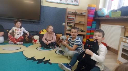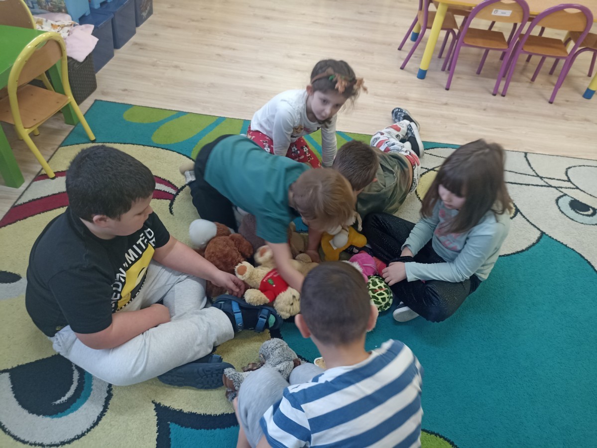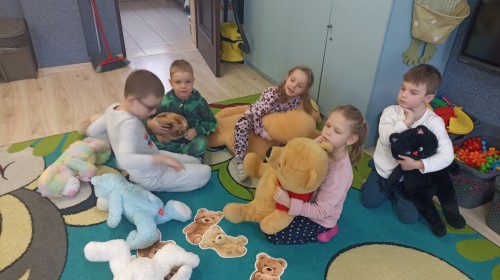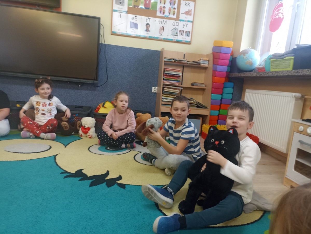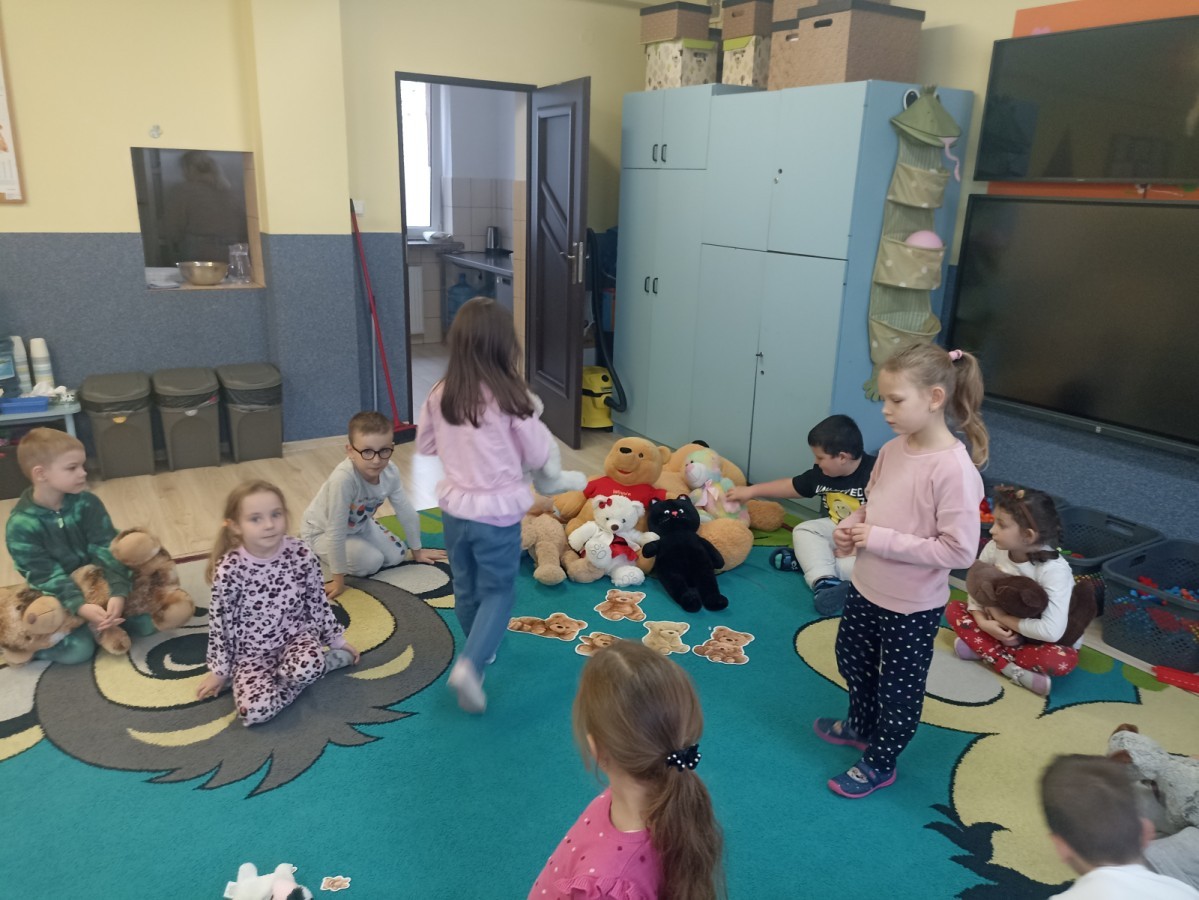 Nasza grupa uczestniczyła w obchodach Światowego Dnia Pluszowego Misia. Dzieci przyniosły do przedszkola swoich pluszowych ulubieńców, na których czekały nie lada atrakcje. Dzieci zostały zaproszone do wspólnej zabawy z nimi, tańczyły do znanych, misiowych przebojów oraz poznały historię ich święta. Przedszkolaki wykonały również kreatywne prace plastyczne z misiami w roli głównej. Ten wyjątkowy dzień był pełen uśmiechu i świetnej zabawy.