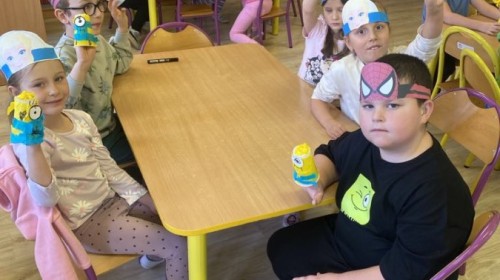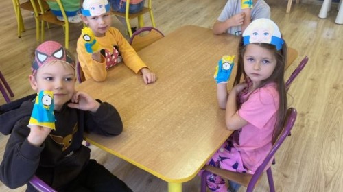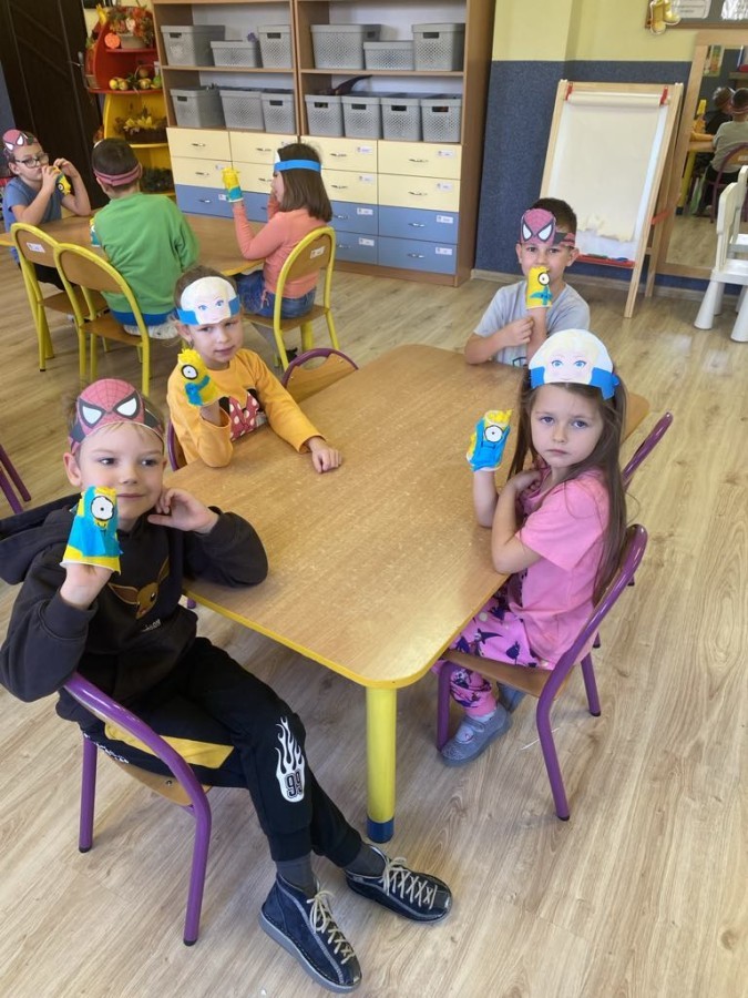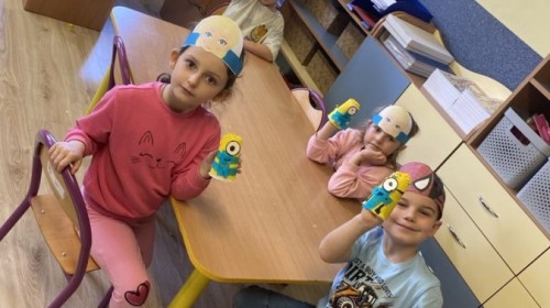 5 Listopada w grupie Sówek obchodziliśmy Dzień Postaci z Bajek - ćwiczyliśmy z Kubusiem Puchatkiem, dzięki latarce odkrywaliśmy jakie postacie kryją się pod książką oraz stworzyliśmy swoje Minionki :)