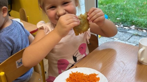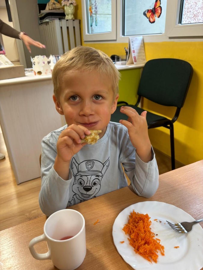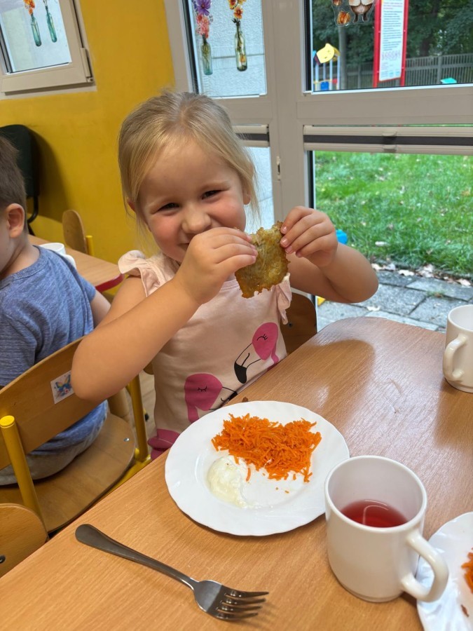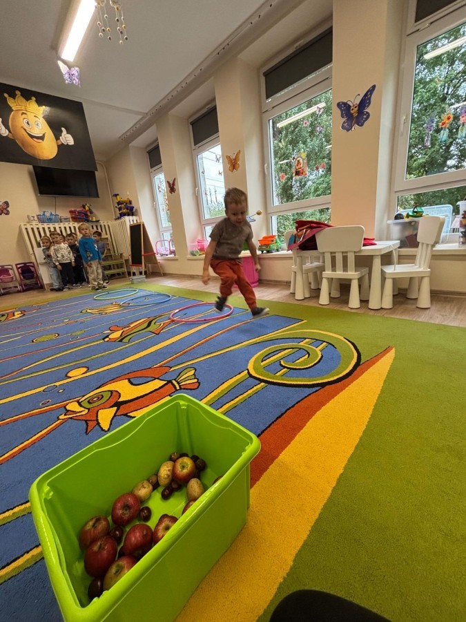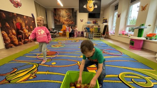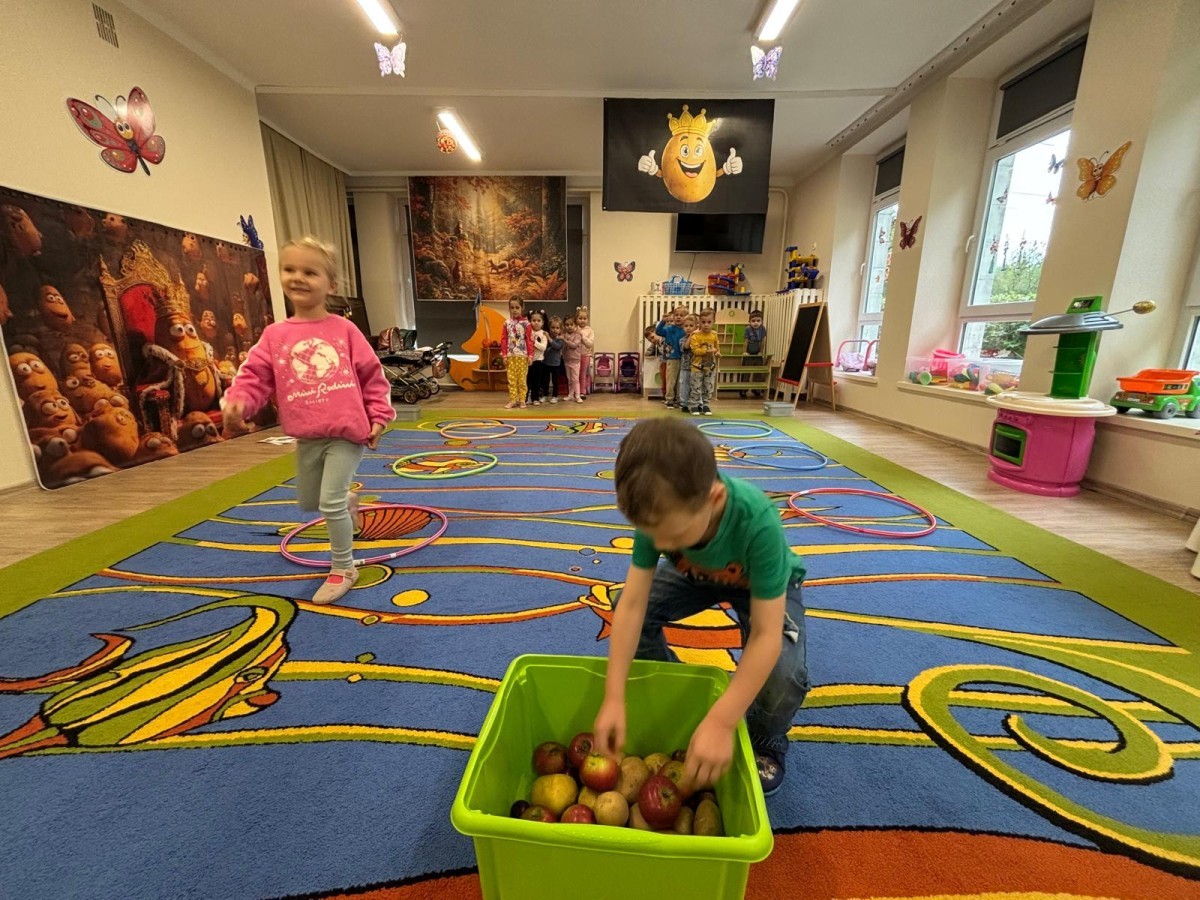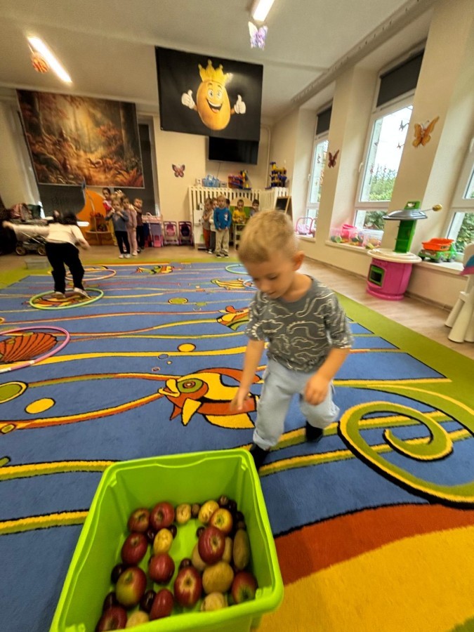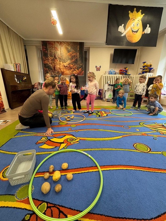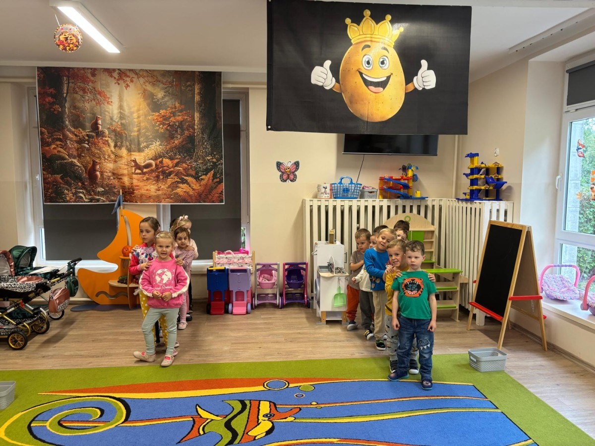 Z okazji tego święta poznaliśmy historię ziemniaka oraz jego znaczenie w codziennej diecie. Dzieci dzieliły się wiedzą na temat potraw z wykorzystaniem ziemniaków oraz rozważały ich walory smakowe i odżywcze. Ten dzień umiliły przedszkolakom różne gry i zabawy z udziałem tego warzywa. Były wyścigi i zawody z ziemniakami, układanie puzzli, wspólny śpiew a na obiad placki ziemniaczane, które specjalnie dla przedszkolaków przygotowały Pani Marta i Agnieszka.