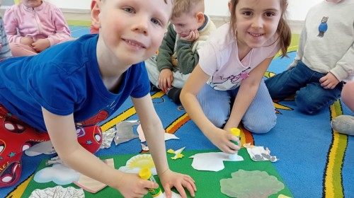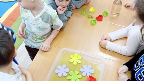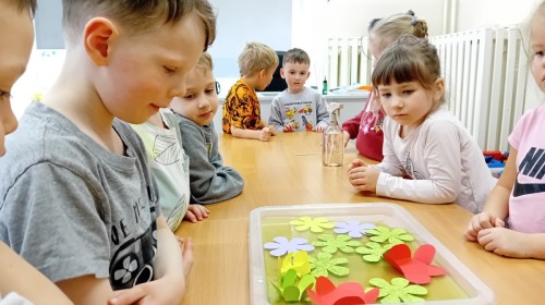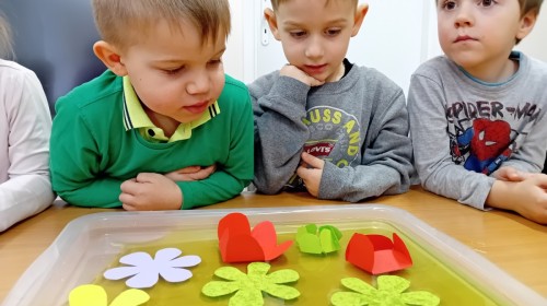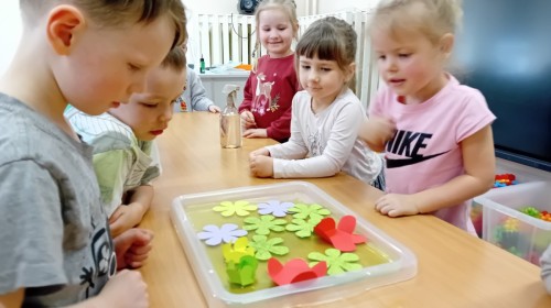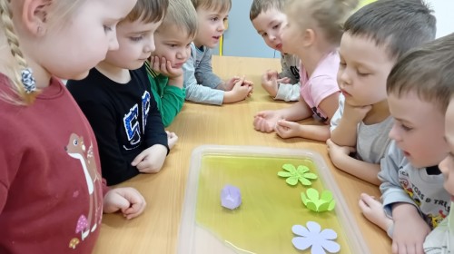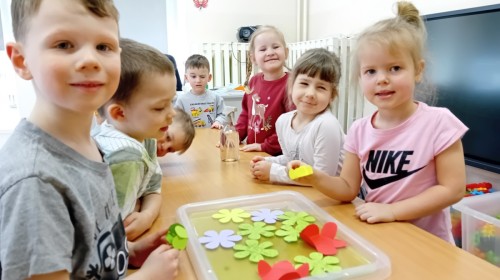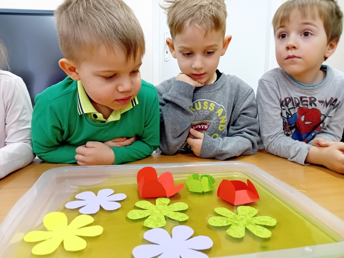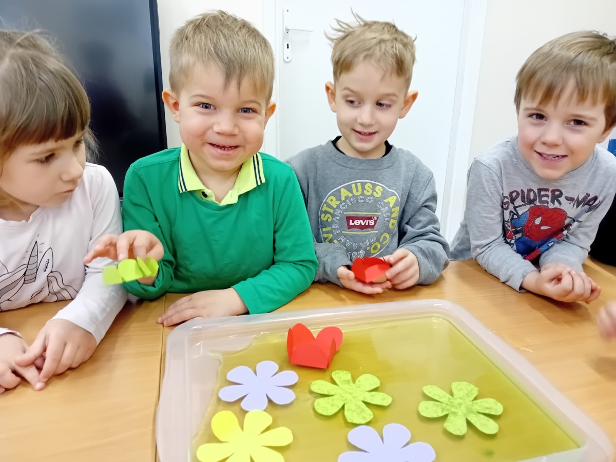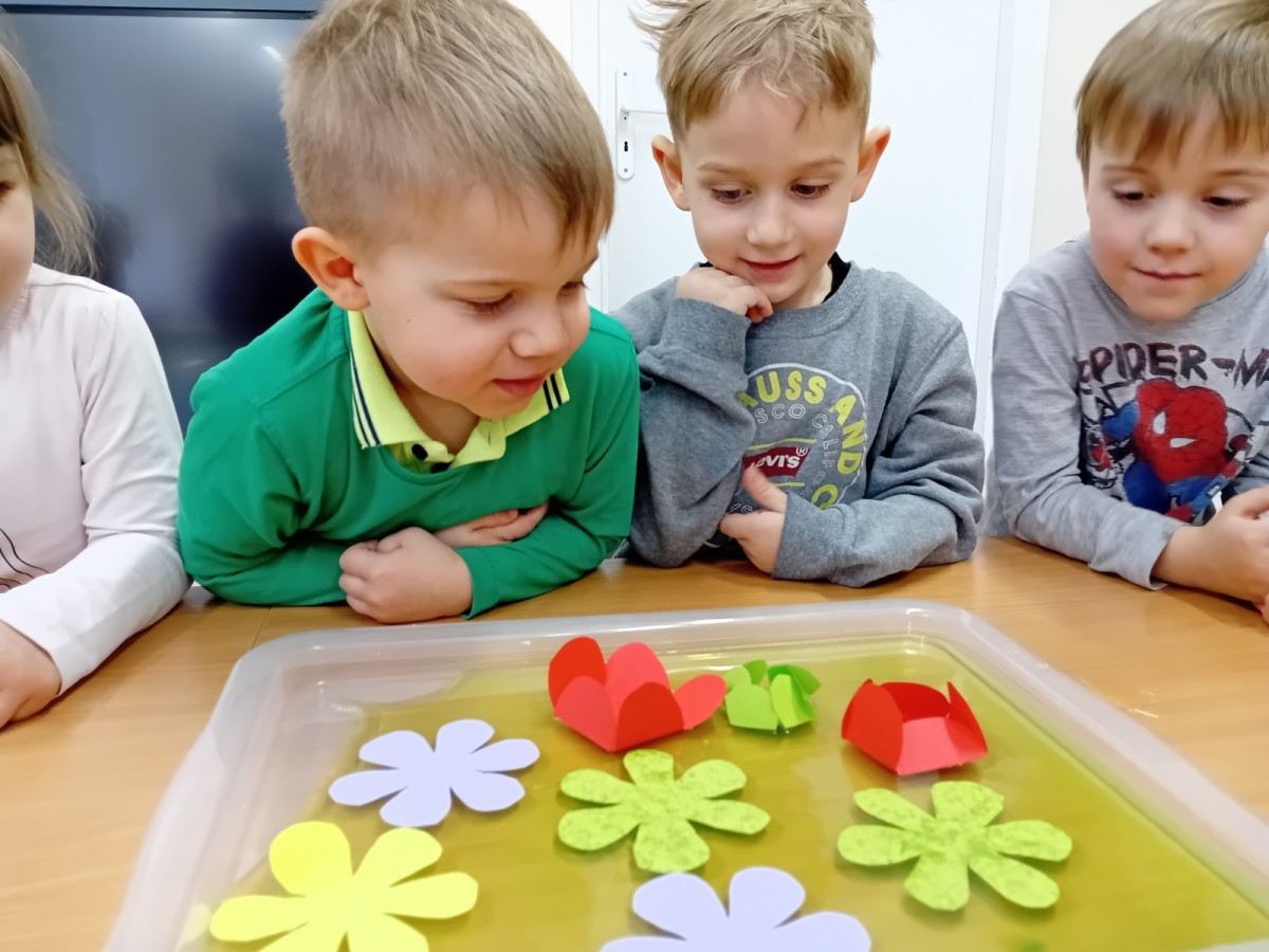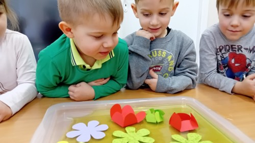 Czekając na nadejście wiosny, przeprowadziliśmy ciekawy eksperyment z rozwijającymi się papierowymi kwiatkami. Obserwowanie ich „rozkwitu” sprawiło nam wiele radości i wprowadziło nas w wiosenny nastrój! 🌸