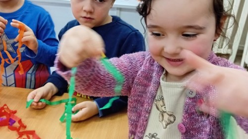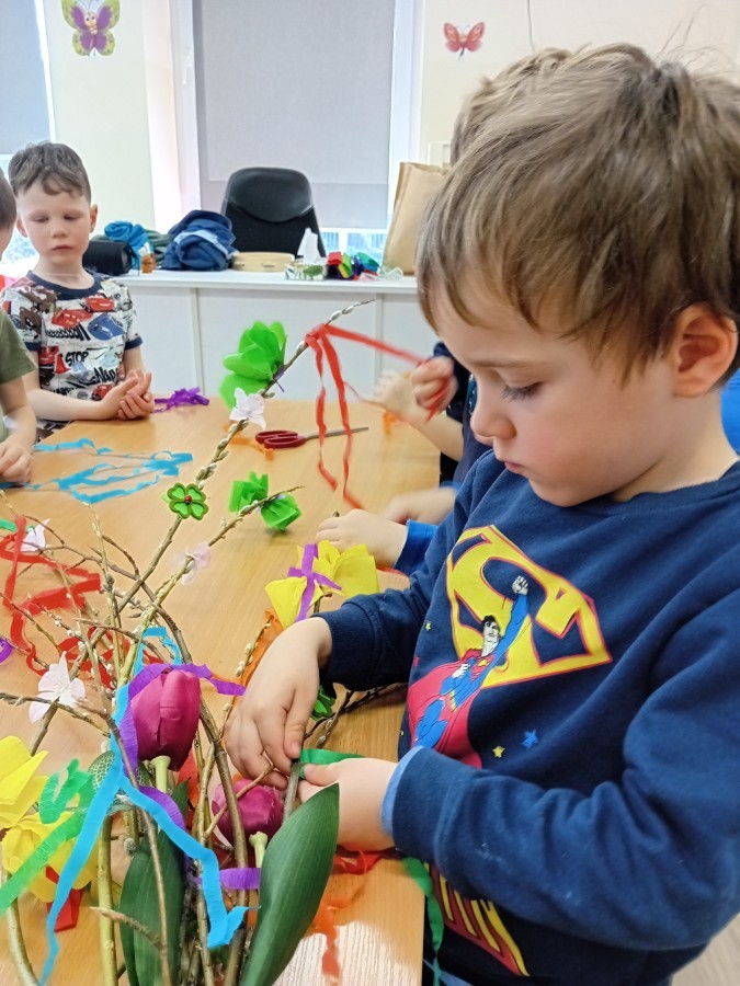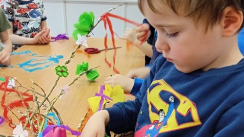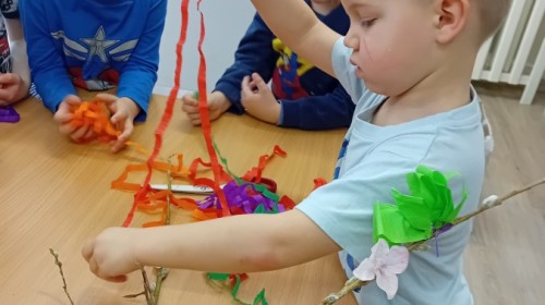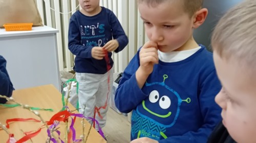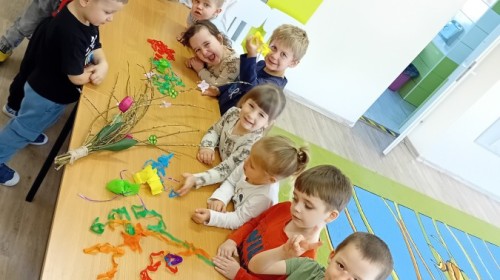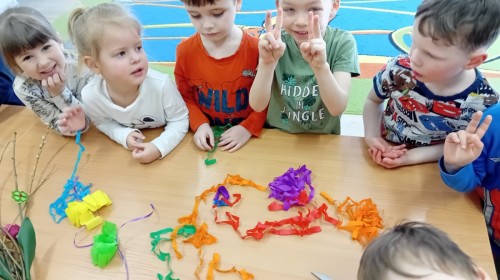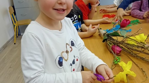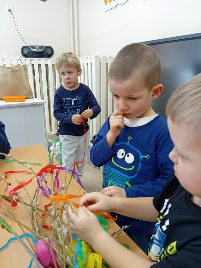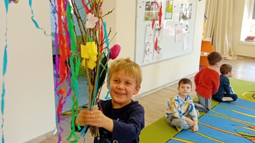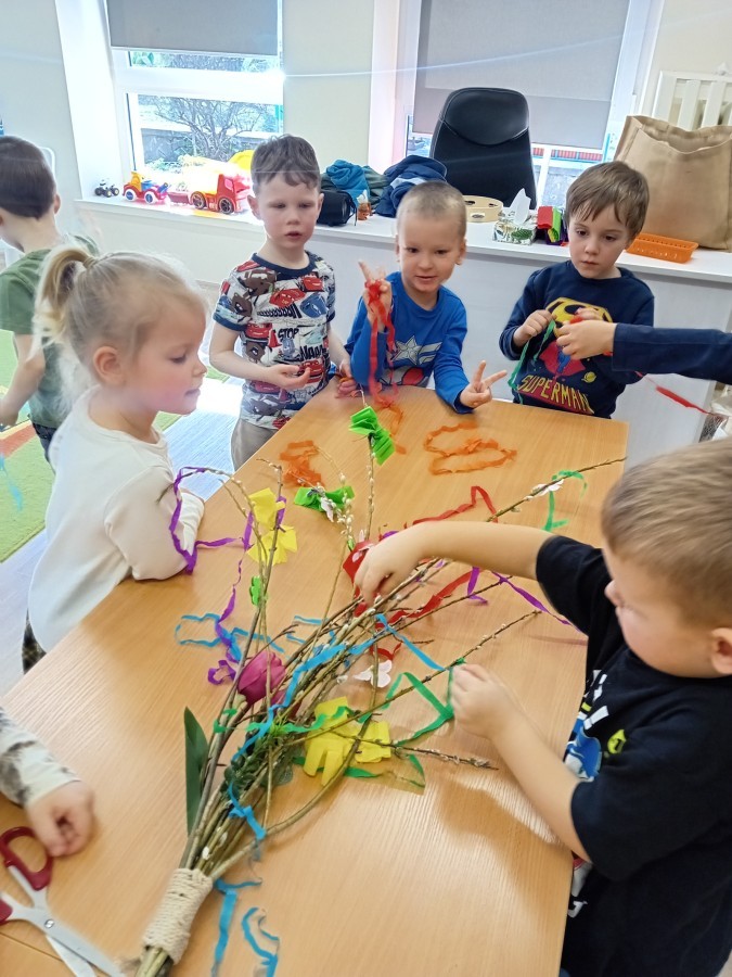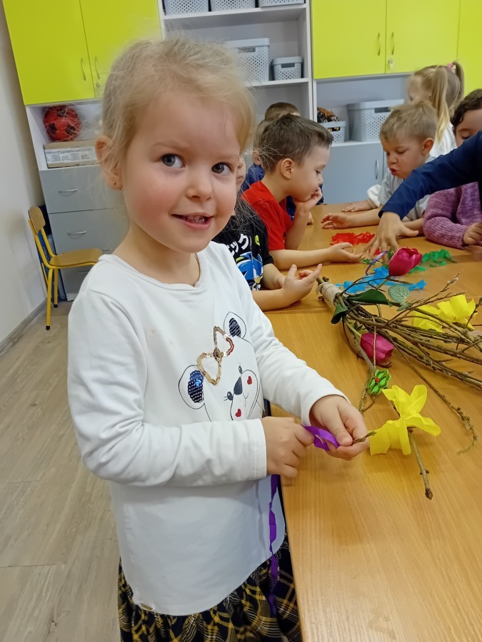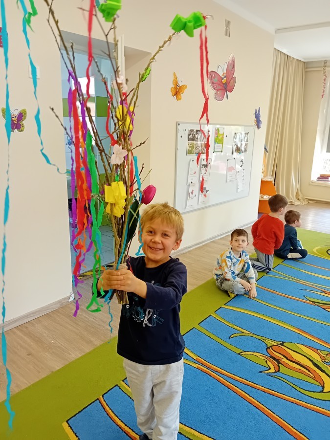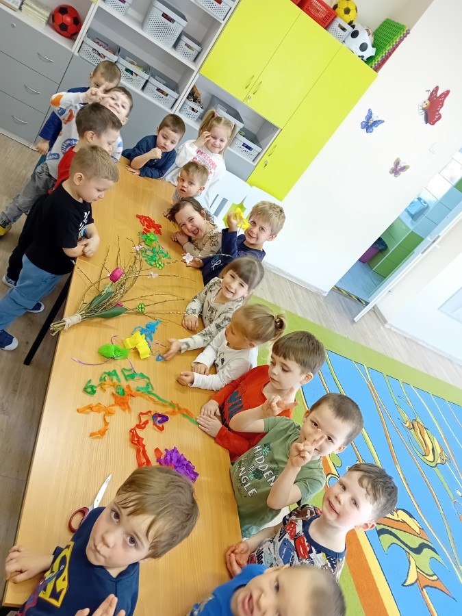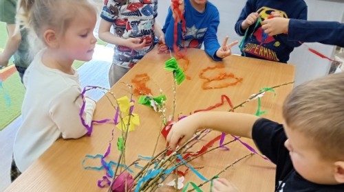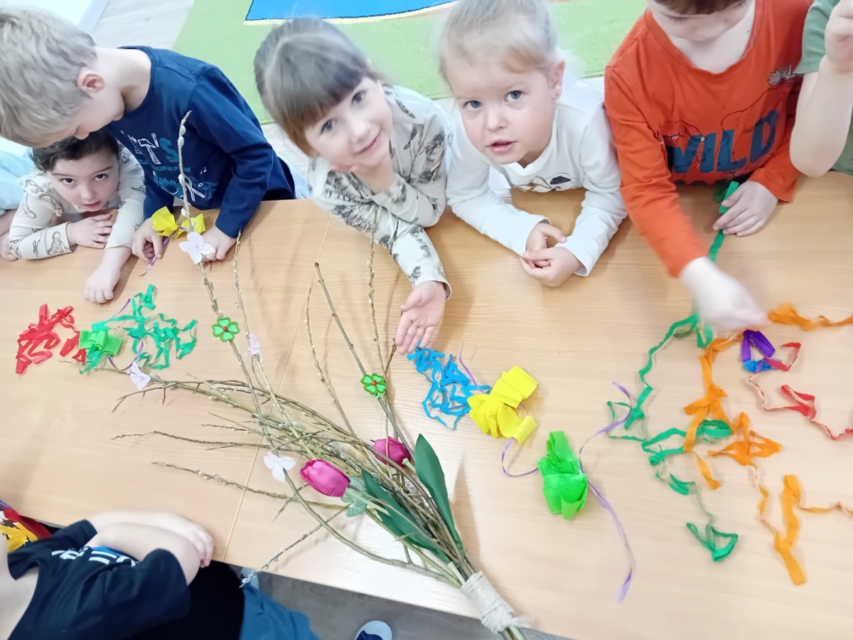 Dziś w naszym przedszkolu zrobiło się kolorowo i gwarno – oficjalnie powitaliśmy upragnioną wiosnę! Zaczęliśmy od kreatywnych warsztatów, podczas których dzieci własnoręcznie przygotowały tradycyjny gaik wiosenny. Nasze drzewko ozdobiły barwne wstążki, kwiaty i symbole budzącej się przyrody.