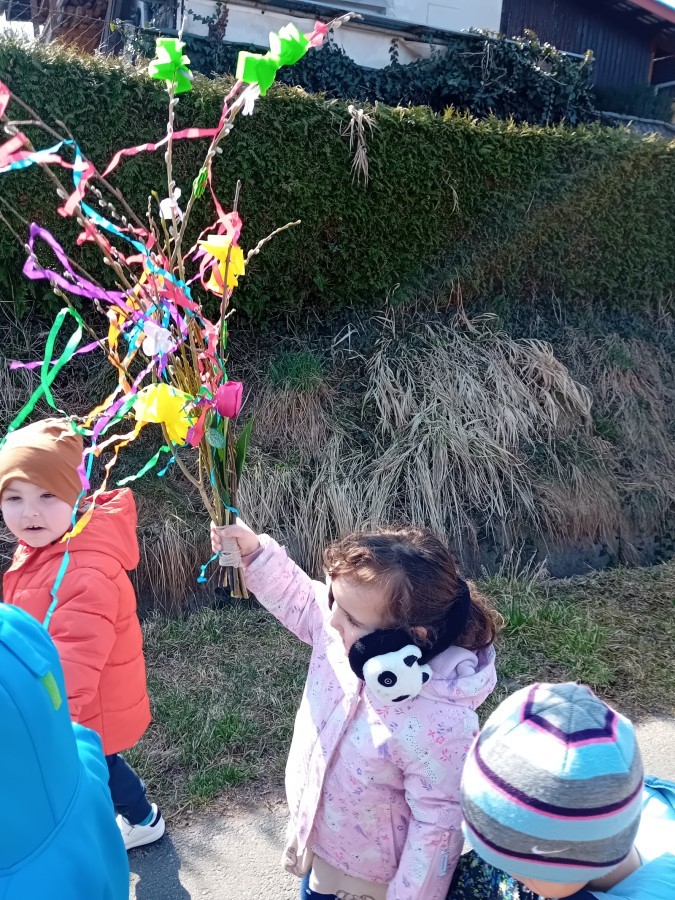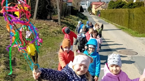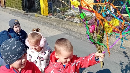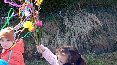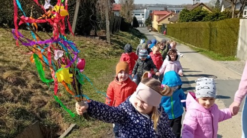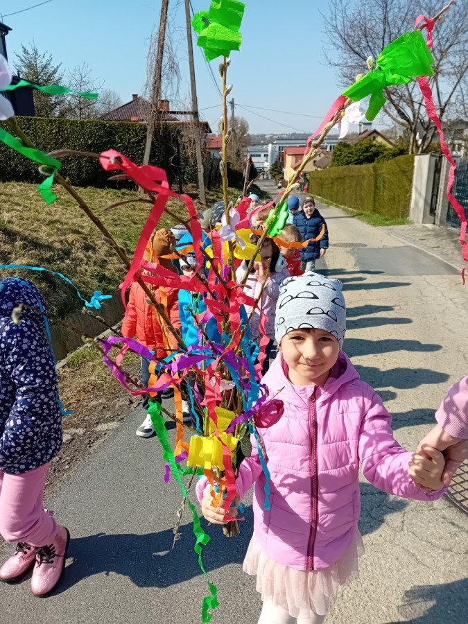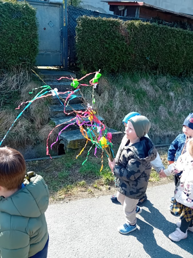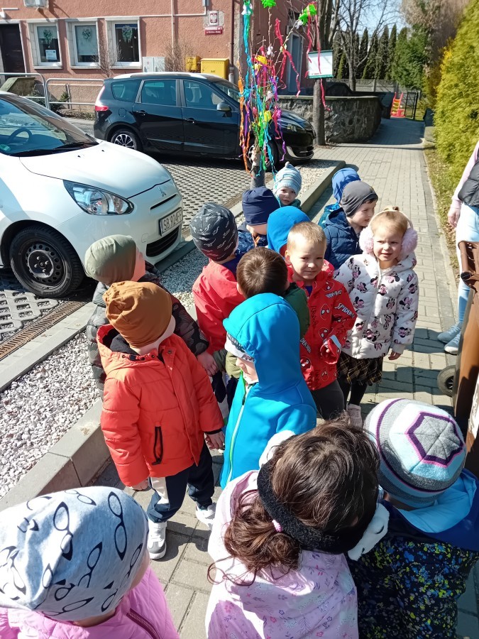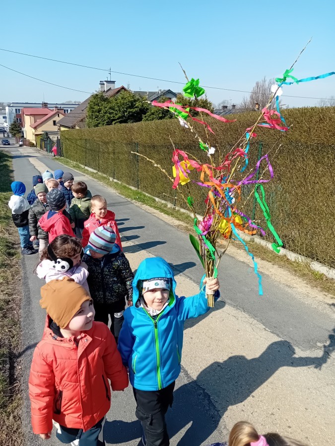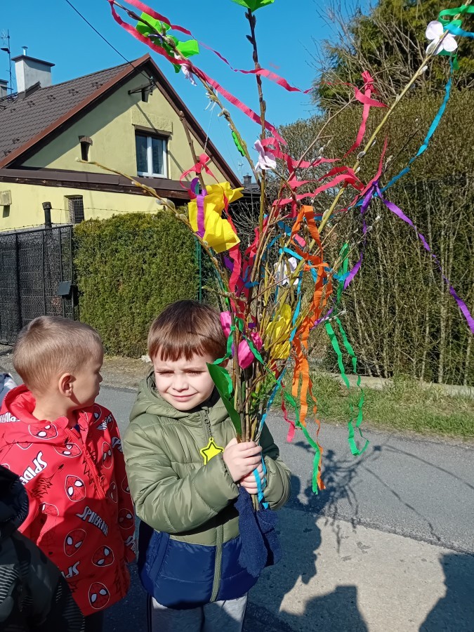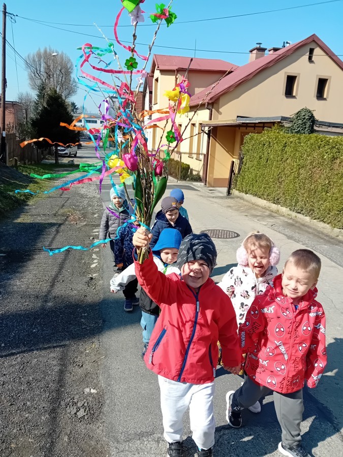 Z taką „magiczną różdżką” ruszyliśmy na wiosenny spacer po okolicy. Głośnym śpiewem i radosnymi okrzykami skutecznie odganialiśmy ostatnie powiewy zimy, zapraszając słońce do wspólnej zabawy. Małe nóżki dzielnie przemierzały pobliskie uliczki, a uśmiechy nie schodziły z twarzy naszych przedszkolaków.