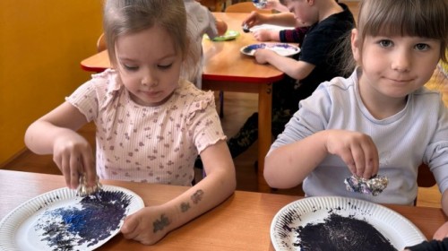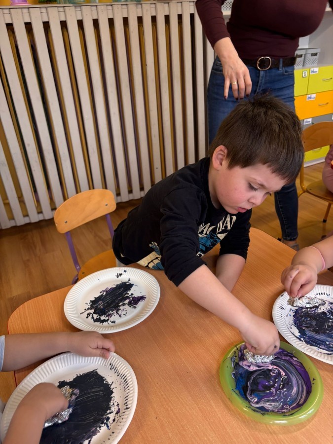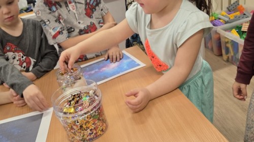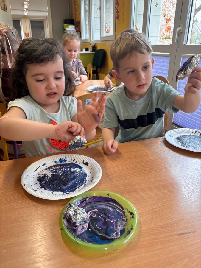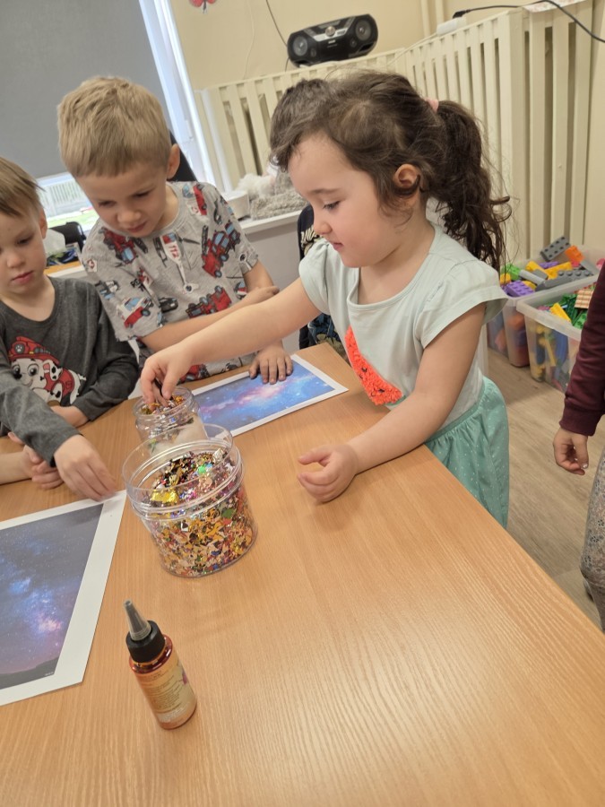 🎨 Prace plastyczne „Galaktyka” – pełne brokatu i gwiezdnego pyłu.