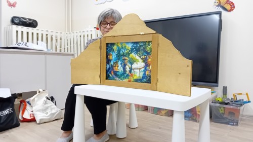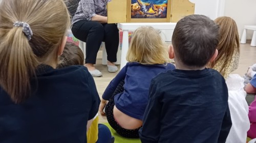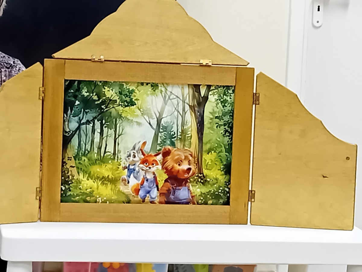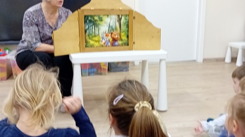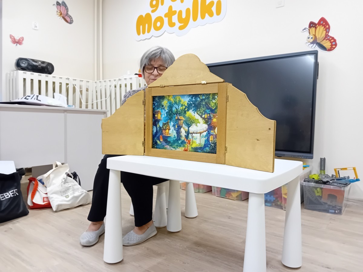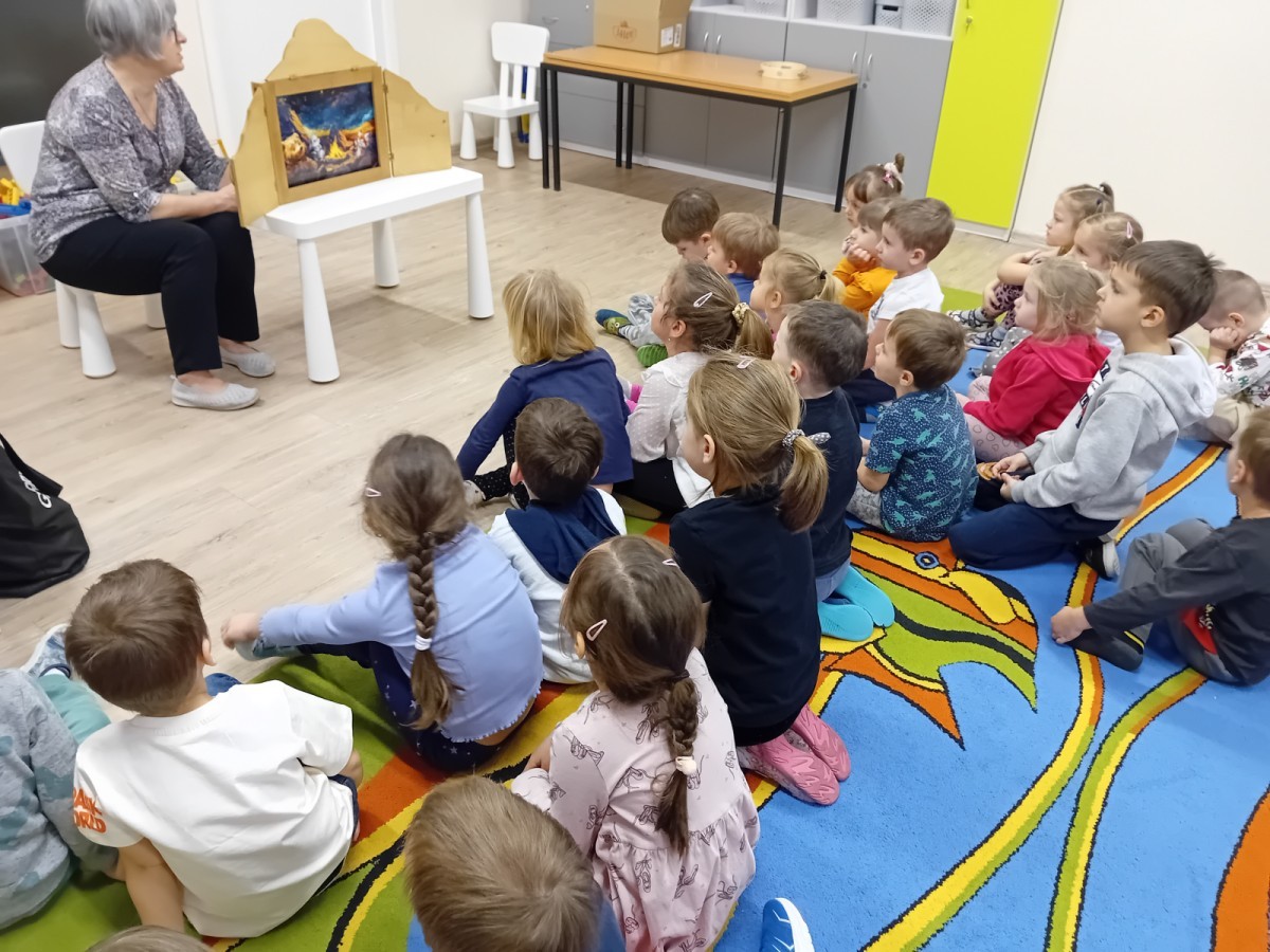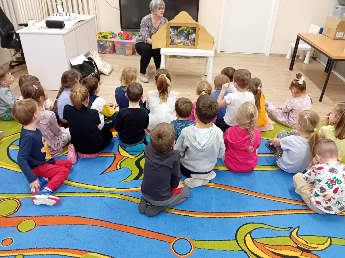 Dzisiaj nasze przedszkole zamieniło się w małą salę teatralną! Odwiedziła nas Pani z biblioteki, która przywiozła ze sobą niezwykły drewniany teatrzyk Kamishibai.
