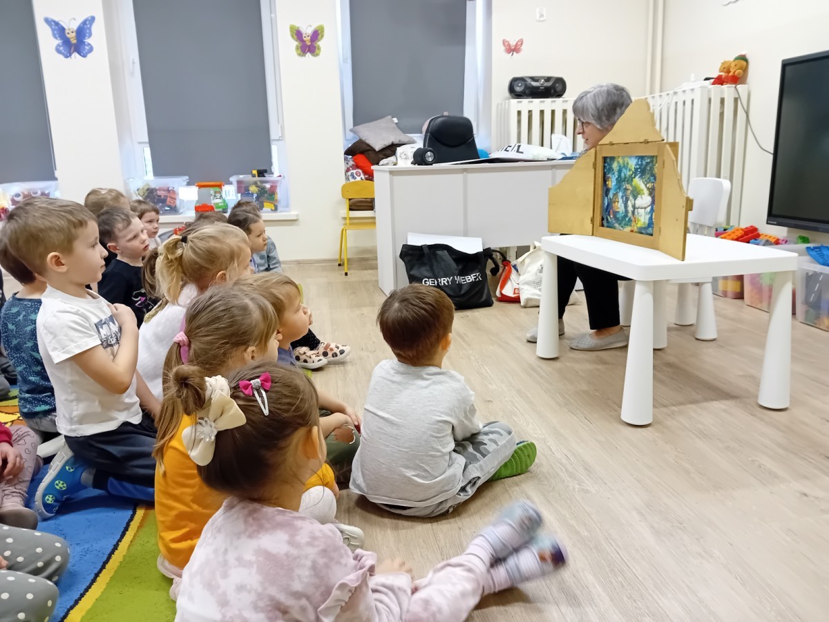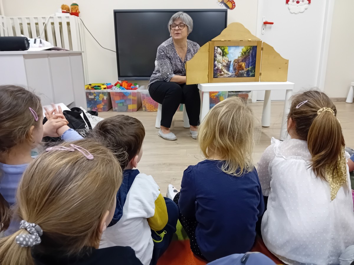 Magia teatru w naszym przedszkolu: Wizyta Pani Bibliotekarki!