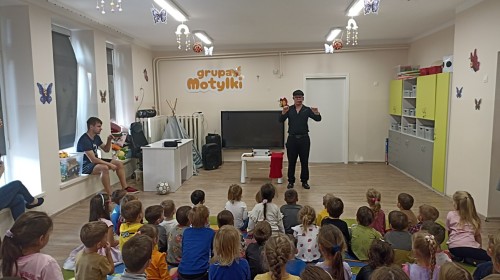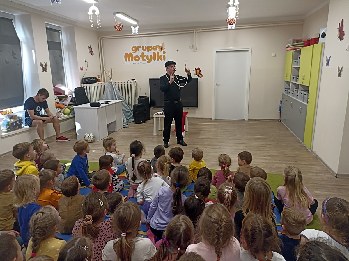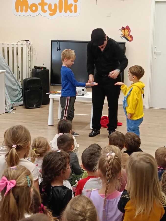 Dziś w przedszkolu gościliśmy iluzjonistę, który zapewnił dzieciom niezapomniane chwile pełne śmiechu i zaskoczenia. Było to wspaniałe widowisko znikających kart, łączenia się sznurków i czarodziejsko pojawiających się kolorowanek. Dzieci aktywnie brały udział w sztuczkach, rozwijając swoją wyobraźnię. Prosimy pytać je o magiczne wspomnienia!