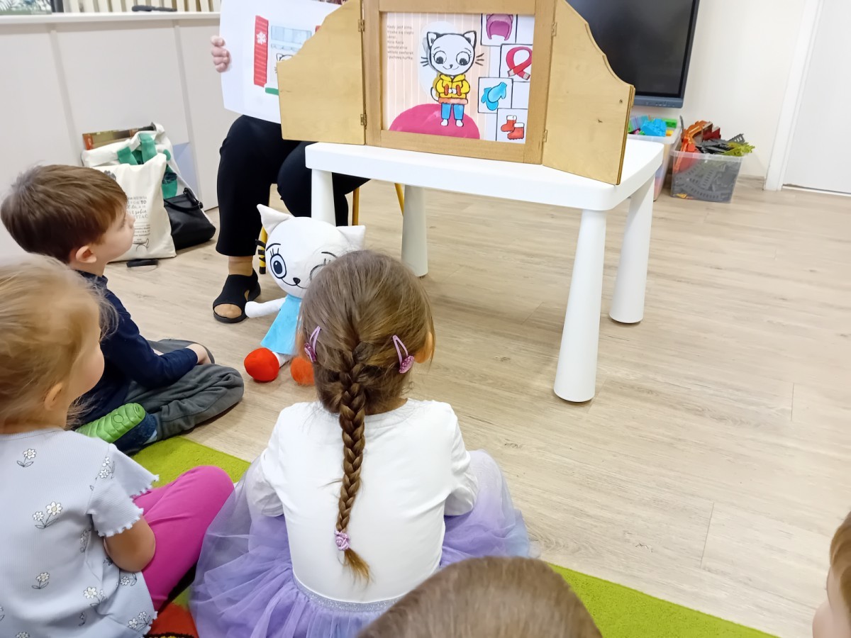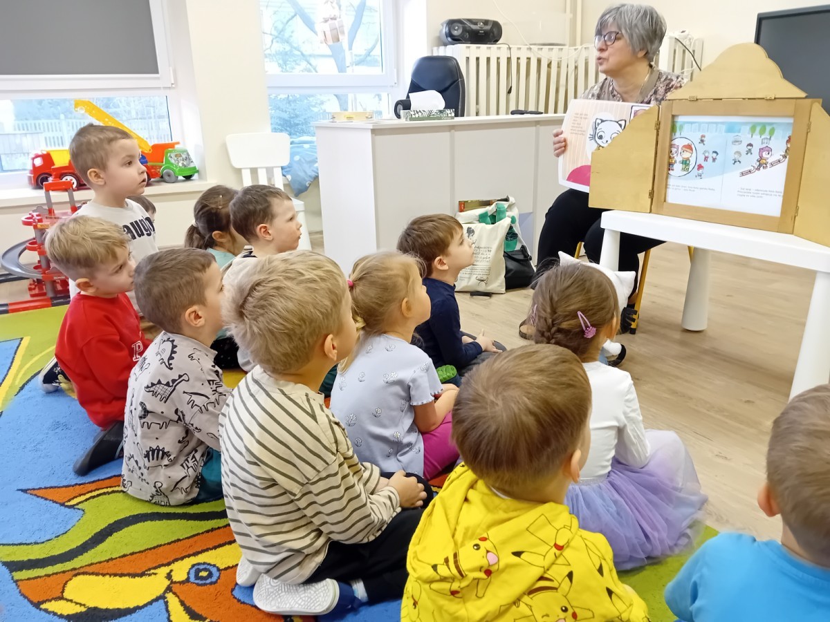 Dzisiaj Nasze przedszkole odwiedził wyjątkowy gość – Pani z Biblioteki, która zabrała nas w podróż do świata wyobraźni za pomocą teatrzyku. Ta sztuka opowiadania bajek za każdym razem budzi w naszej grupie ogromne emocje – dzieci wręcz uwielbiają tę formę teatru! Drewniana skrzynka i przesuwane barwne ilustracje tworzą niepowtarzalny klimat, który w pełni angażuje uwagę naszych małych widzów.