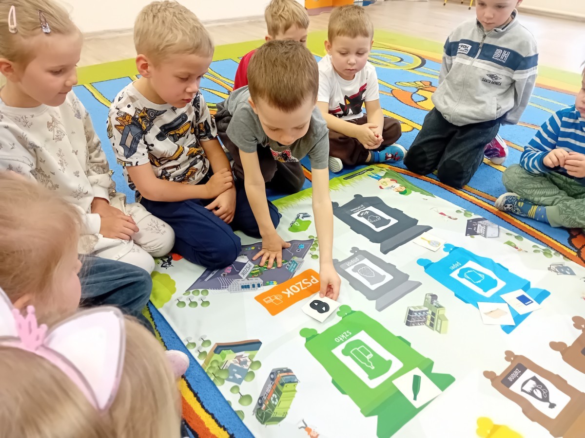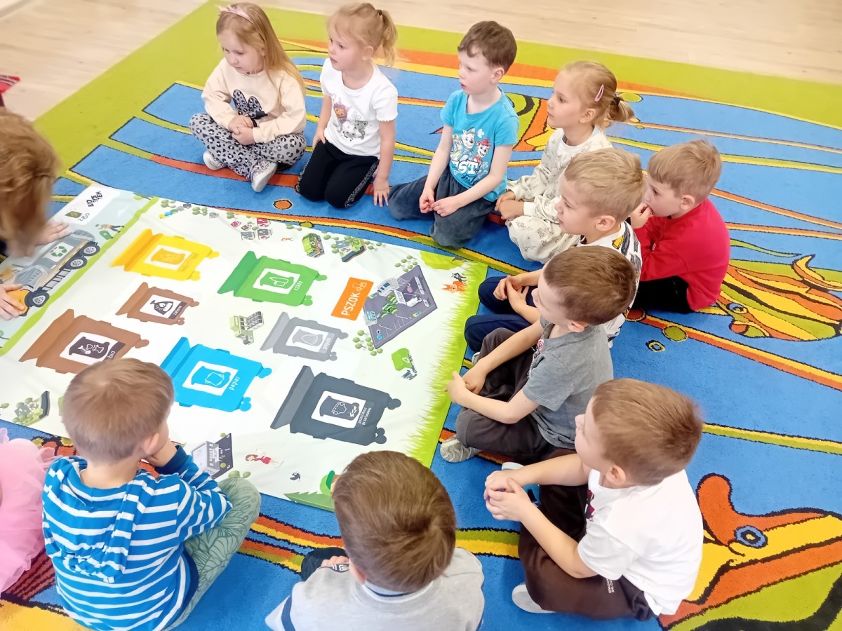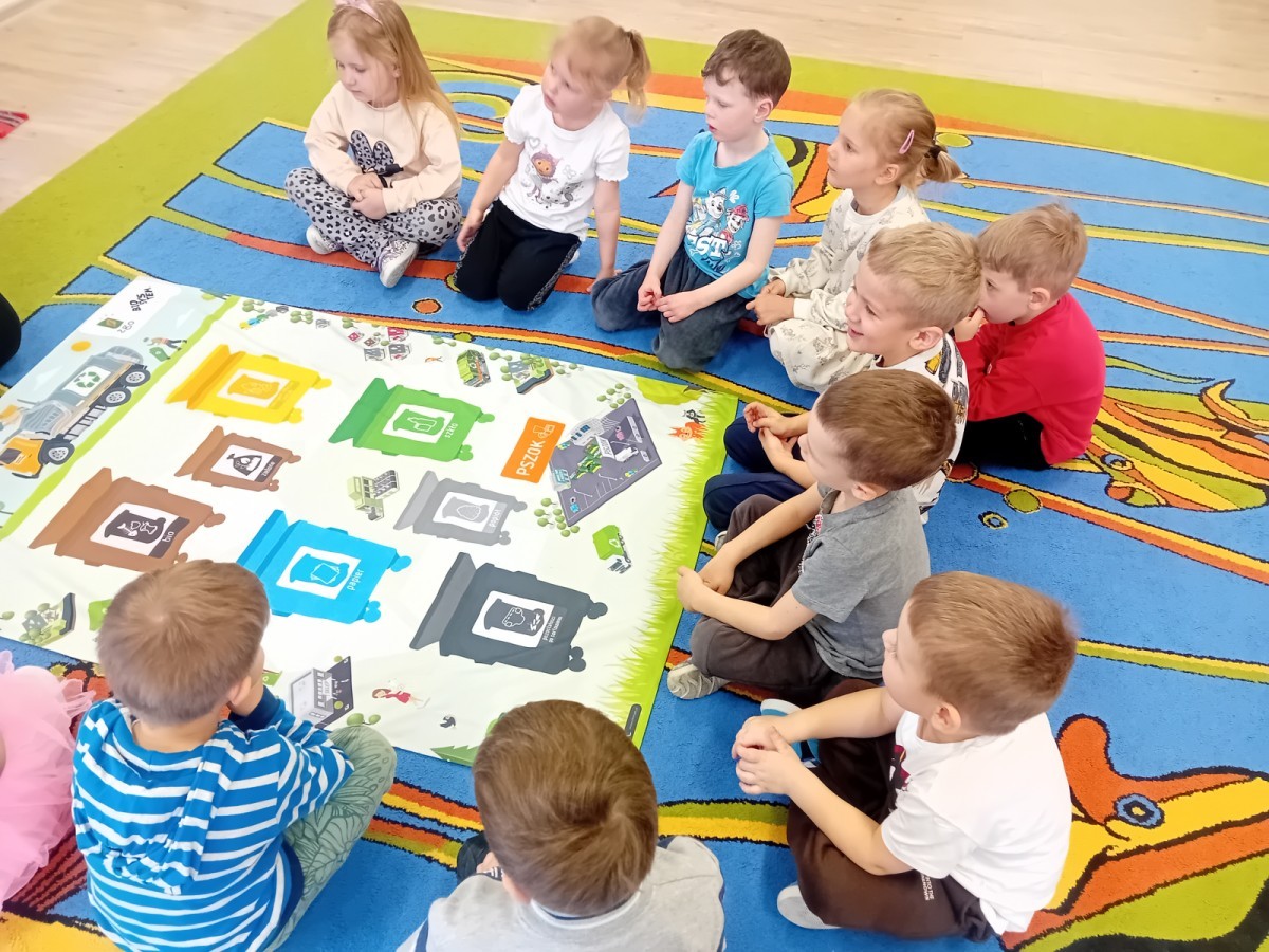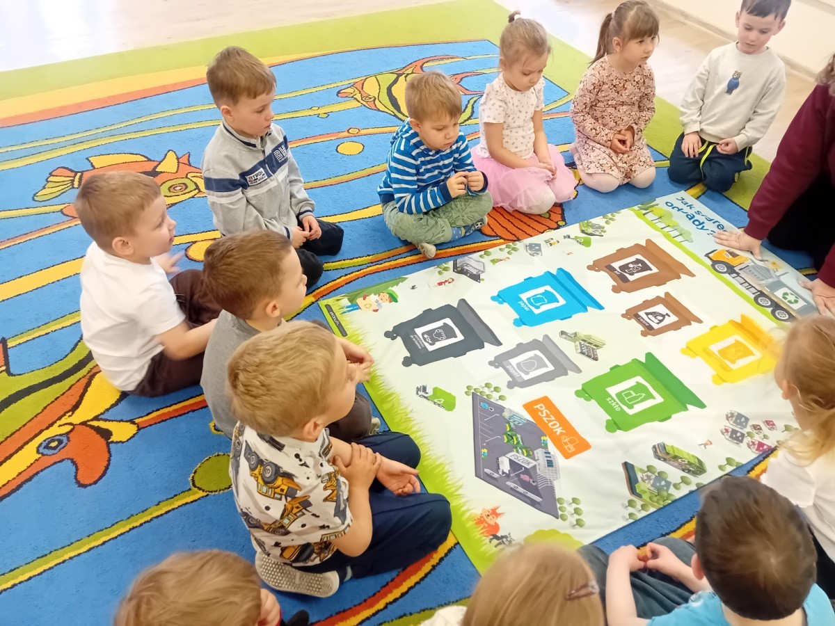 Dzisiaj w naszym przedszkolu gościliśmy wyjątkową panią z Punktu Selektywnego Zbierania Odpadów Komunalnych (PSZOK). Podczas wspólnych warsztatów nasze przedszkolaki dowiedziały się, że śmieci to nie tylko „odpady”, ale często cenne surowce! Dzieci uczyły się, do którego kosza wrzucić karton po soku, a gdzie powinna trafić stara zabawka. Pani z PSZOK wyjaśniła nam również, co dzieje się z rzeczami, które zawozimy do „domu dla odpadów”. Teraz już każdy maluch wie, jak dbać o naszą planetę!