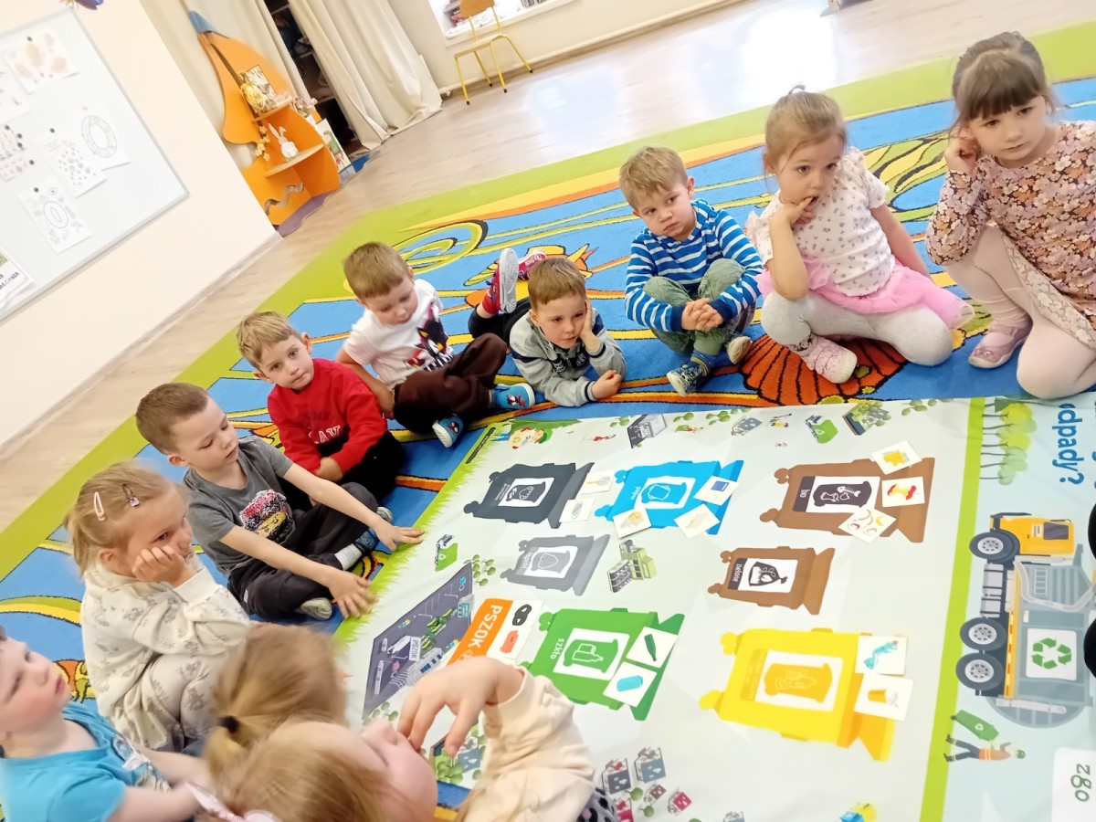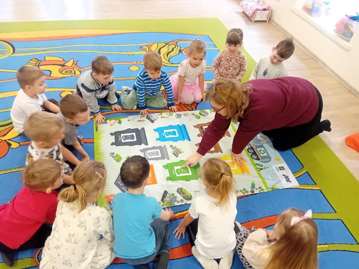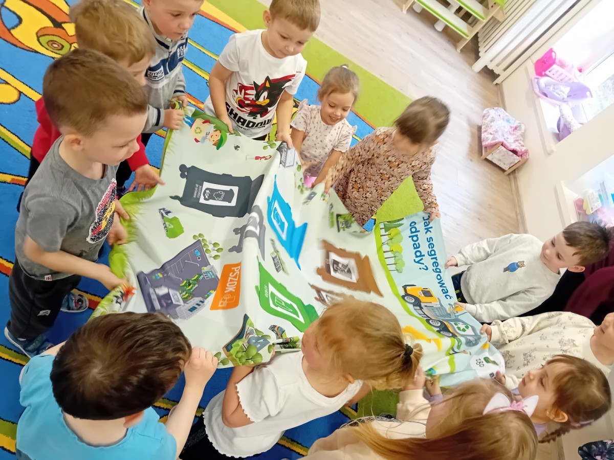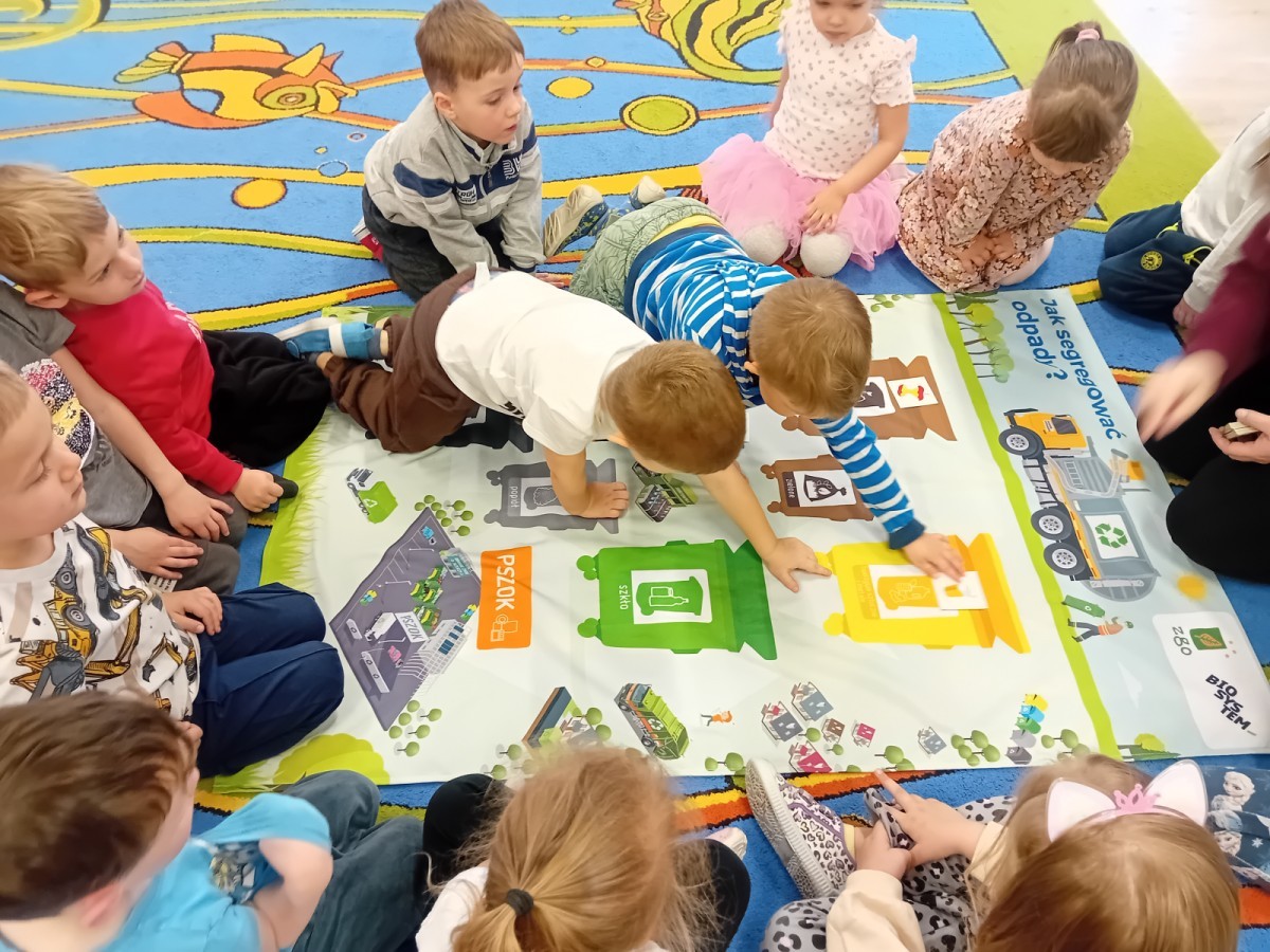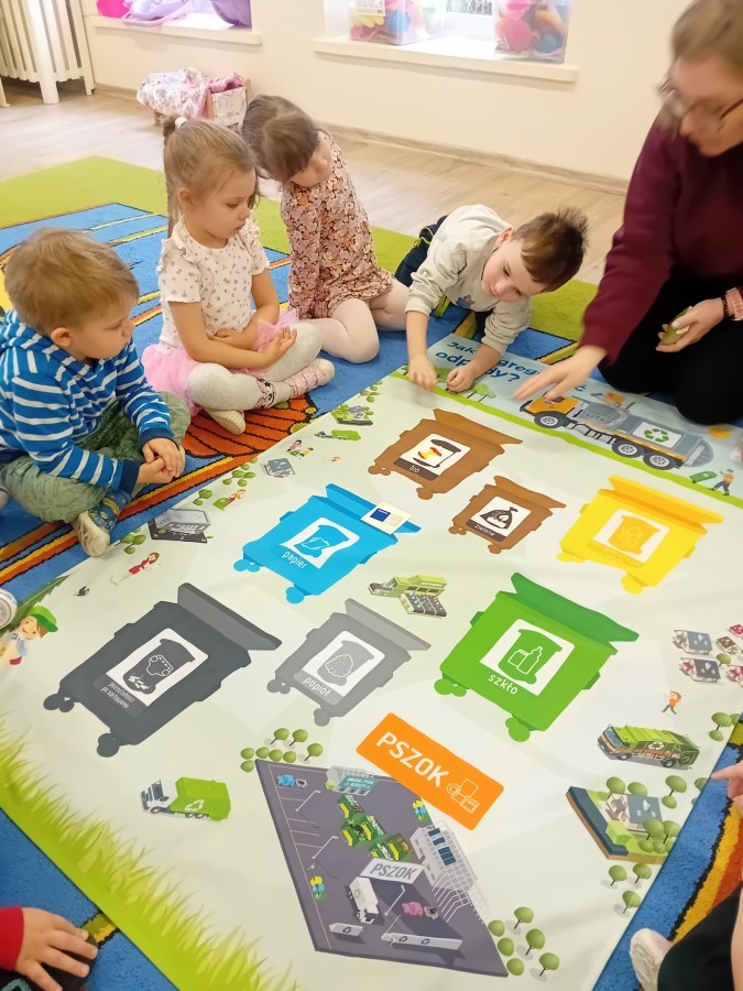 Dzisiaj w naszym przedszkolu gościliśmy wyjątkową panią z Punktu Selektywnego Zbierania Odpadów Komunalnych (PSZOK). Podczas wspólnych warsztatów nasze przedszkolaki dowiedziały się, że śmieci to nie tylko „odpady”, ale często cenne surowce! Dzieci uczyły się, do którego kosza wrzucić karton po soku, a gdzie powinna trafić stara zabawka. Pani z PSZOK wyjaśniła nam również, co dzieje się z rzeczami, które zawozimy do „domu dla odpadów”. Teraz już każdy maluch wie, jak dbać o naszą planetę!