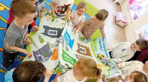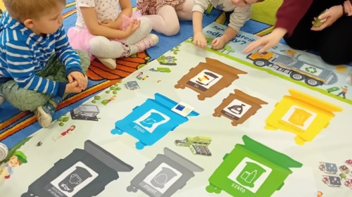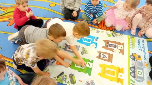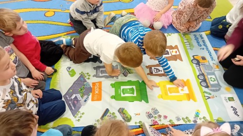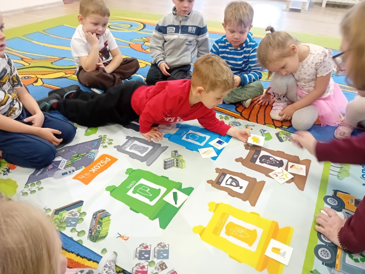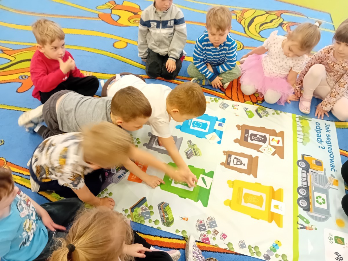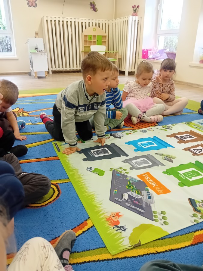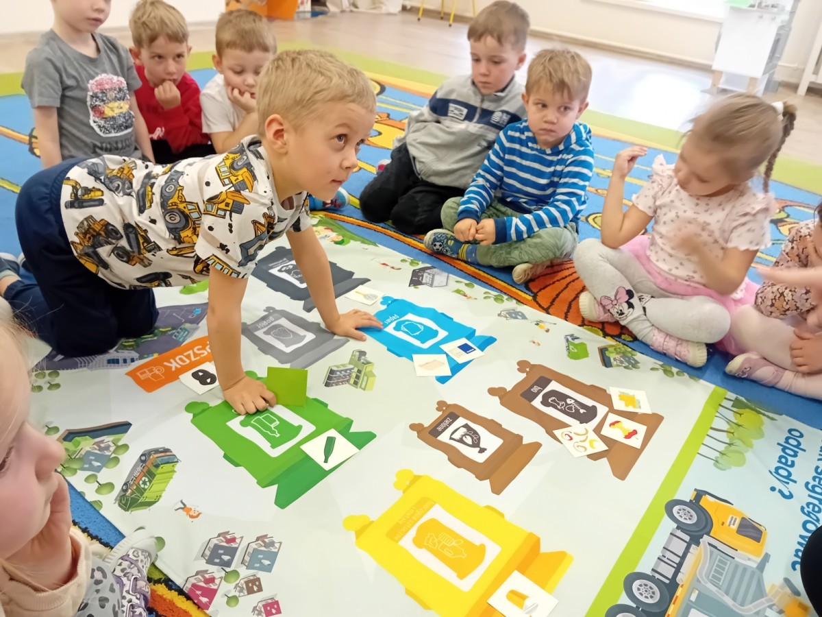 Dzisiaj w naszym przedszkolu gościliśmy wyjątkową panią z Punktu Selektywnego Zbierania Odpadów Komunalnych (PSZOK). Podczas wspólnych warsztatów nasze przedszkolaki dowiedziały się, że śmieci to nie tylko „odpady”, ale często cenne surowce! Dzieci uczyły się, do którego kosza wrzucić karton po soku, a gdzie powinna trafić stara zabawka. Pani z PSZOK wyjaśniła nam również, co dzieje się z rzeczami, które zawozimy do „domu dla odpadów”. Teraz już każdy maluch wie, jak dbać o naszą planetę!