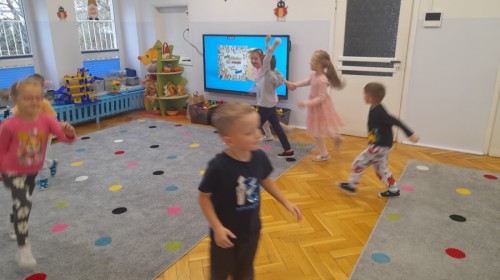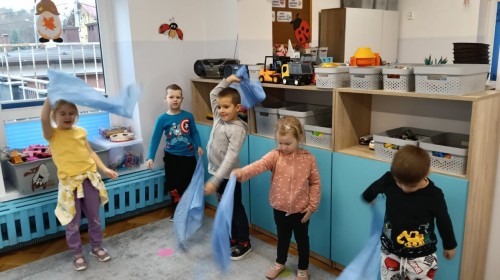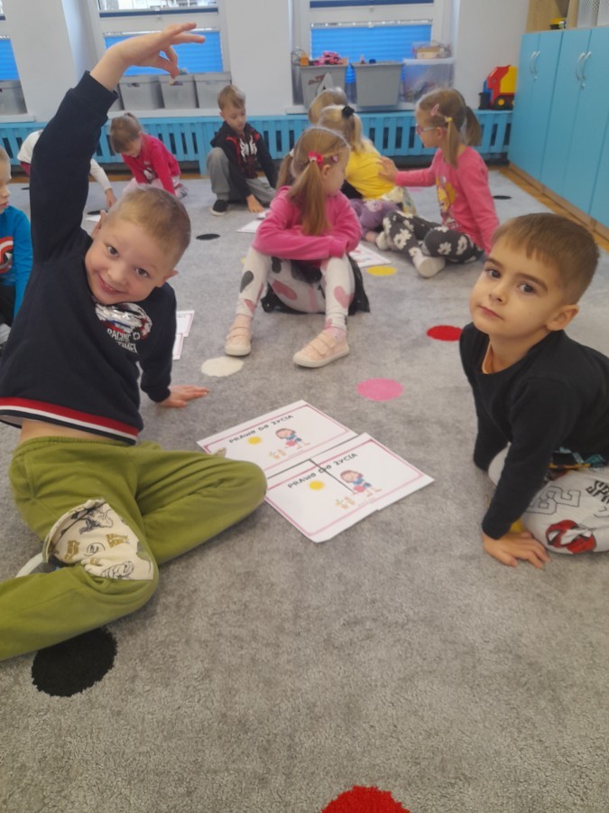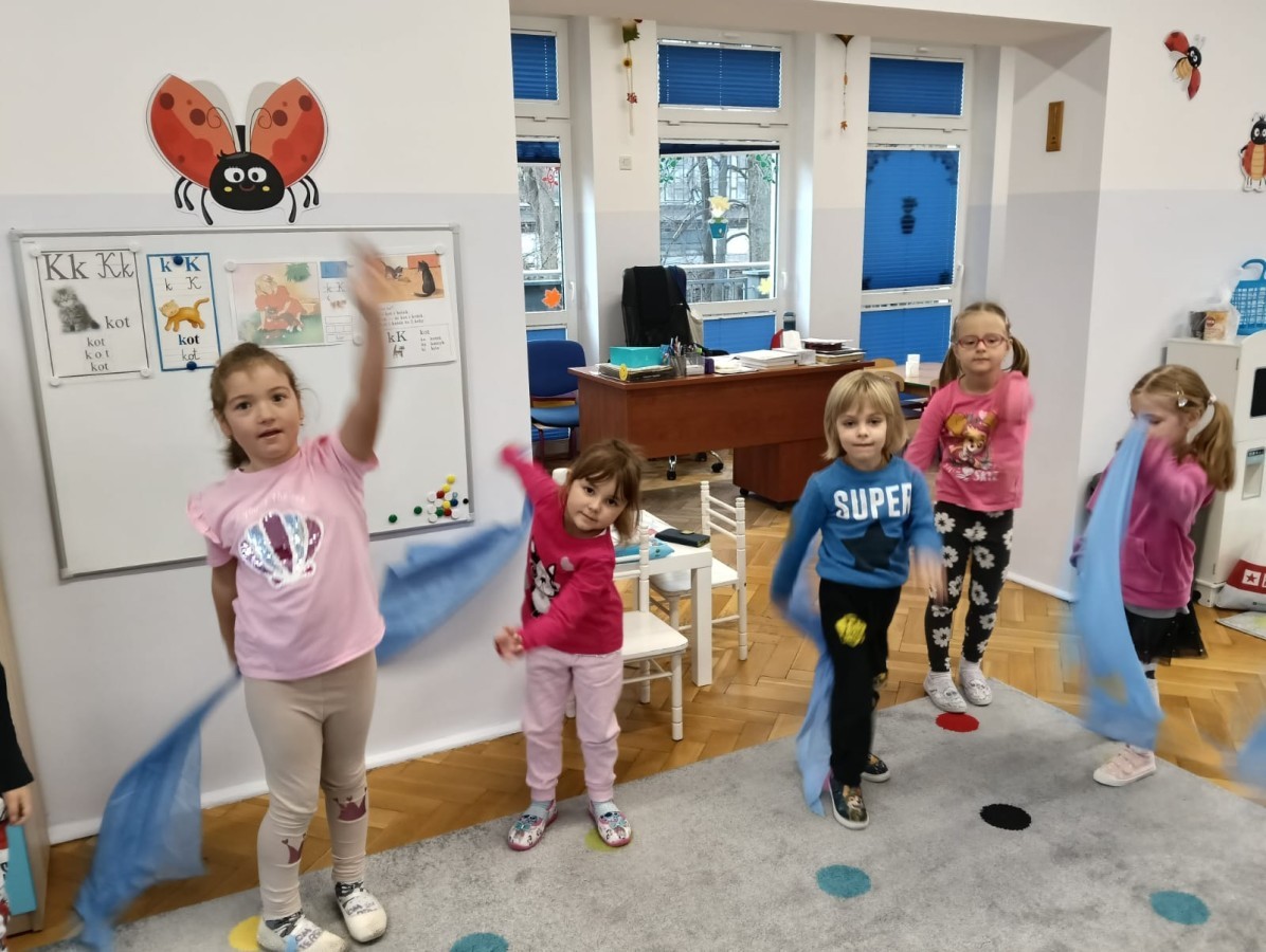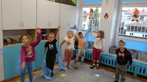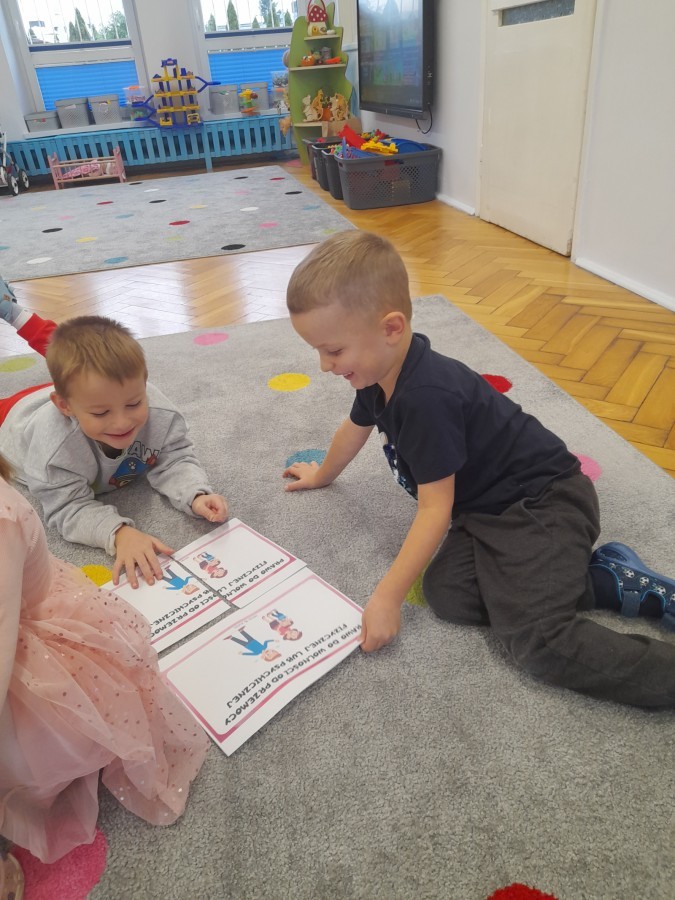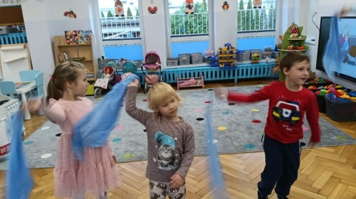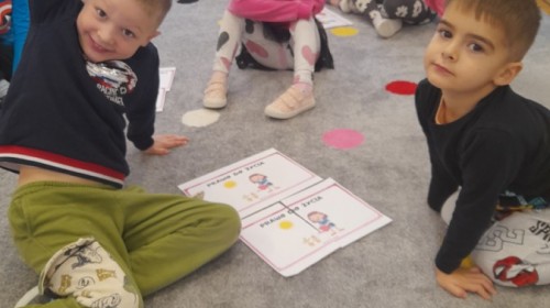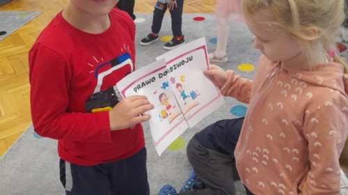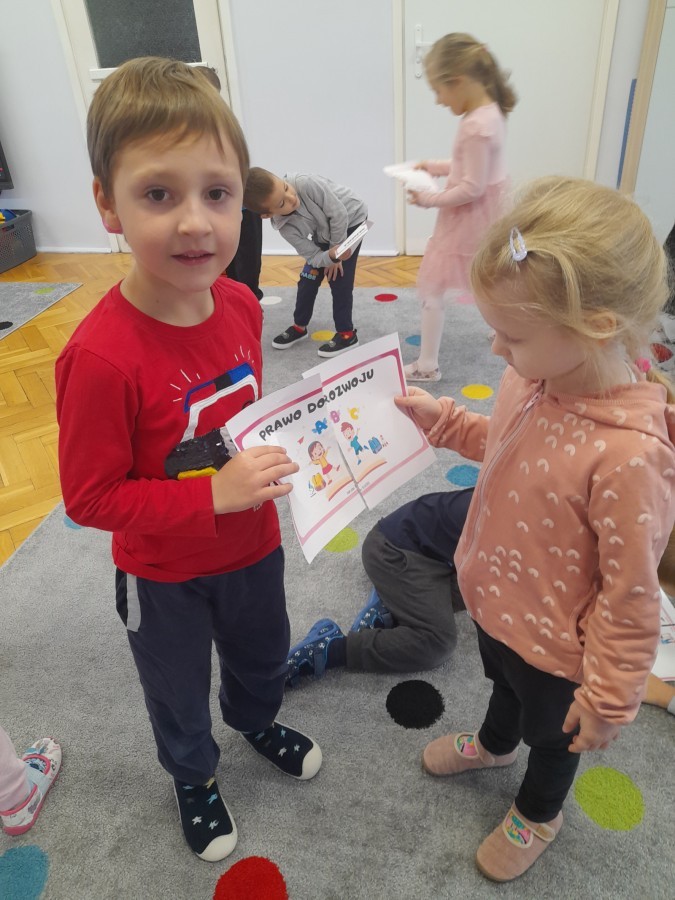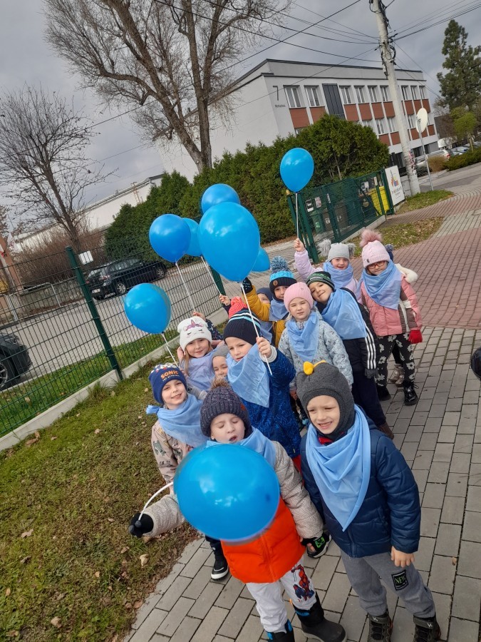 Tego dnia przedszkolaki rozmawiały o Prawach Dziecka, które każde z nich posiada. Wspólnie nazywały te prawa korzystając z obrazków, brały udział w zabawach ruchowych, szukały swojej drugiej połowy, odgrywały scenki dramowe oraz spacerowały z niebieskimi balonami jako symbol solidarności ze wszystkimi dziećmi na świecie.