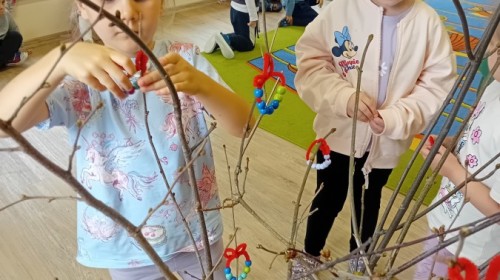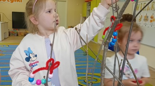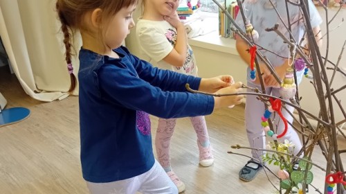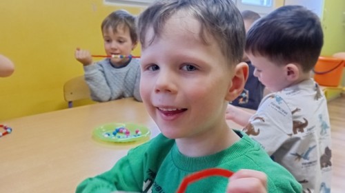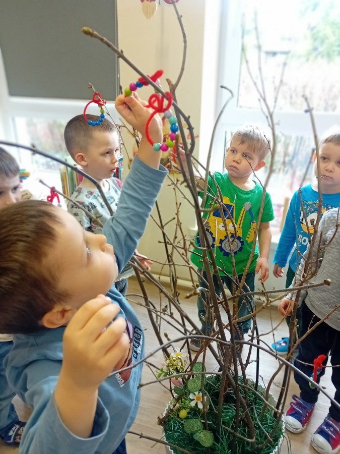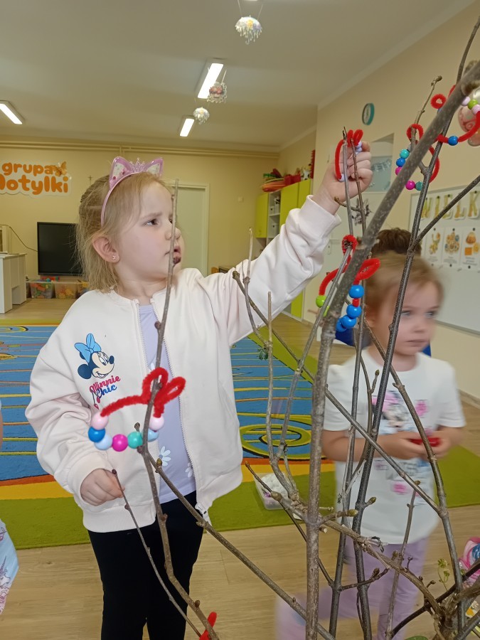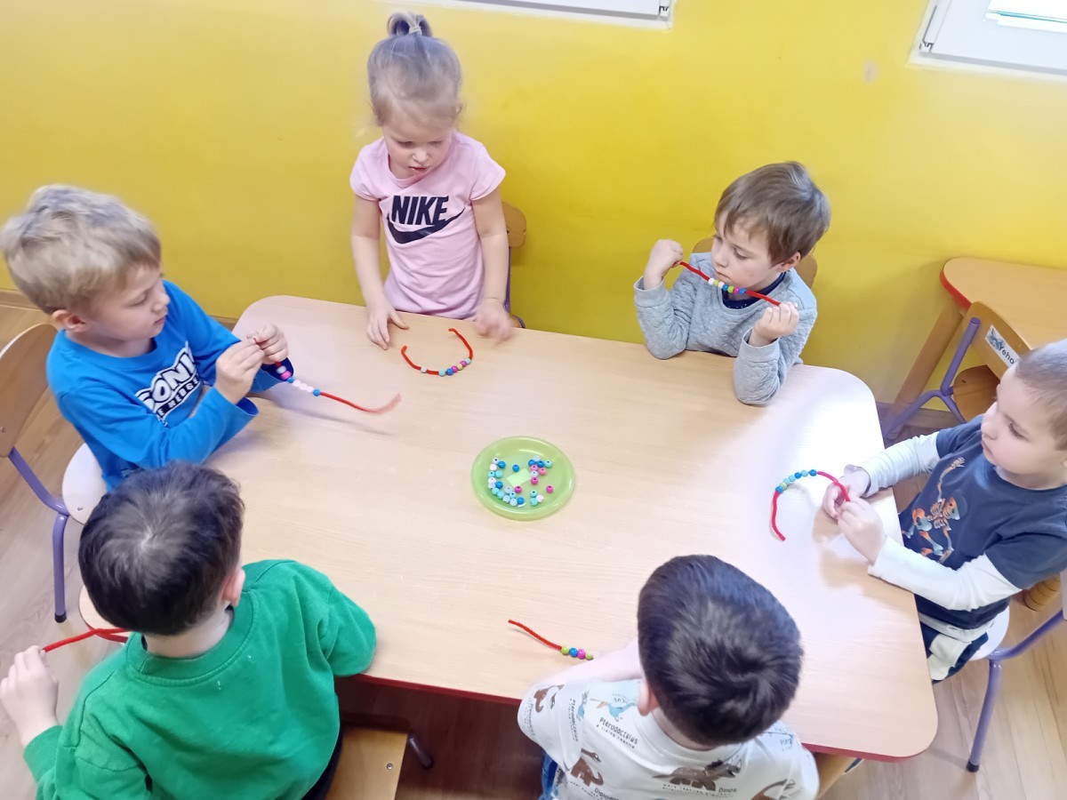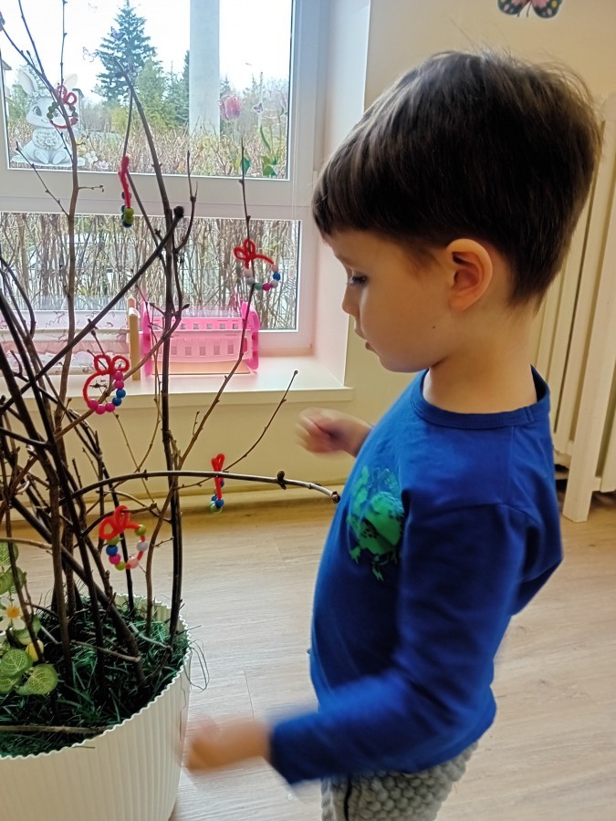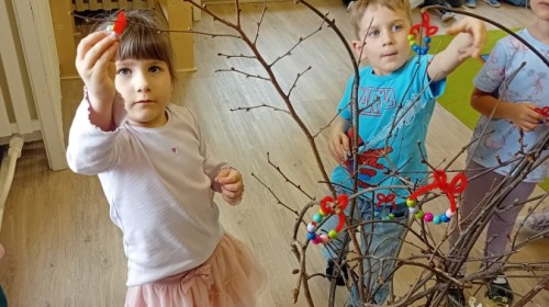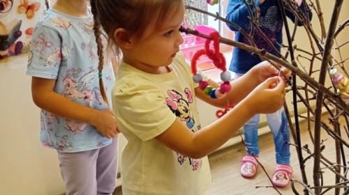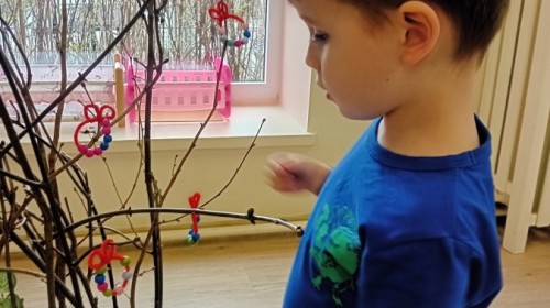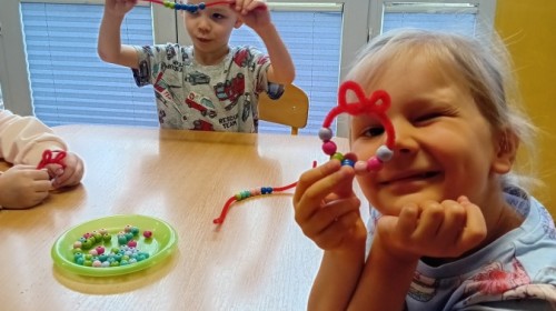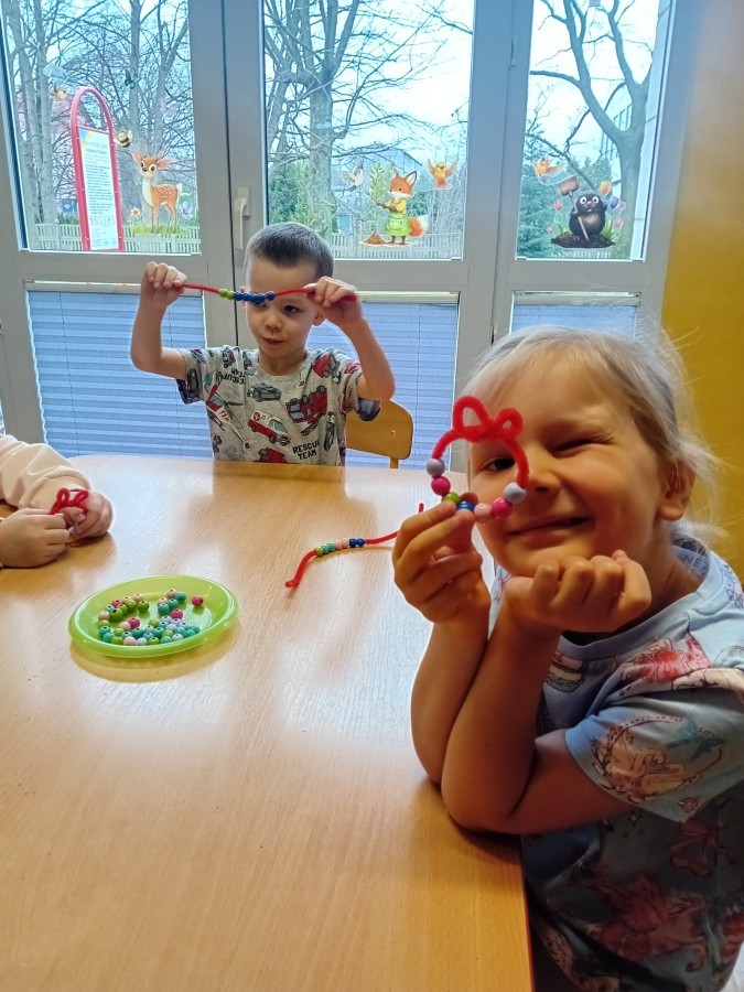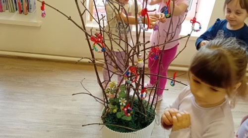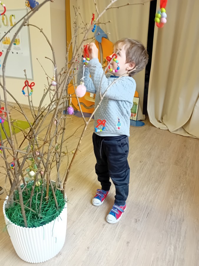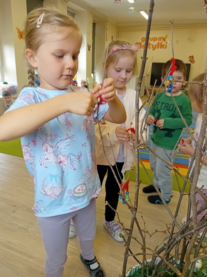 Nasze przedszkolaki z wielkim zaangażowaniem wyczarowały własnoręczne ozdoby – z kolorowych koralików powstały urocze wielkanocne zajączki, które wymagają nie lada cierpliwości i precyzji. Wspólnie zadbaliśmy też o świąteczny klimat w naszej sali, dekorując nasze wielkanocne drzewko.