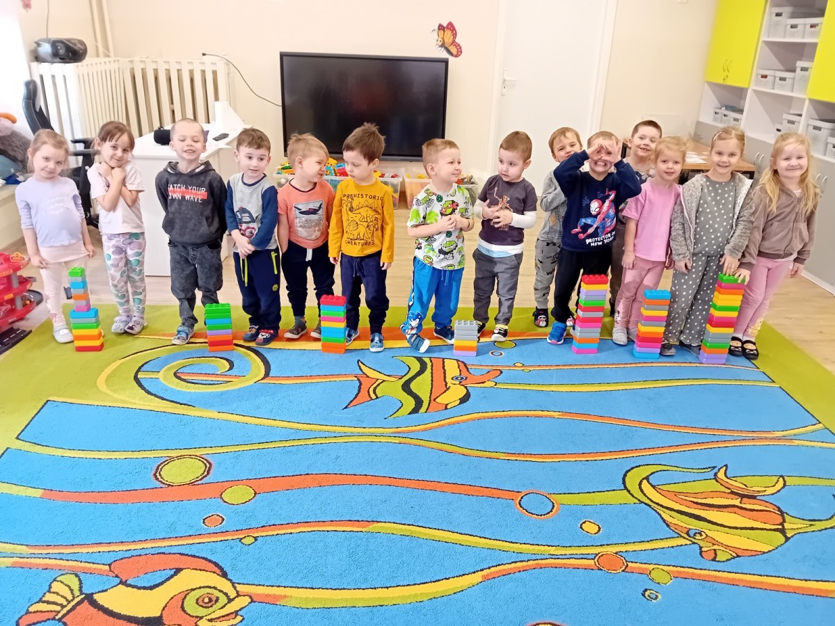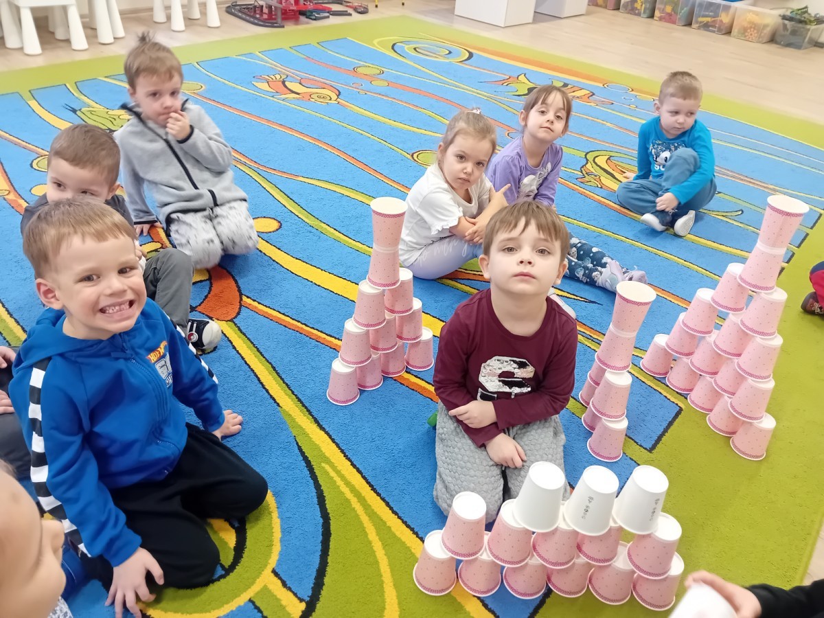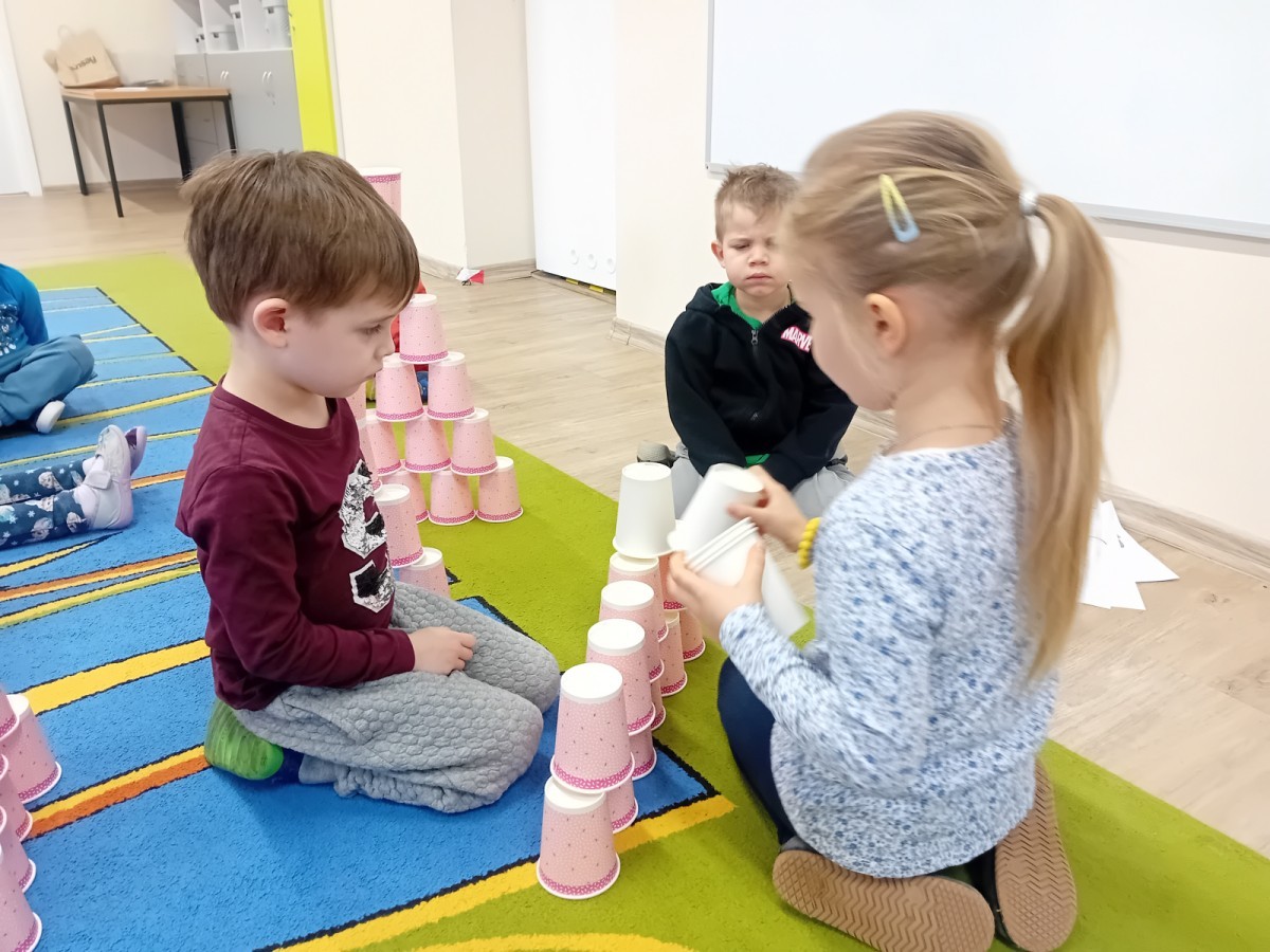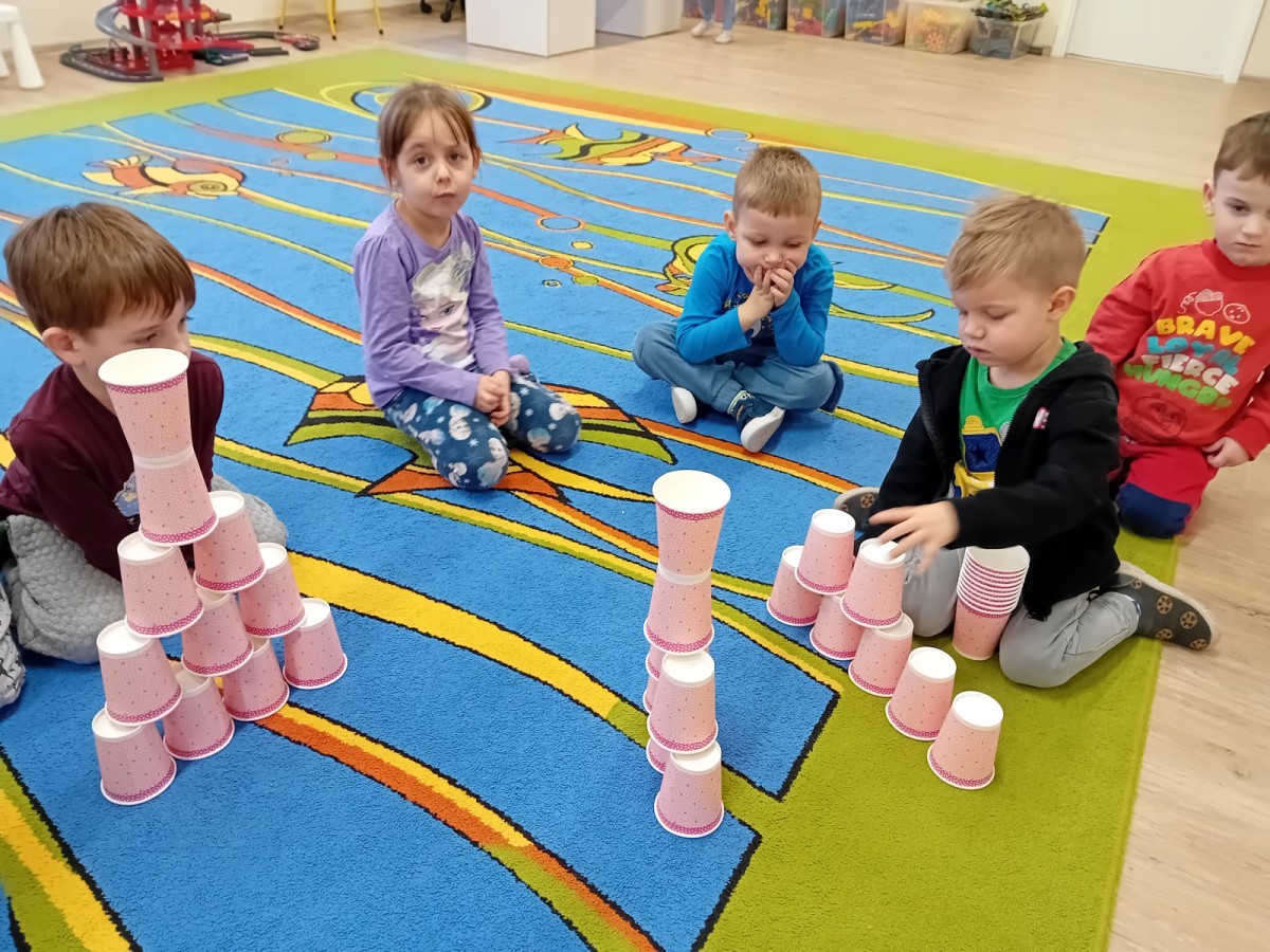Czy matematyka może być przygodą? W naszym przedszkolu udowadniamy, że tak! Ostatnie dni w przedszkolu w grupie Średniaków, upłynęły pod znakiem porównywania, mierzenia i wielkich konstrukcji. Sprawdzaliśmy, kto jest wyższy, a kto niższy. Porównywanie wzrostu kolegów i koleżanek wywołało mnóstwo uśmiechu! Wznosiliśmy imponujące wieże i budowle ( z klocków, kubeczków), pilnując, by każda kolejna była większa od poprzedniej. Oczywiście nie zabrakło ulubionych bajkowych bohaterów Naszych Przedszkolaków.