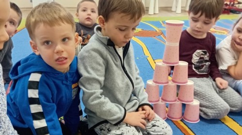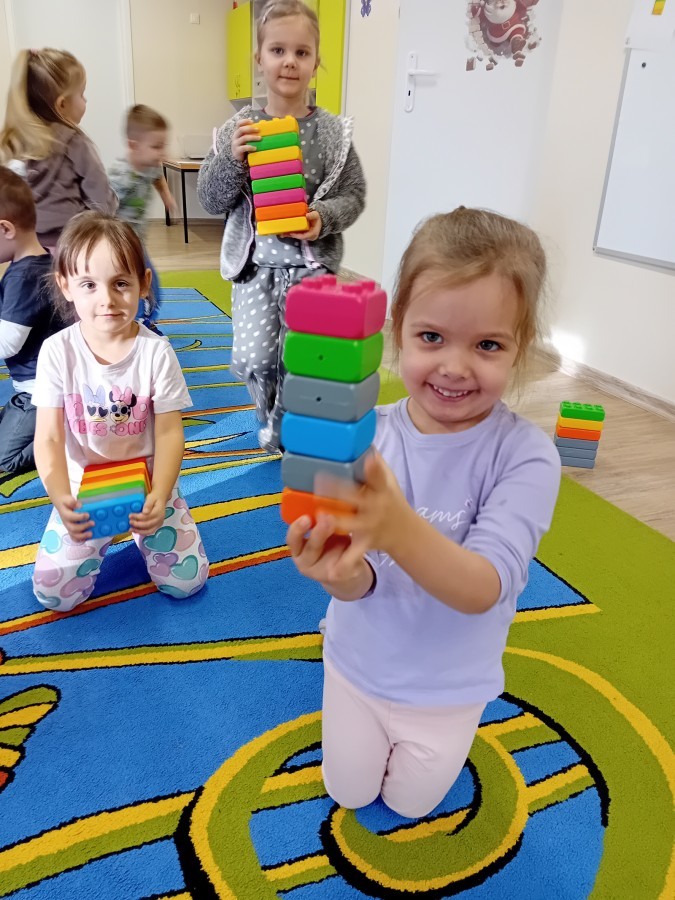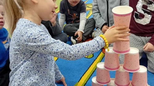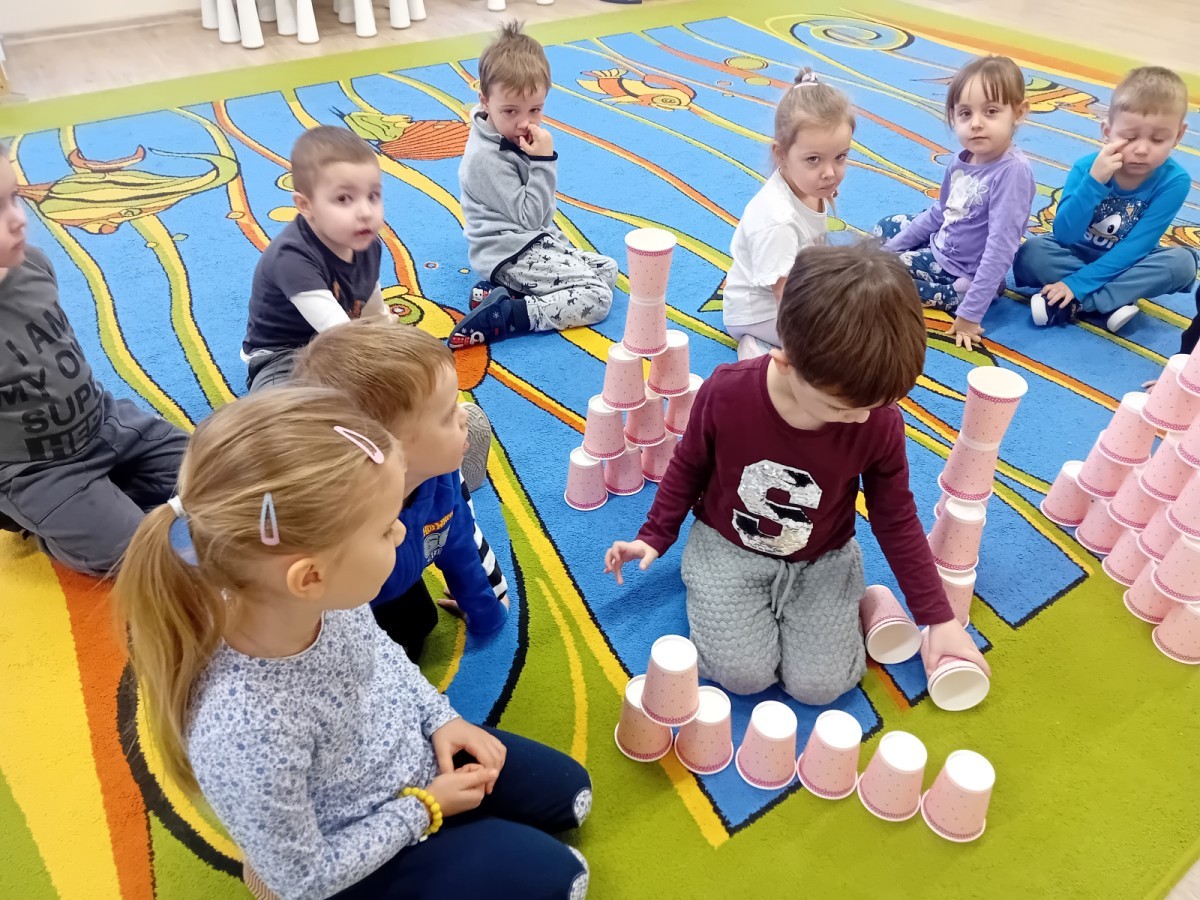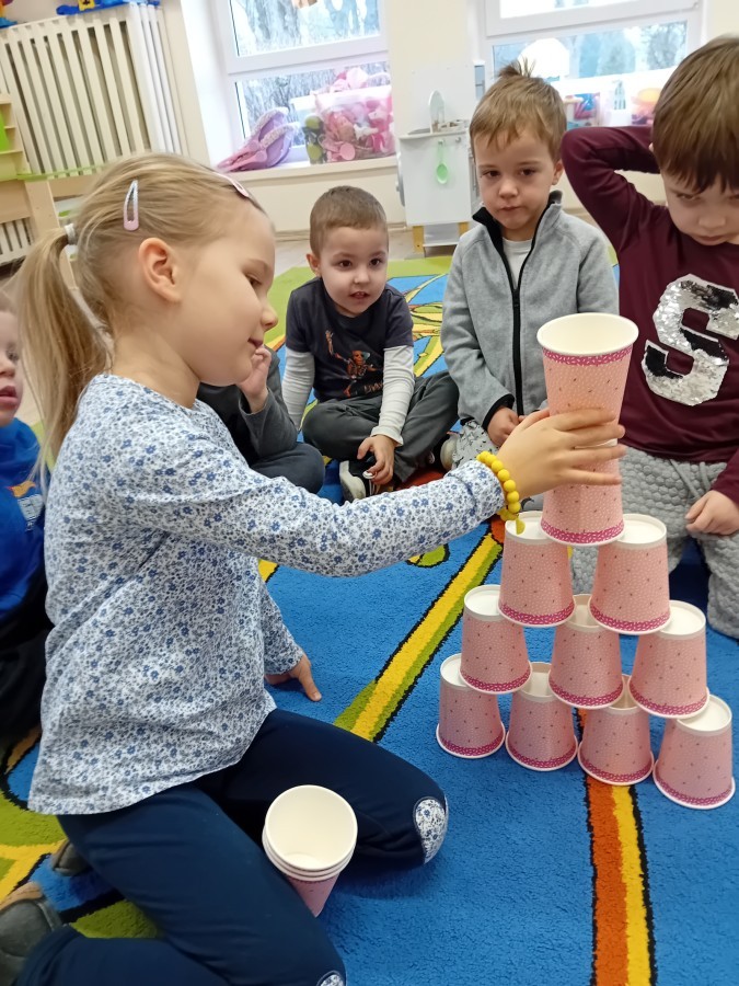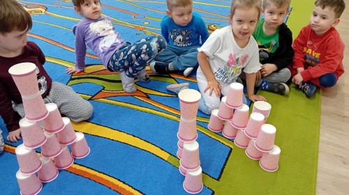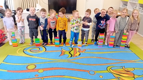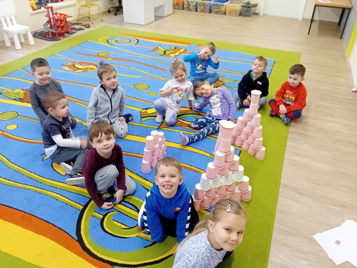 Czy matematyka może być przygodą? W naszym przedszkolu udowadniamy, że tak! Ostatnie dni w przedszkolu w grupie Średniaków, upłynęły pod znakiem porównywania, mierzenia i wielkich konstrukcji. Sprawdzaliśmy, kto jest wyższy, a kto niższy. Porównywanie wzrostu kolegów i koleżanek wywołało mnóstwo uśmiechu! Wznosiliśmy imponujące wieże i budowle ( z klocków, kubeczków), pilnując, by każda kolejna była większa od poprzedniej. Oczywiście nie zabrakło ulubionych bajkowych bohaterów Naszych Przedszkolaków.