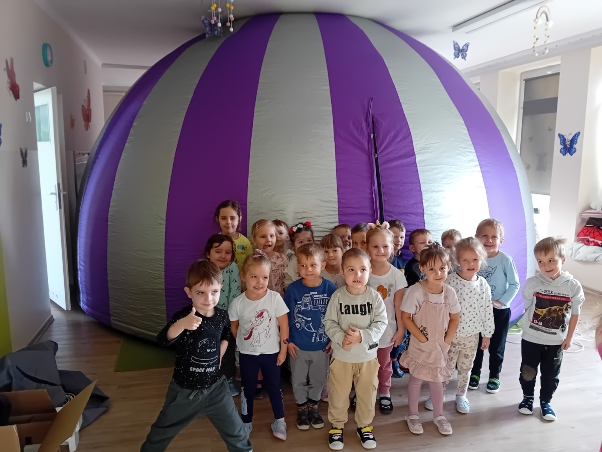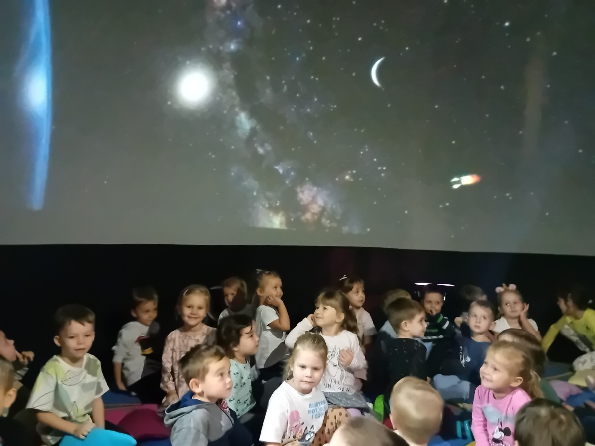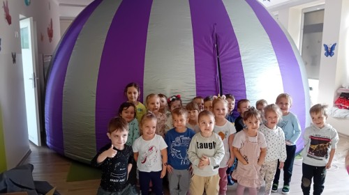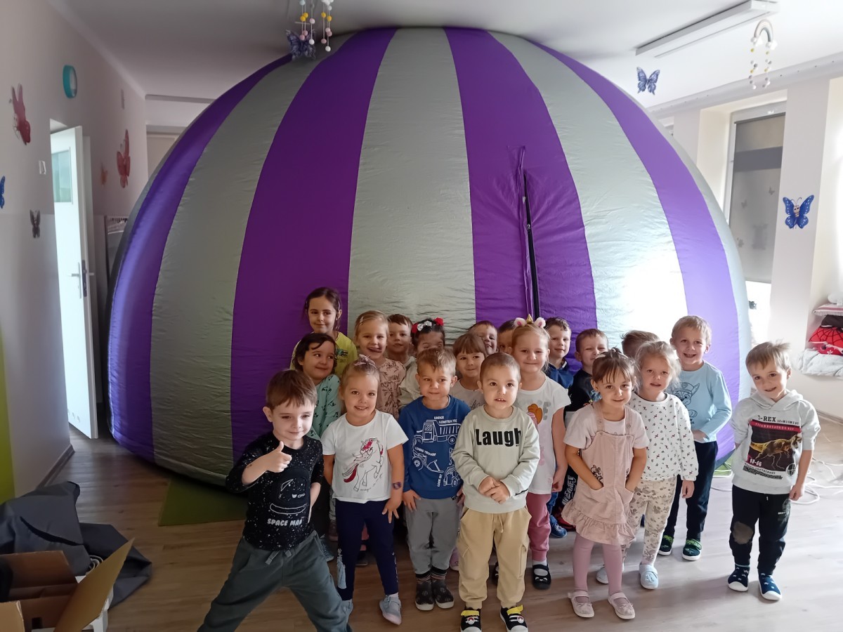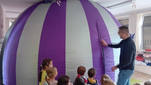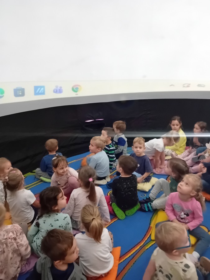 W Naszym przedszkolu gościliśmy mobilne planetarium, dzięki któremu przedszkolaki miały okazję zobaczyć jak zmieniają się pory roku. Oprócz wspaniałej i barwnej grafiki, pięknej muzyki i realistycznych postaci, film posiadał treści edukacyjne. Dzieci były zachwycone wyjątkowym seansem.
