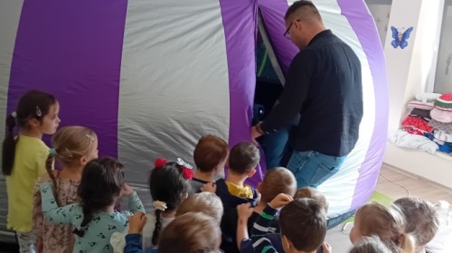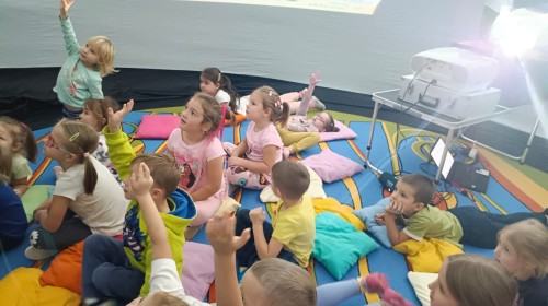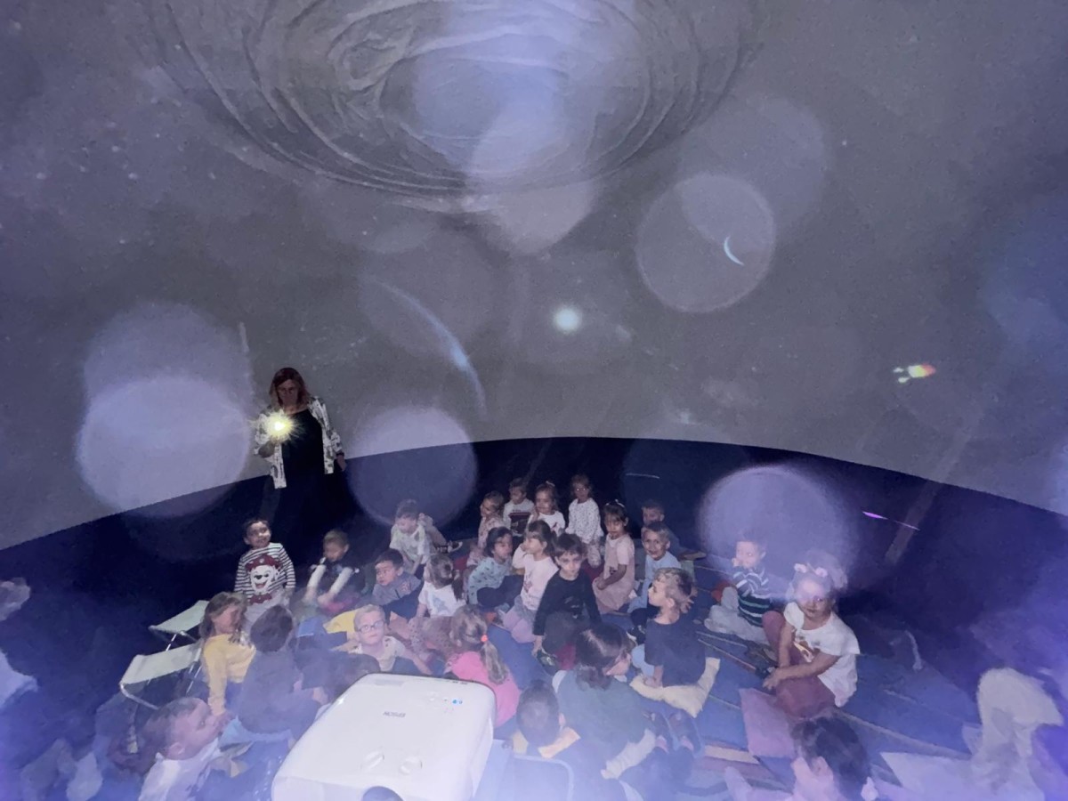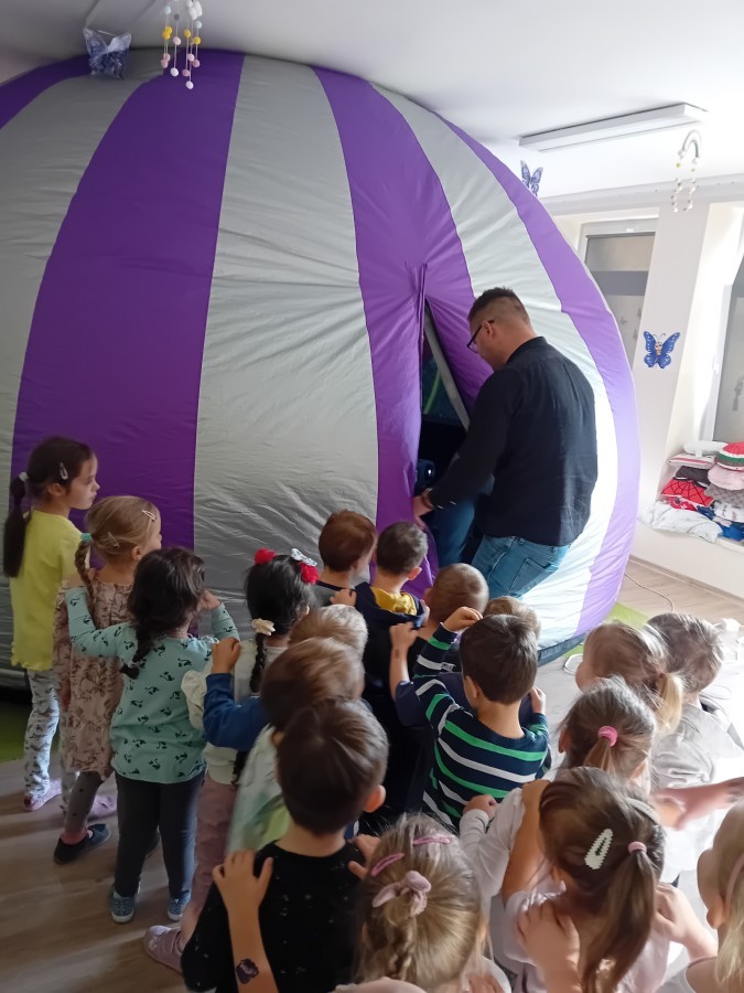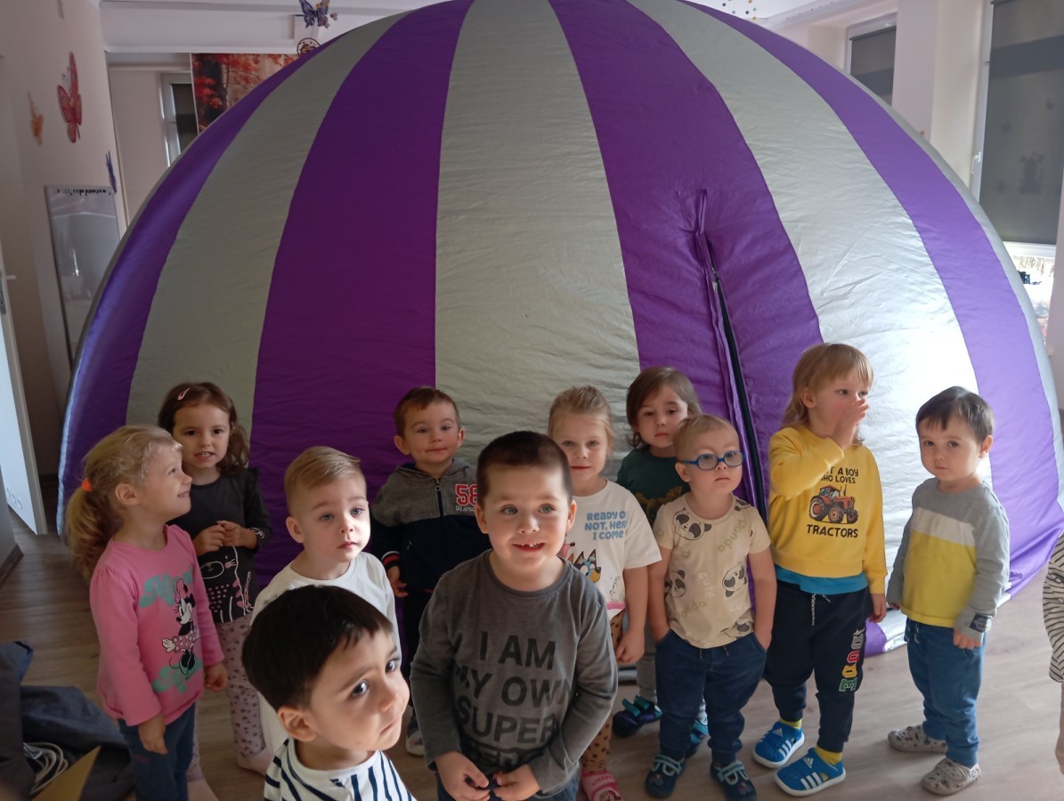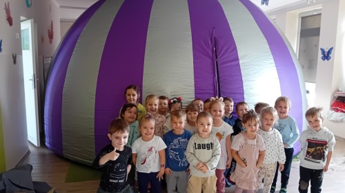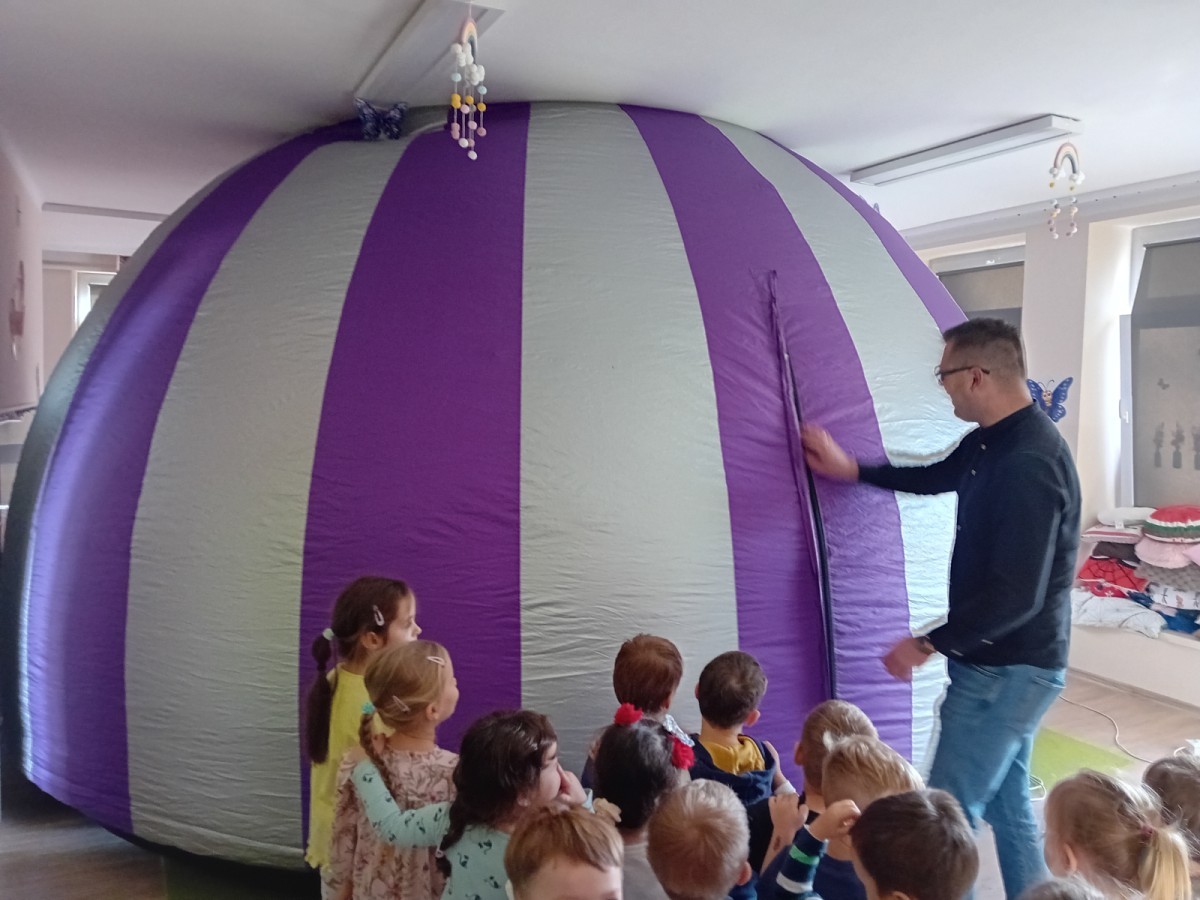 W Naszym przedszkolu gościliśmy mobilne planetarium, dzięki któremu przedszkolaki miały okazję zobaczyć jak zmieniają się pory roku. Oprócz wspaniałej i barwnej grafiki, pięknej muzyki i realistycznych postaci, film posiadał treści edukacyjne. Dzieci były zachwycone wyjątkowym seansem.