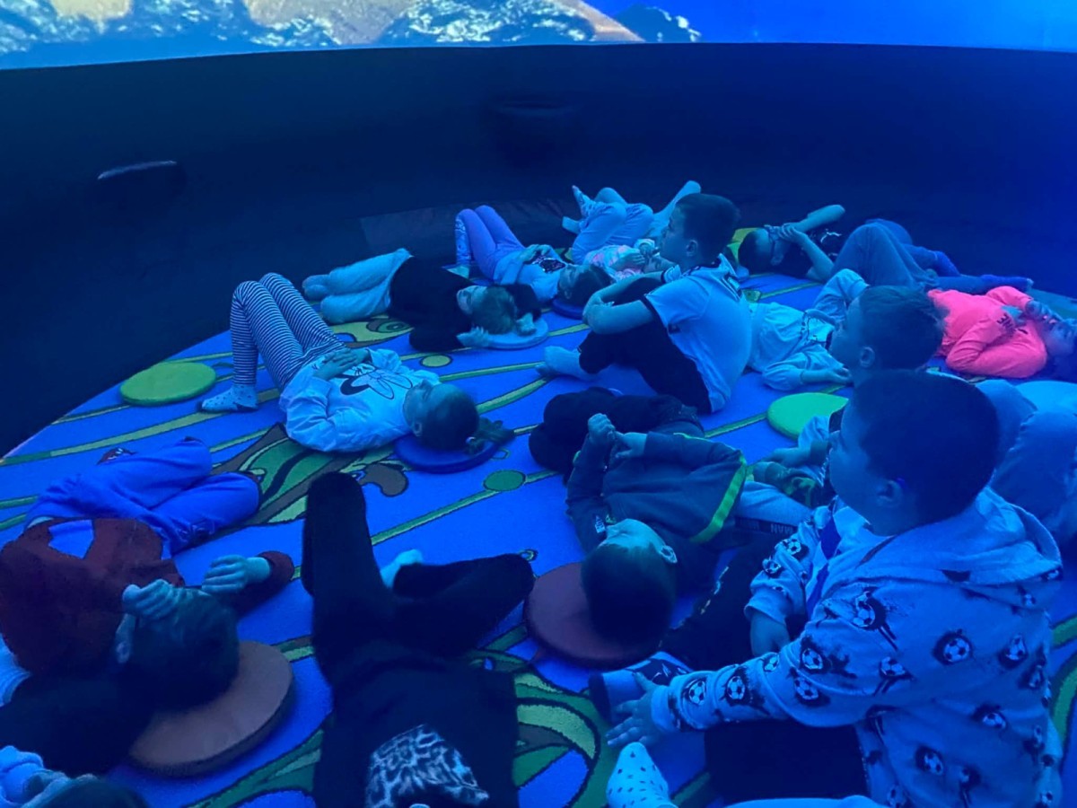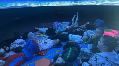 Dzieci z przedszkola wzięły udział w wyjątkowym seansie w mobilnym planetarium. Mali widzowie mieli okazję poznać fascynujący podwodny świat oraz zobaczyć niezwykłe zwierzęta morskie.