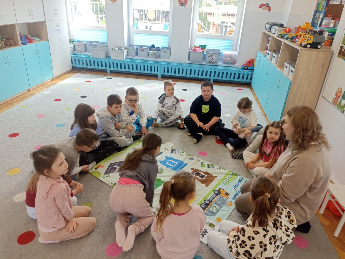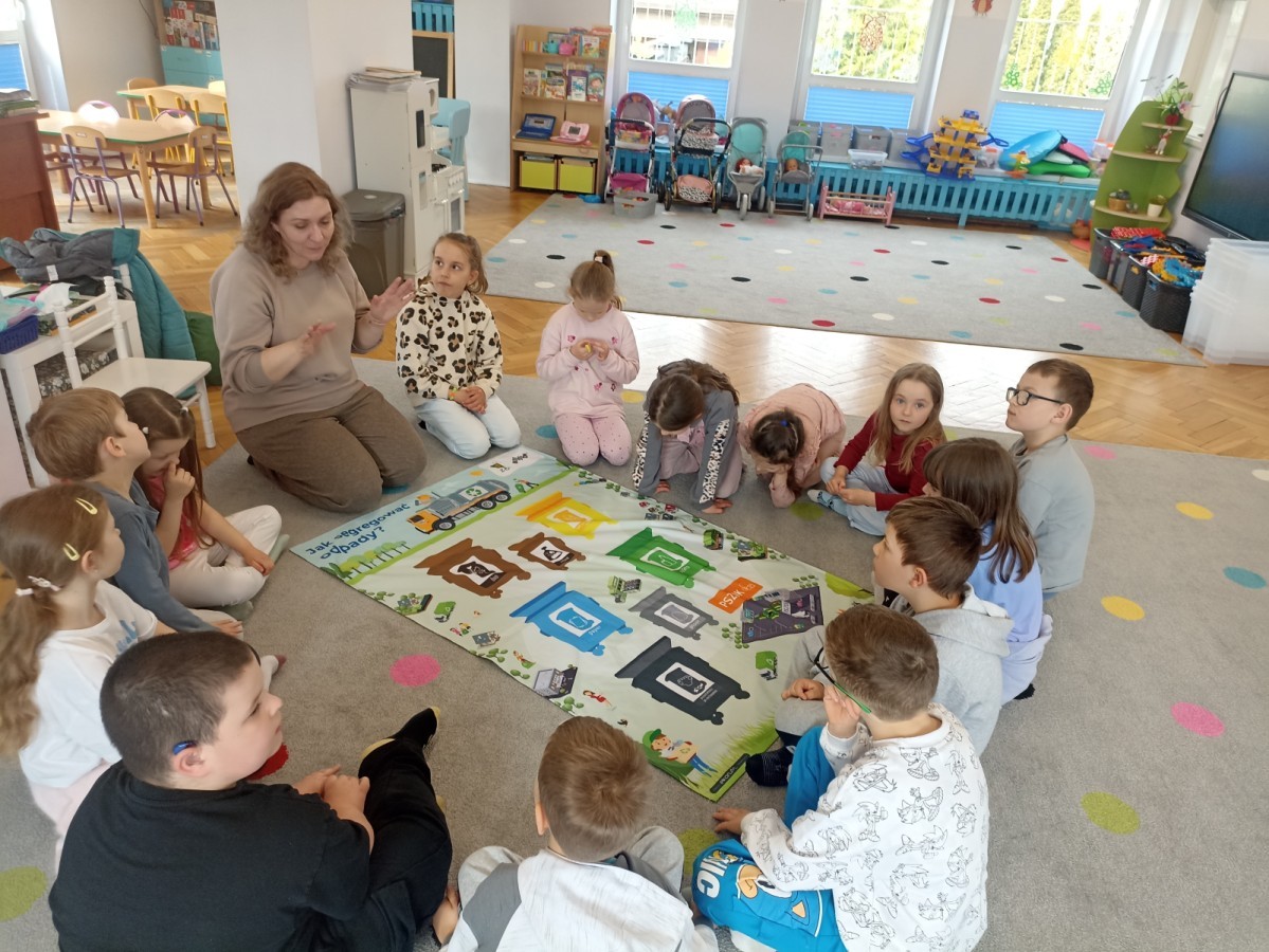 Nasze przedszkole odwiedziła dziś Pani z Zakładu Gospodarowania Odpadami. Podczas spotkania dzieci dowiedziały się, jak poprawnie segregować odpady i dlaczego jest to tak ważne dla naszej planety.