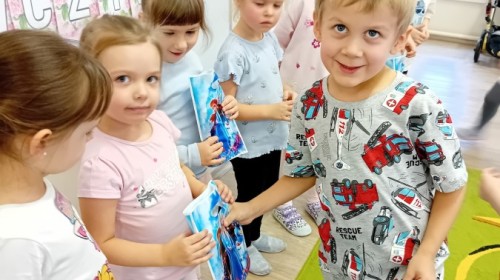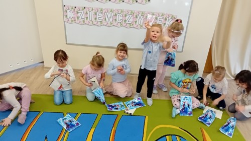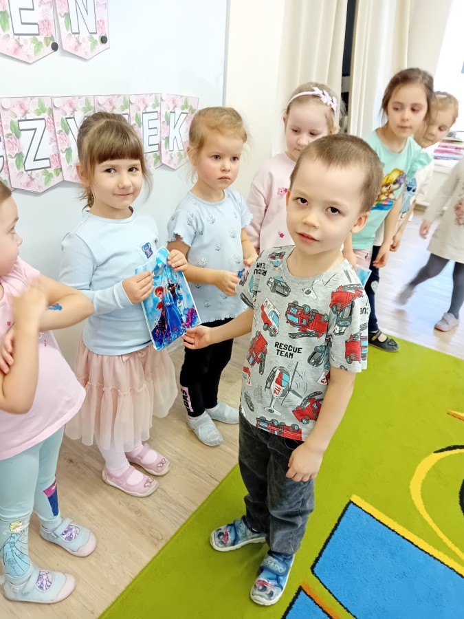 Nie zabrakło też pięknych gestów: nasi mali dżentelmeni z uśmiechem wręczyli koleżankom urocze upominki, dbając o to, by każda dziewczynka poczuła się dziś wyjątkowo. To był dzień pełen ruchu, śmiechu i miłych niespodzianek!