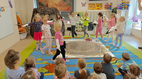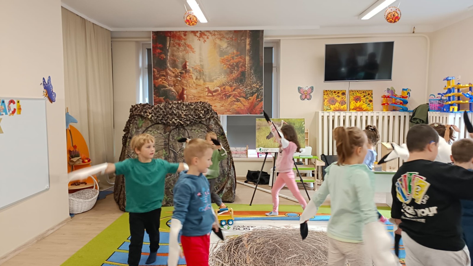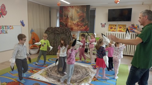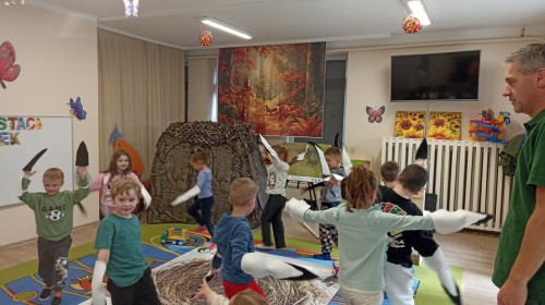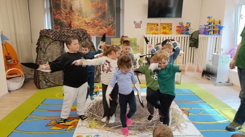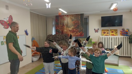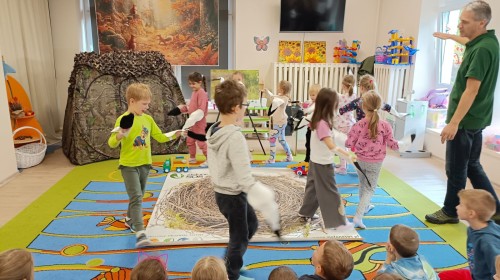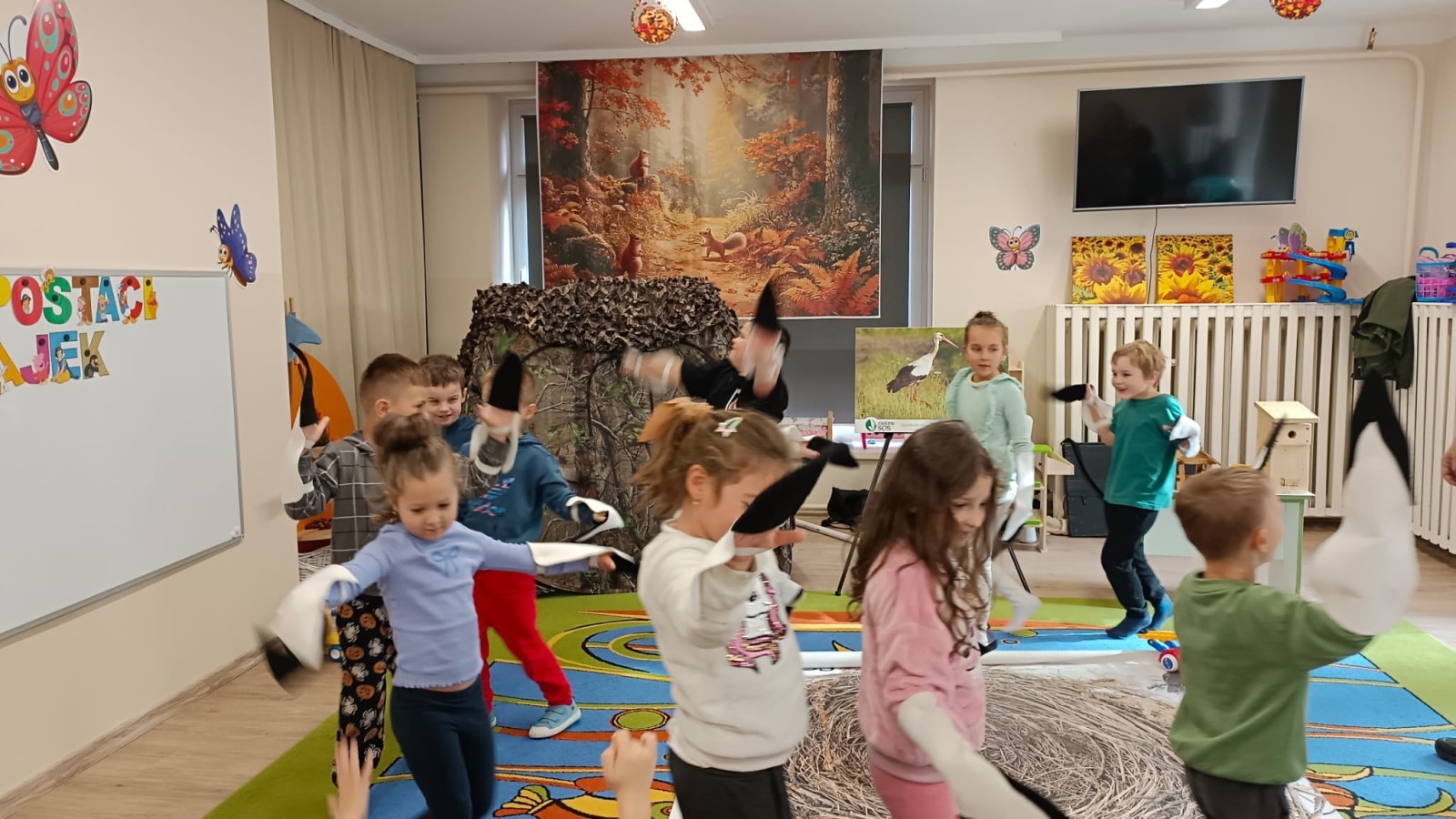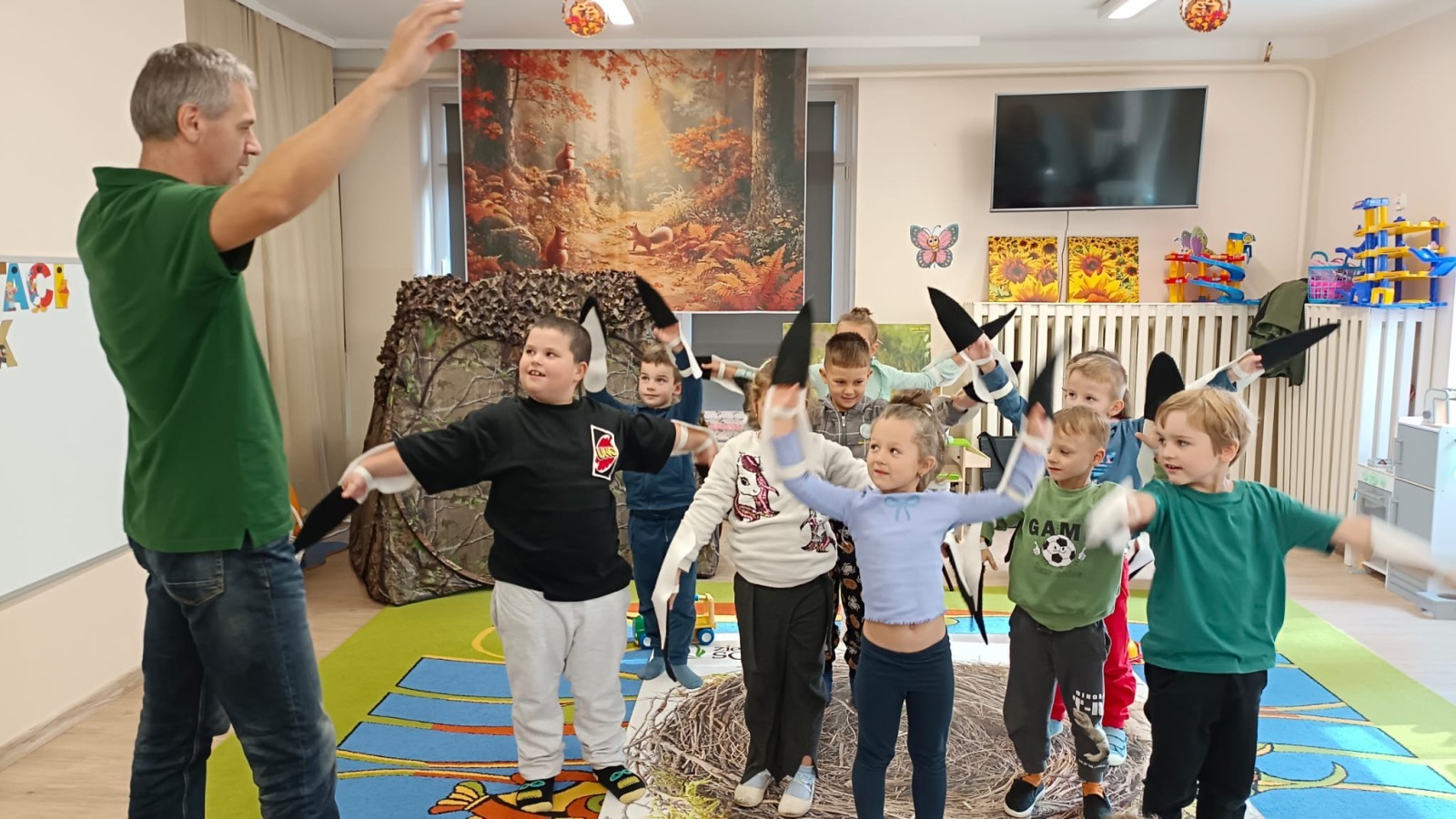 28 października przedszkole gościło ornitologa, prawdziwego znawcę ptaków. To wyjątkowe spotkanie było doskonałą okazją, by pogłębić wiedzę o skrzydlatych mieszkańcach naszej okolicy. Spotkanie było pełne ciekawostek, dzięki którym dzieci dowiedziały się, jak wyglądają, czym się różnią i jak spędzają czas różne ptaki.Odkryły Sekret Zdrowego Dokarmiania - kluczowym elementem edukacji były zasady pomocy ptakom zimą. Pan ornitolog stanowczo podkreślił, że chleb i pieczywo są dla ludzi, natomiast ptasią dietę powinny stanowić ziarna (np. słonecznik) lub owoce (np. jabłka). Była to cenna lekcja odpowiedzialności za przyrodę.