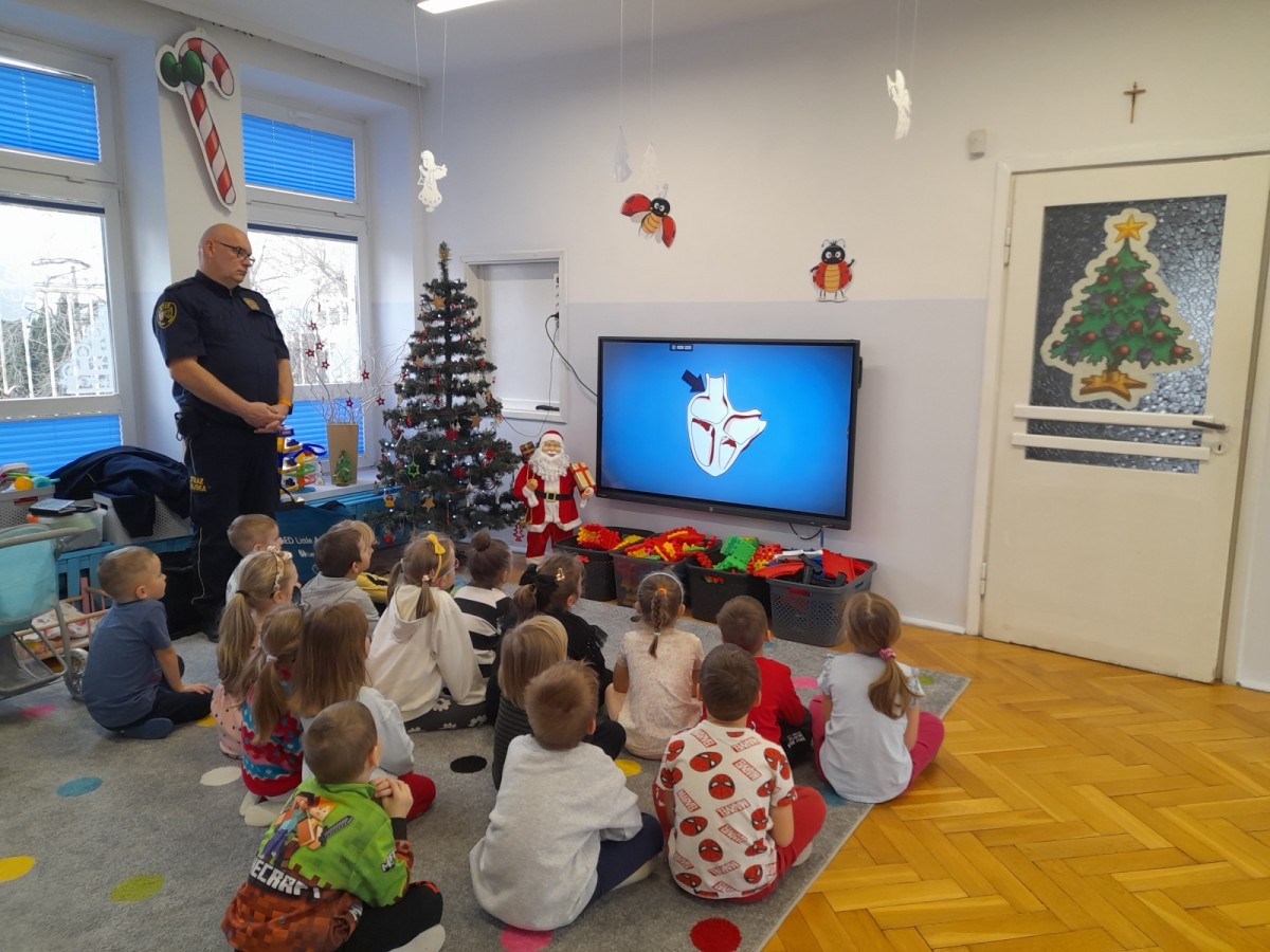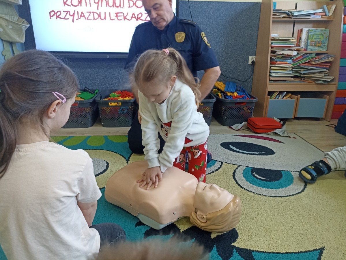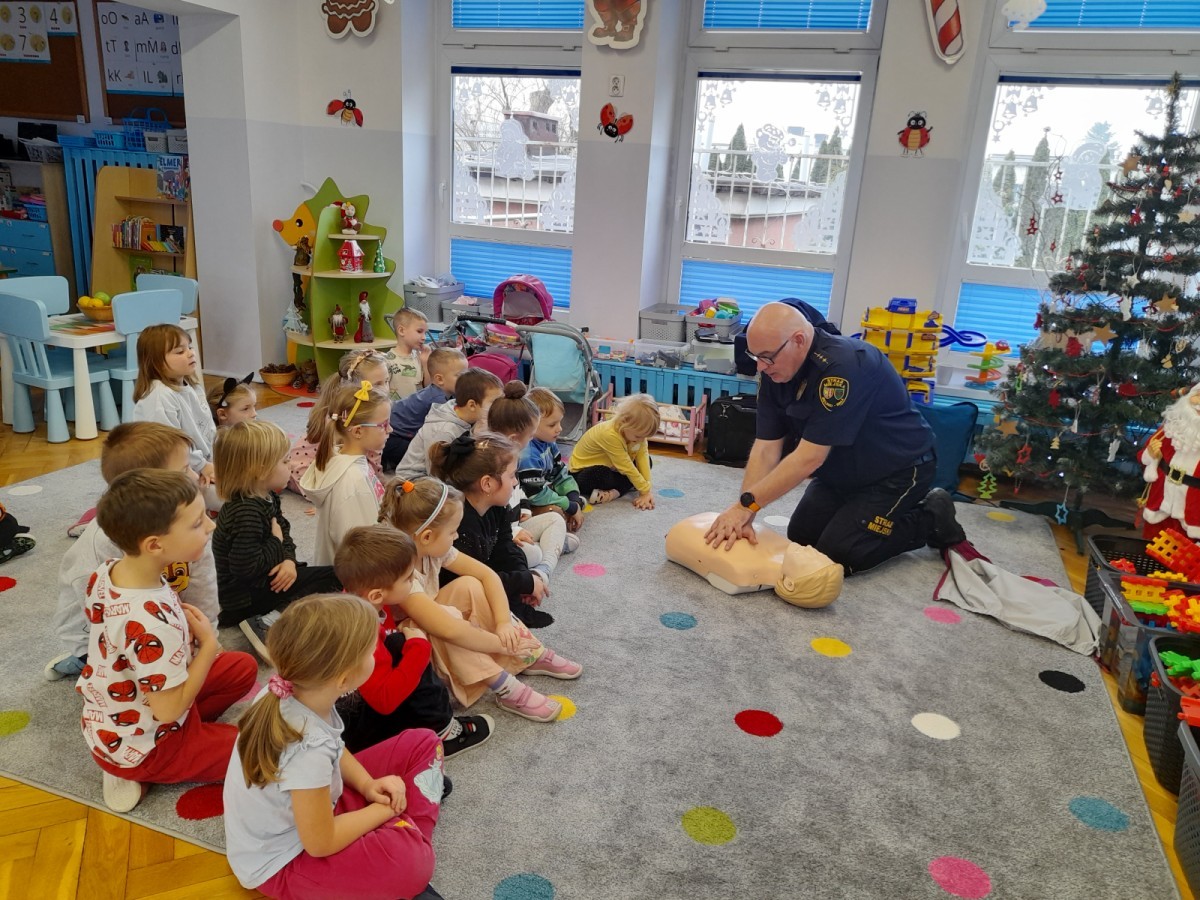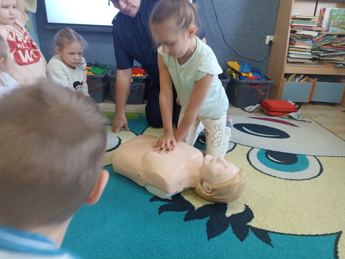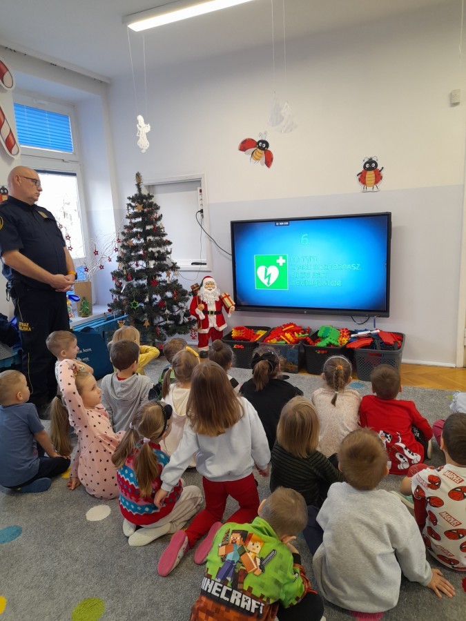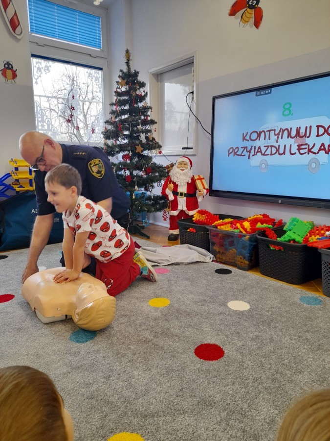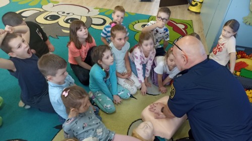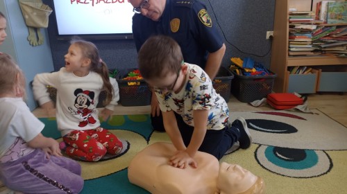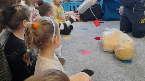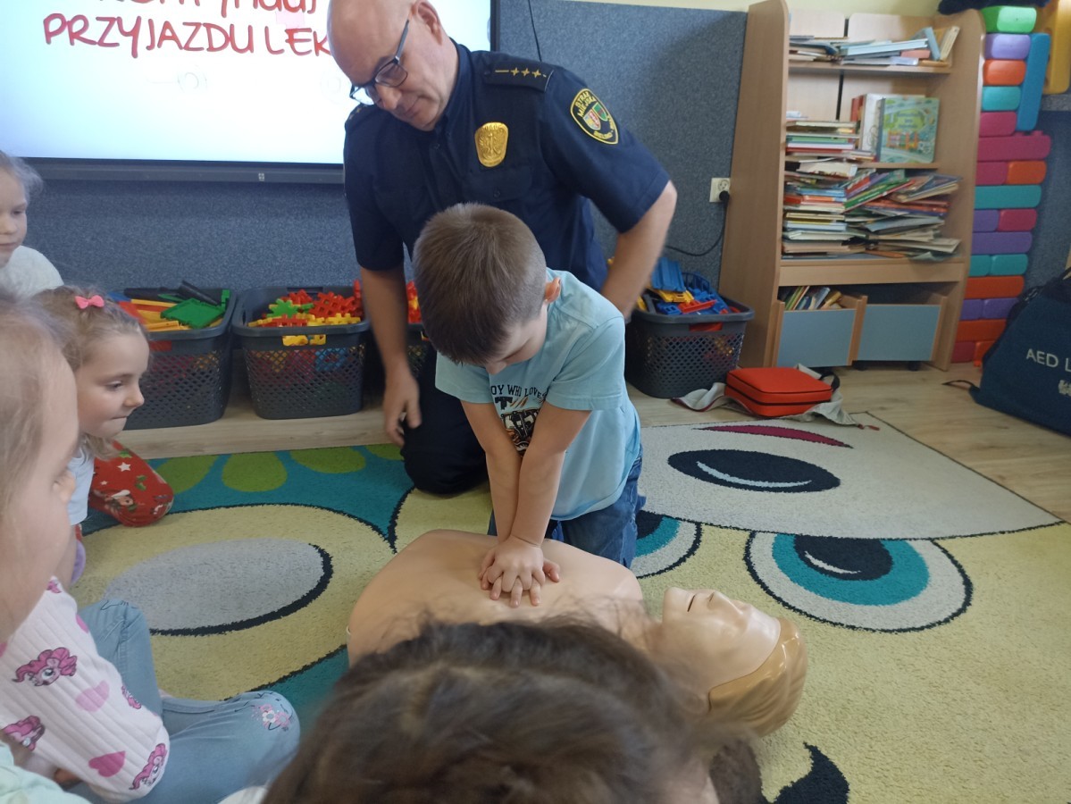 Dzisiaj Pan Mirosław ze Straży Miejskiej przeprowadził z nami zajęcia na temat udzielania pierwszej pomocy przedmedycznej. Obejrzeliśmy film edukacyjny, mieliśmy okazję poćwiczyć masaż serca, a także zobaczyliśmy, jak działa automatyczny defibrylator (AED) i dowiedzieliśmy się do czego służy. Bardzo dziękujemy za cenne i pouczające zajęcia.