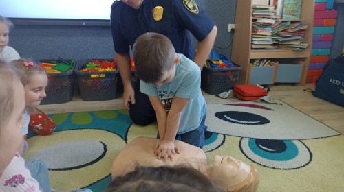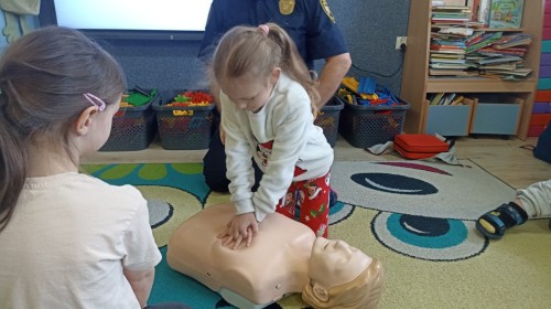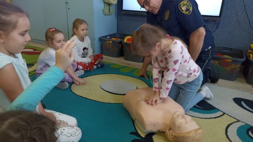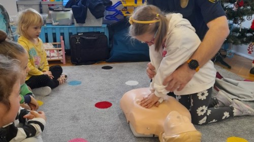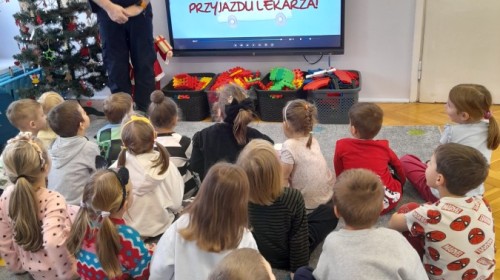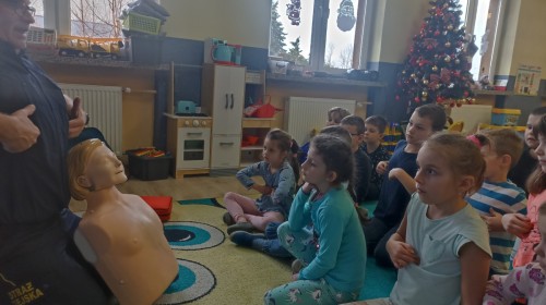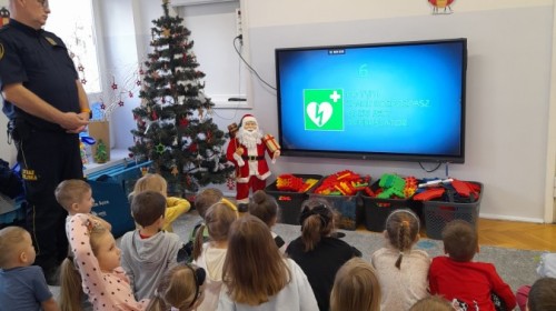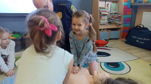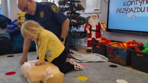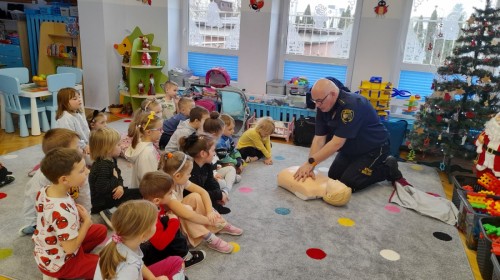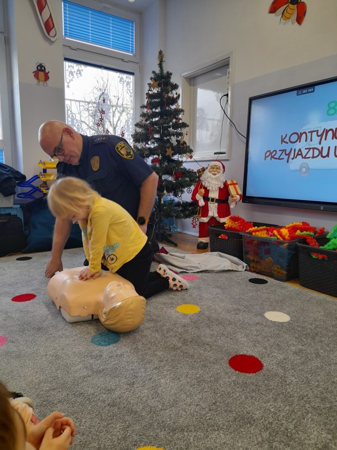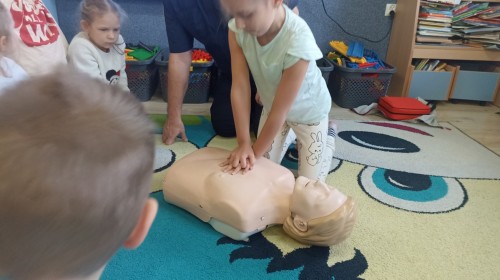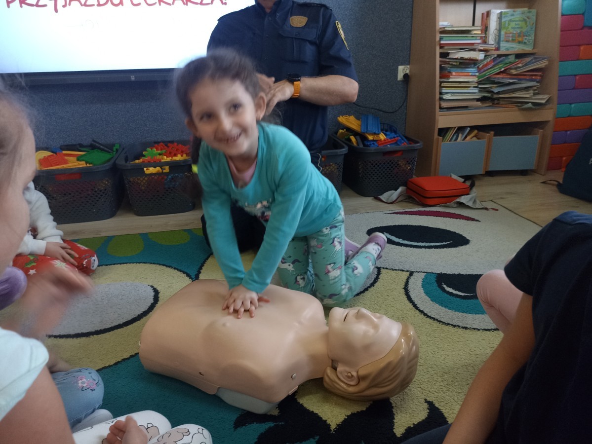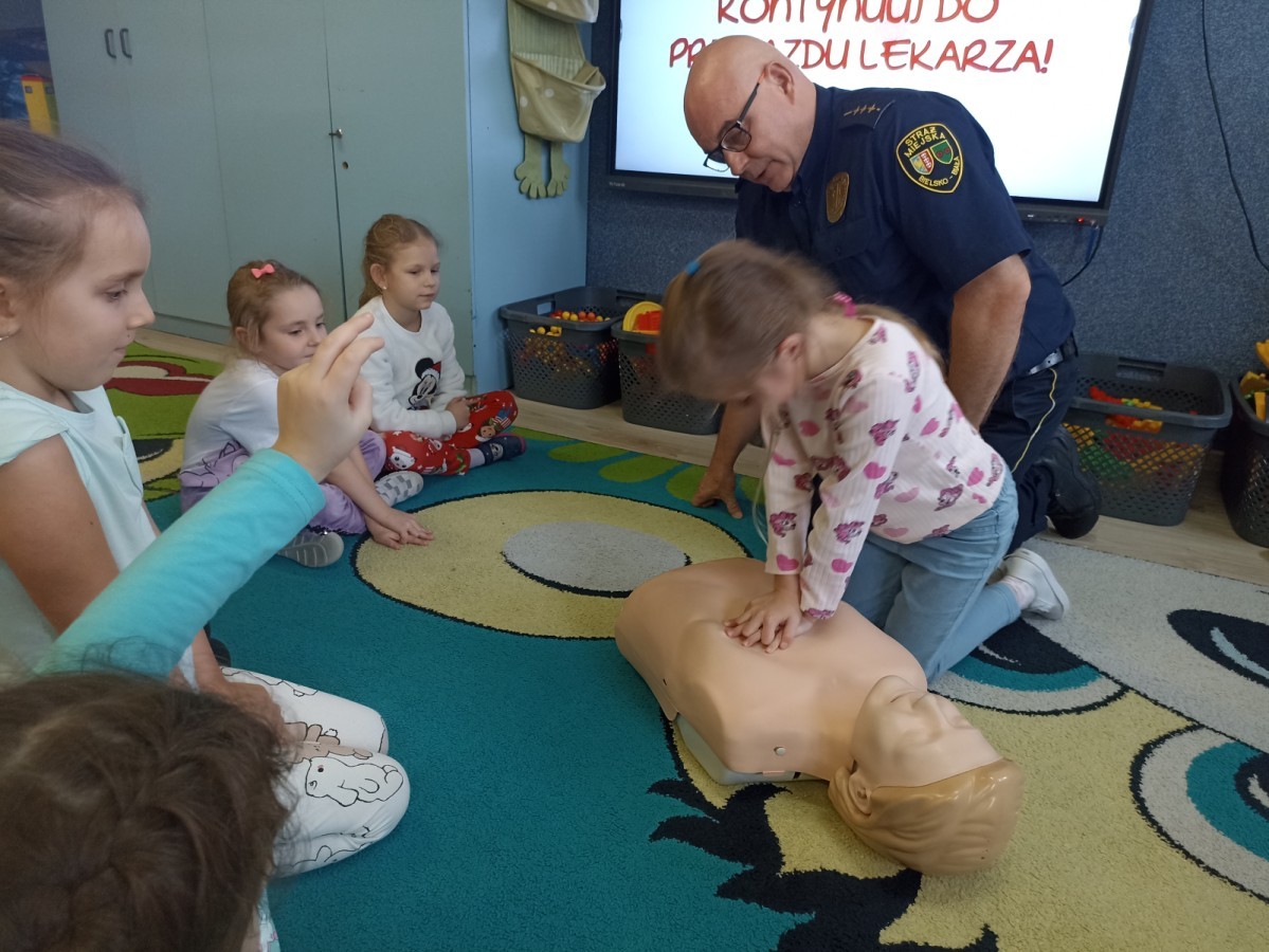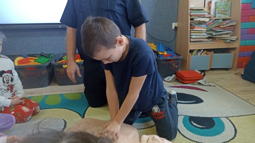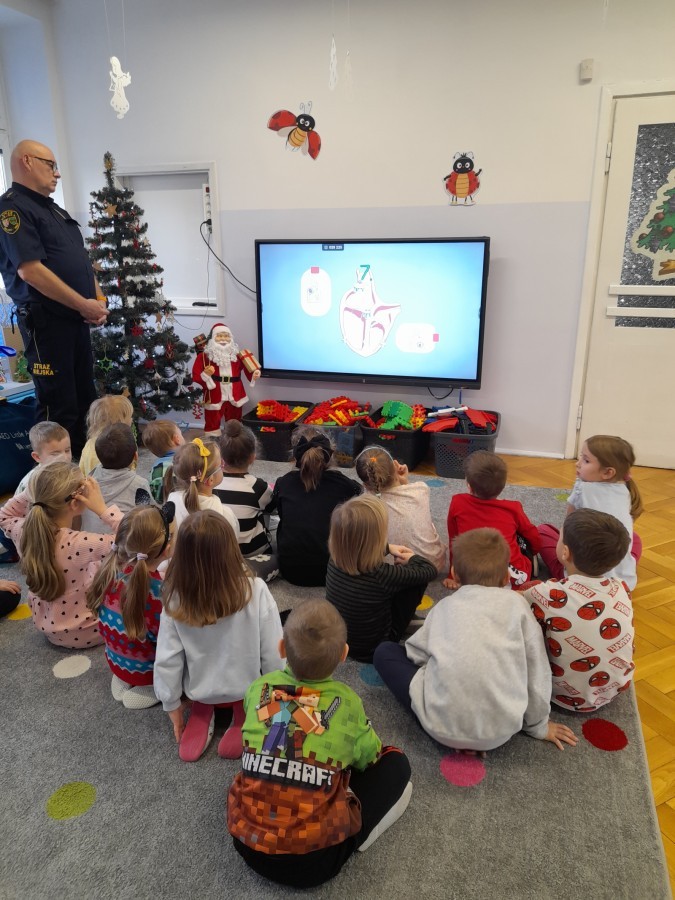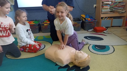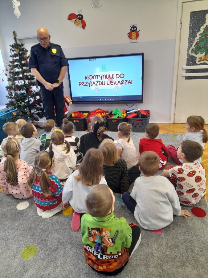 Dzisiaj Pan Mirosław ze Straży Miejskiej przeprowadził z nami zajęcia na temat udzielania pierwszej pomocy przedmedycznej. Obejrzeliśmy film edukacyjny, mieliśmy okazję poćwiczyć masaż serca, a także zobaczyliśmy, jak działa automatyczny defibrylator (AED) i dowiedzieliśmy się do czego służy. Bardzo dziękujemy za cenne i pouczające zajęcia.