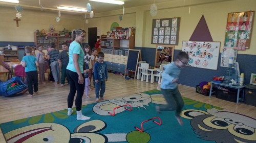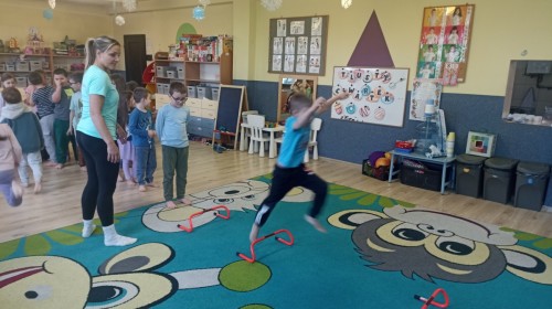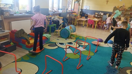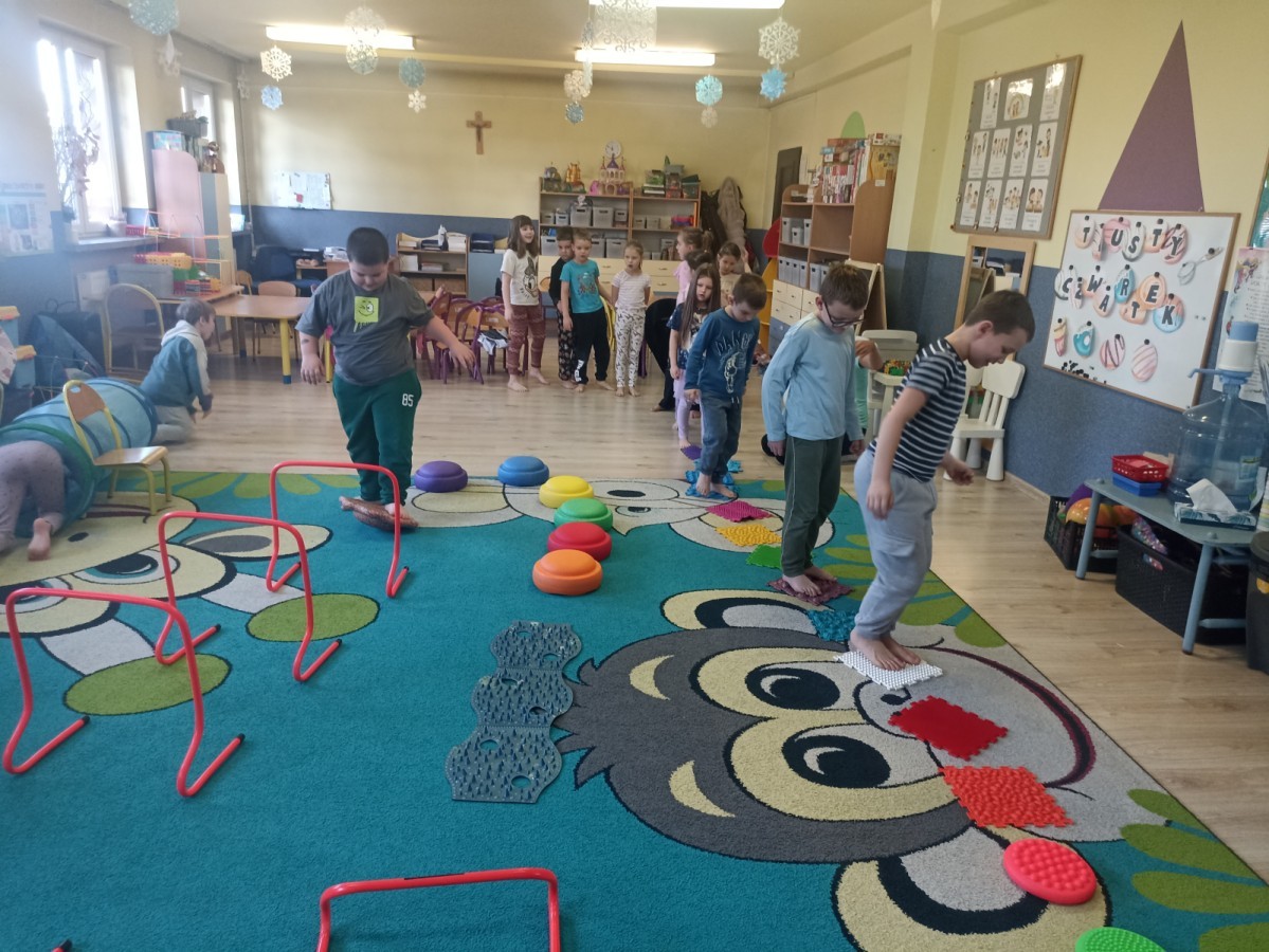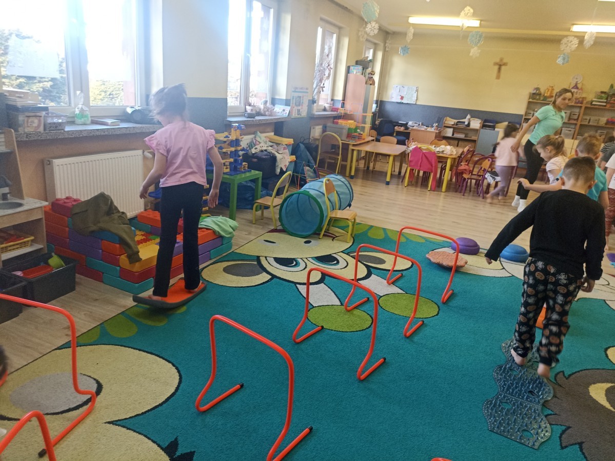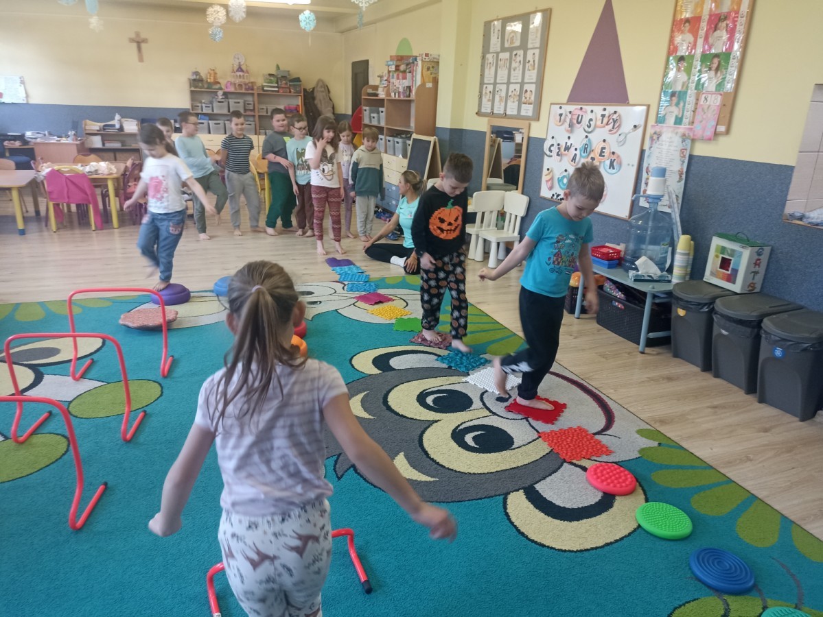 Kolejne zajęcia sportowe Supersmyki za nami. Zorganizowanie toru przeszkód połączonego z elementami sensorycznymi to strzał w dziesiątkę dla 6-latków. W tym wieku dzieci mają już świetną koordynację, ale wciąż potrzebują wyzwań, które angażują nie tylko mięśnie, ale i zmysły dotyku, równowagi, propriocepcji.