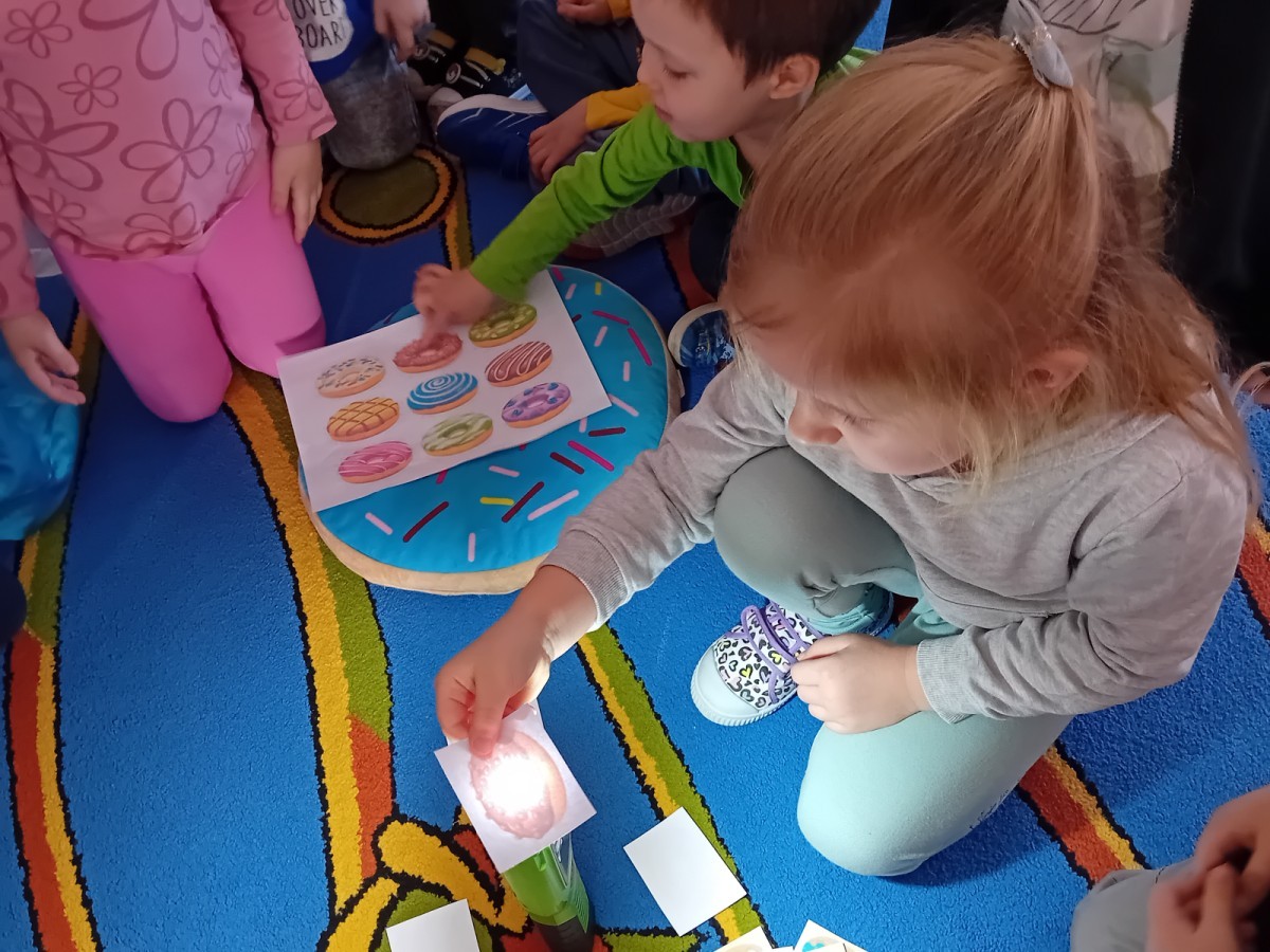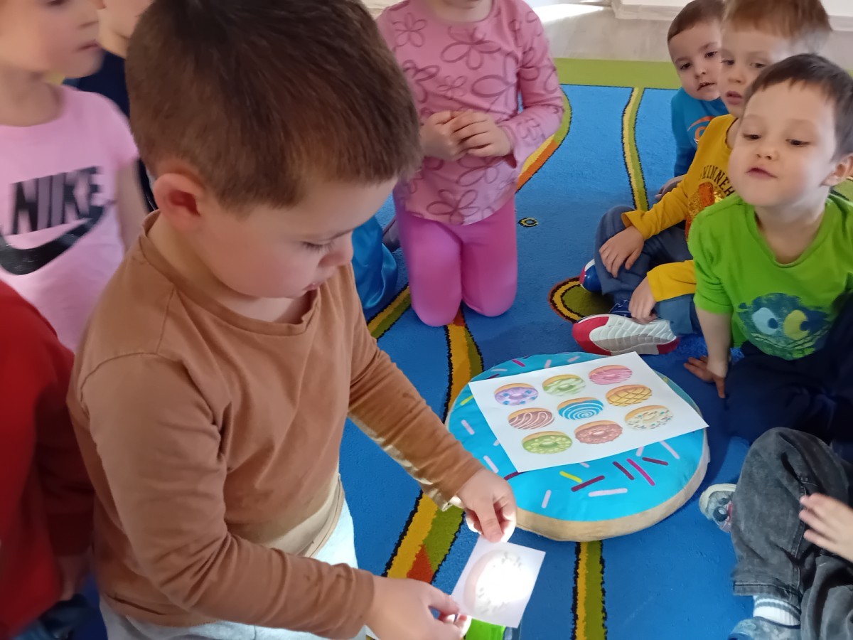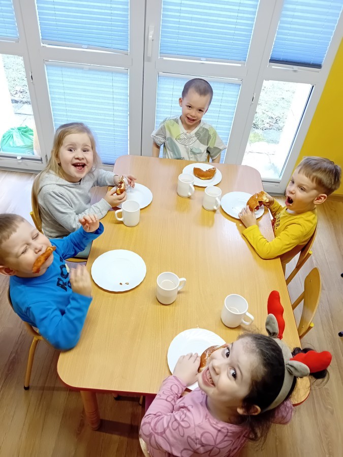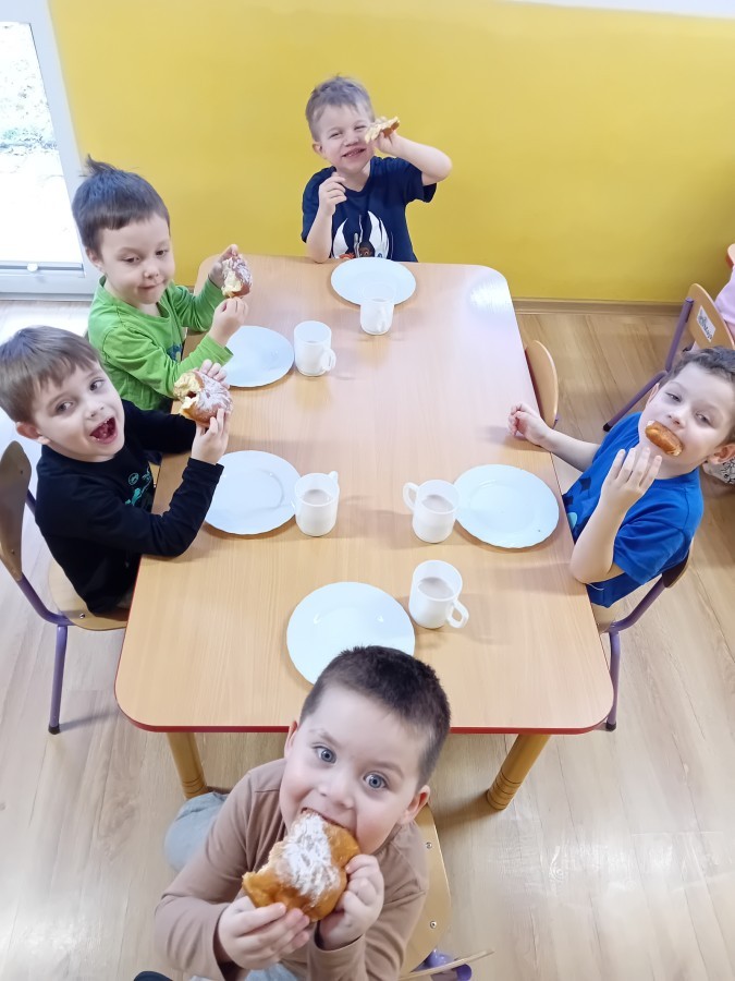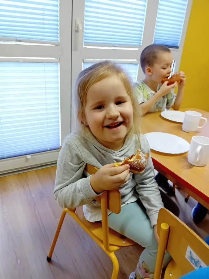 Dzisiaj w grupie Średniaków było nie tylko słodko, ale i bardzo pracowicie! Choć Tłusty Czwartek kojarzy się głównie z jedzeniem pyszności, my wykorzystaliśmy ten dzień do twórczej nauki i odkrywania tajemnic. Nasze przedszkolaki zamieniły się w artystów-cukierników! Wykonaliśmy piękne prace plastyczne przedstawiające pyszne pączki. Największa frajda była podczas zabawy detektywi z latarkami poszukują pączków. Oczywiście nie zabrakło pysznych pączków na podwieczorek.