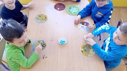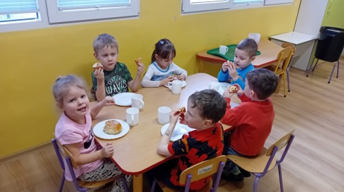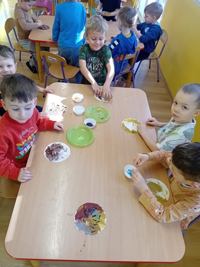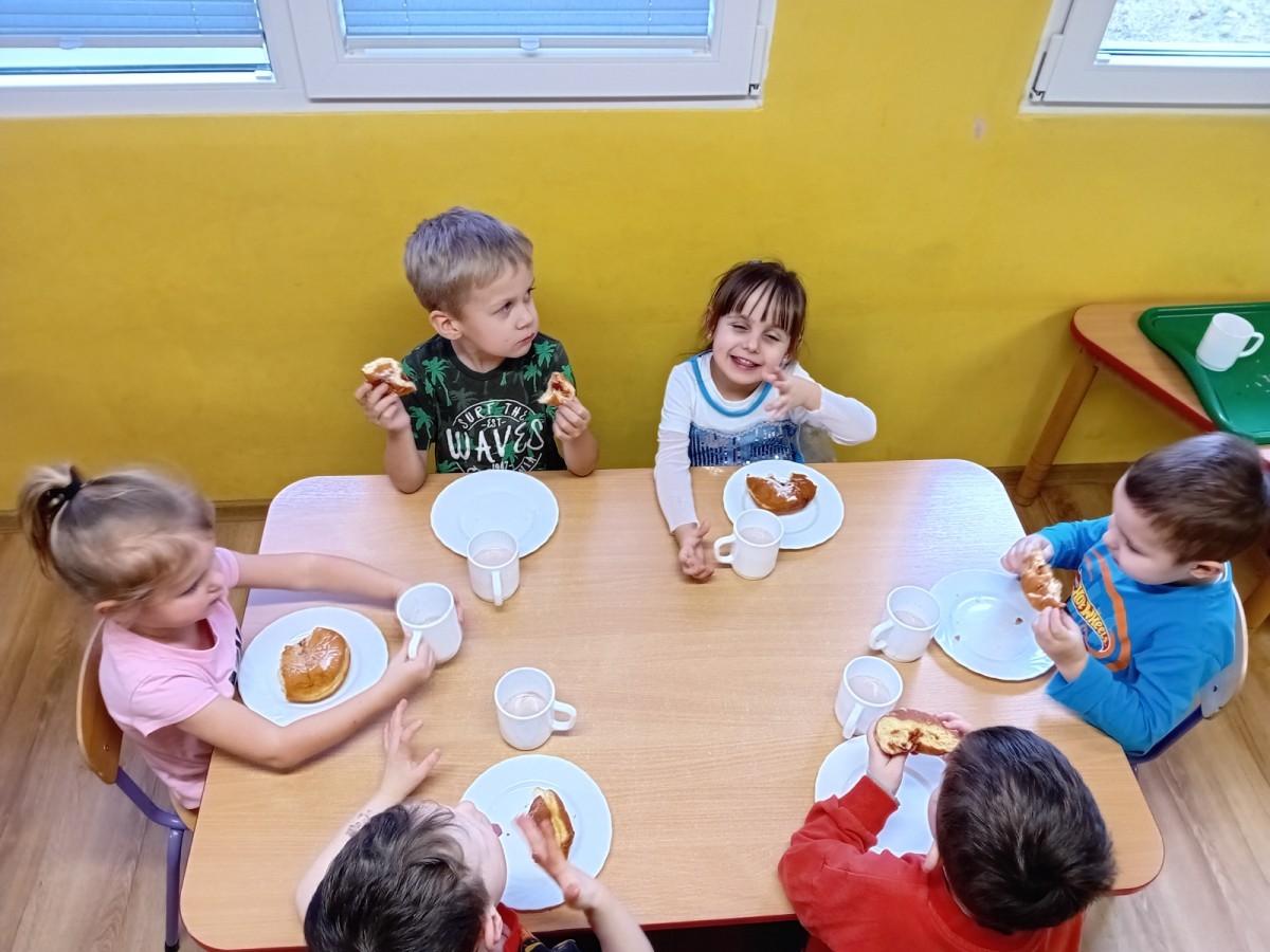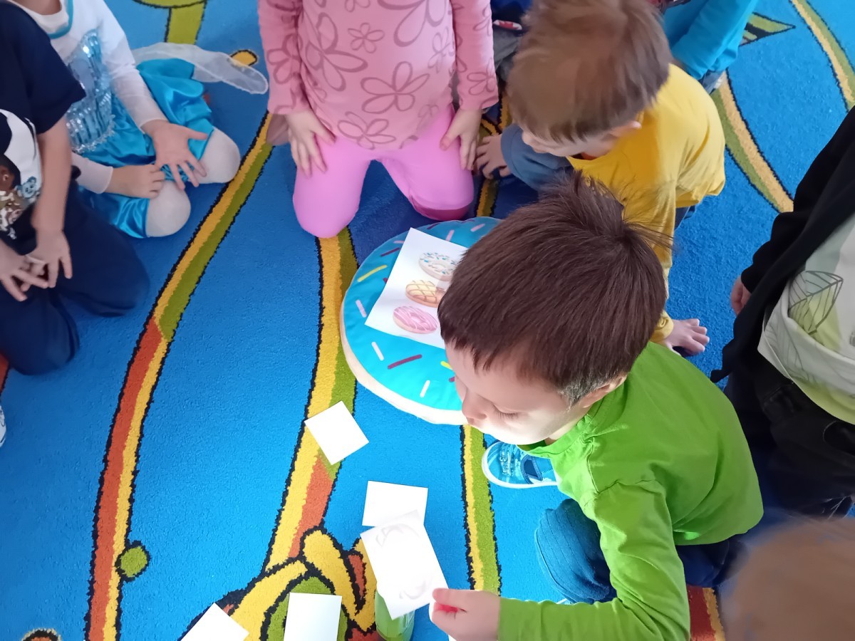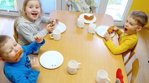 Dzisiaj w grupie Średniaków było nie tylko słodko, ale i bardzo pracowicie! Choć Tłusty Czwartek kojarzy się głównie z jedzeniem pyszności, my wykorzystaliśmy ten dzień do twórczej nauki i odkrywania tajemnic. Nasze przedszkolaki zamieniły się w artystów-cukierników! Wykonaliśmy piękne prace plastyczne przedstawiające pyszne pączki. Największa frajda była podczas zabawy detektywi z latarkami poszukują pączków. Oczywiście nie zabrakło pysznych pączków na podwieczorek.