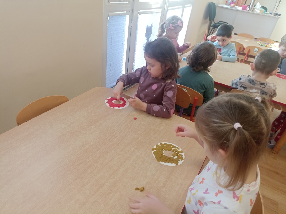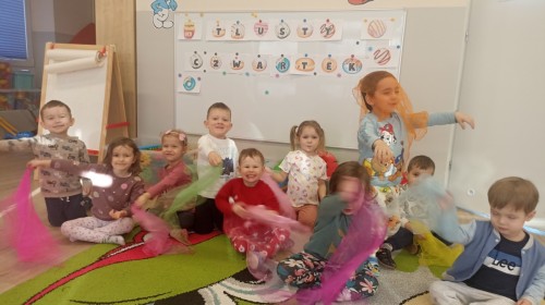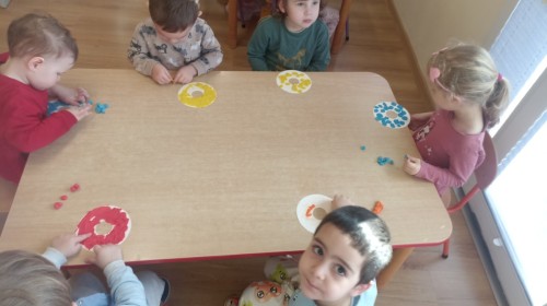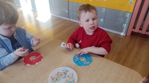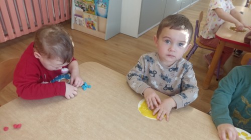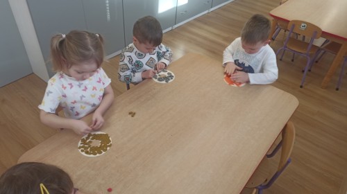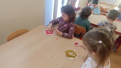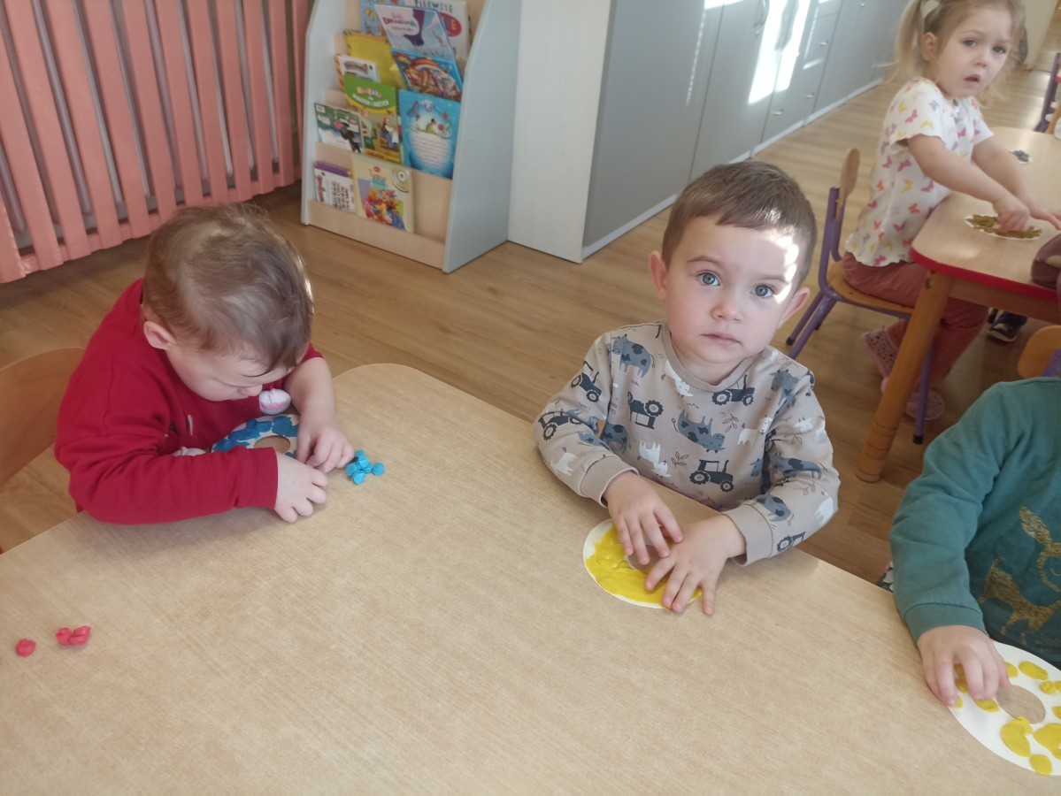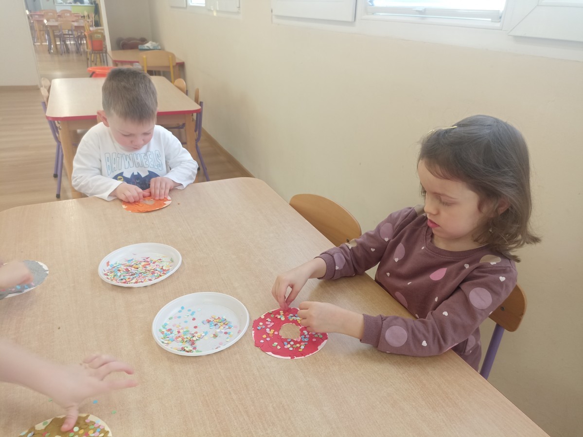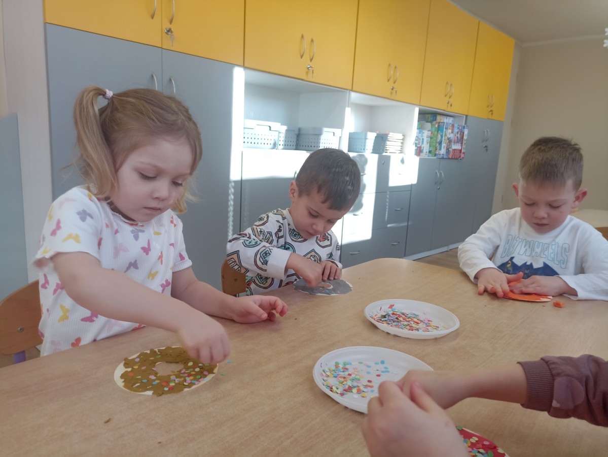 W Tłusty Czwartek w naszych maluszkach królem był oczywiście pączek. Poznaliśmy rodzaje pączków oraz składniki potrzebne do ich przygotowania. Wykonaliśmy również pracę plastyczno - techniczną, a na podwieczorek zjedliśmy pyszne pączki !