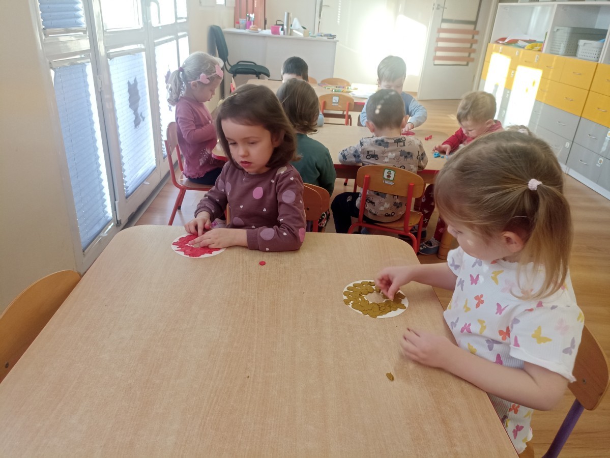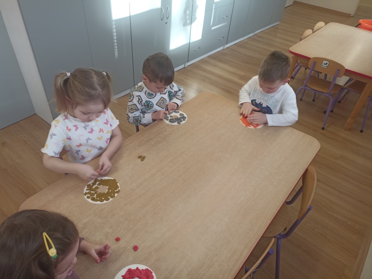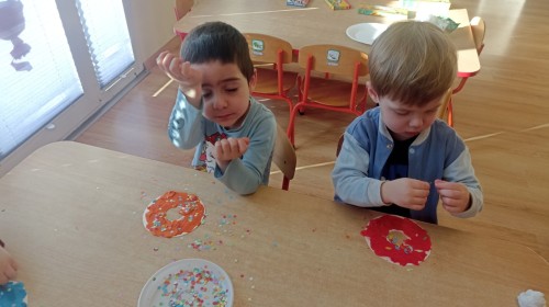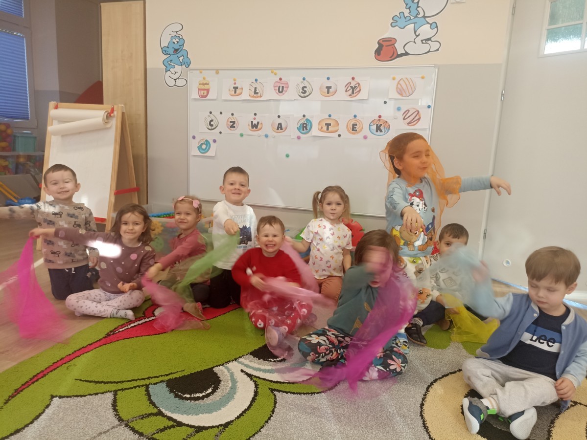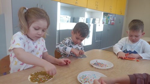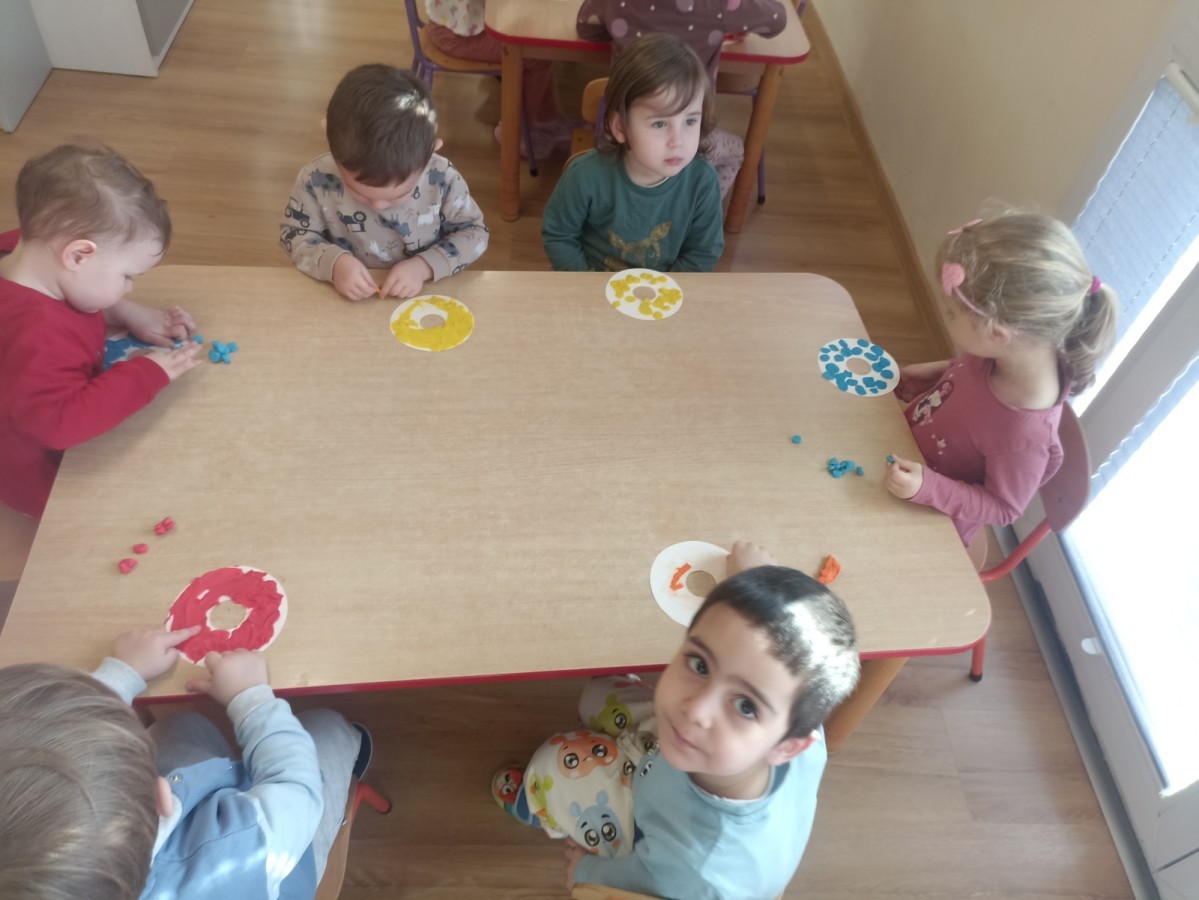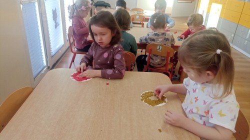 W Tłusty Czwartek w naszych maluszkach królem był oczywiście pączek. Poznaliśmy rodzaje pączków oraz składniki potrzebne do ich przygotowania. Wykonaliśmy również pracę plastyczno - techniczną, a na podwieczorek zjedliśmy pyszne pączki !