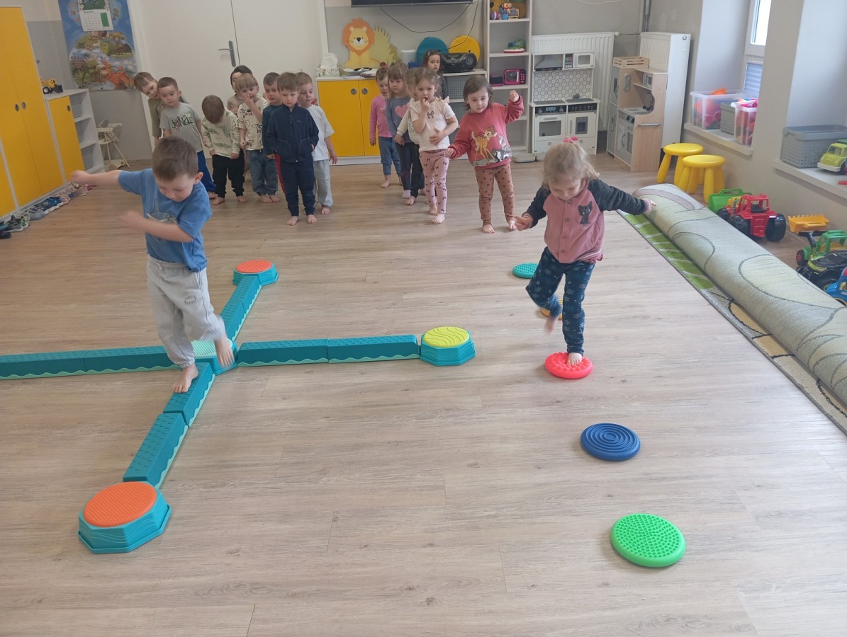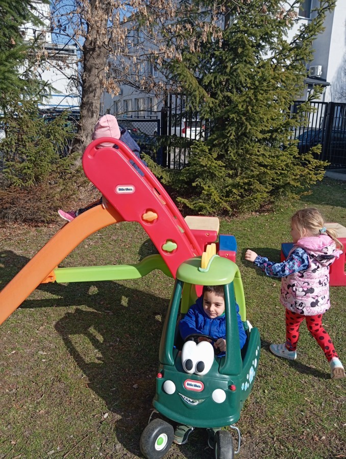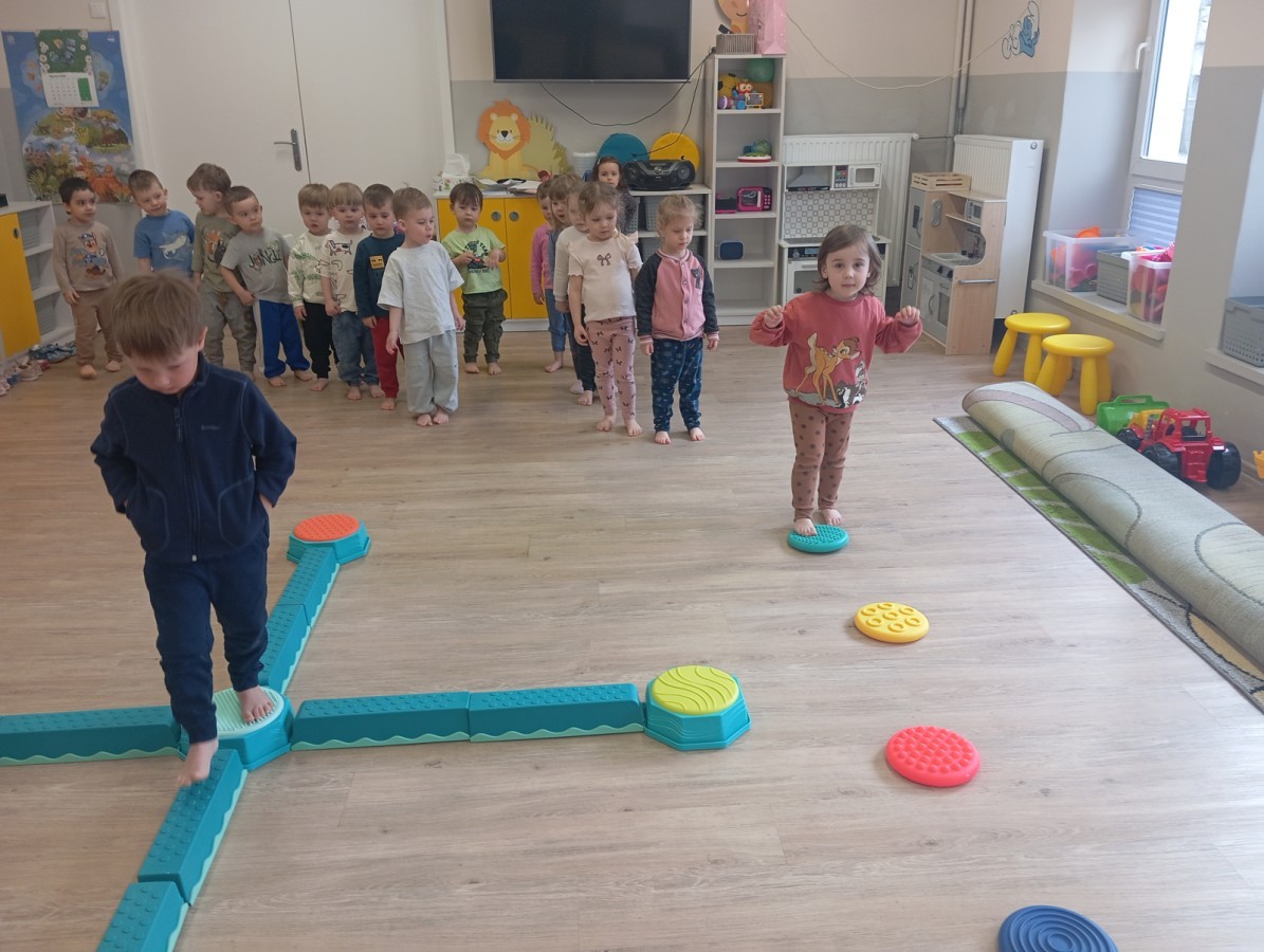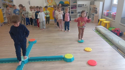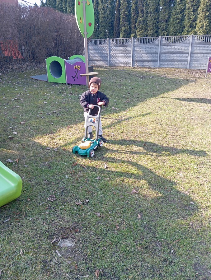 Pani zorganizowała nam tor przeszkód w sali i w ogrodzie.